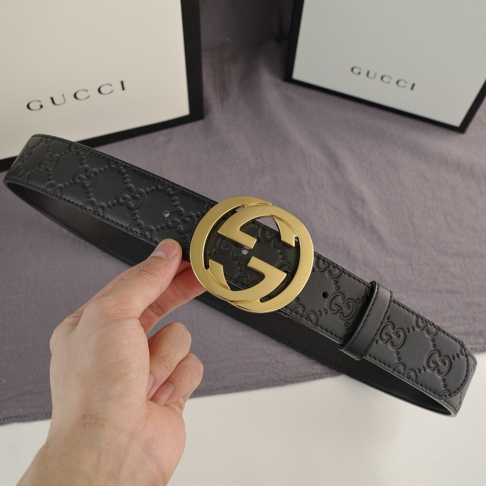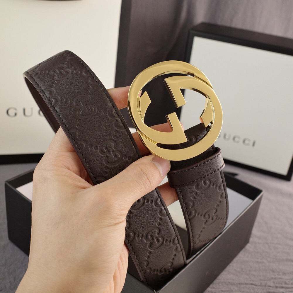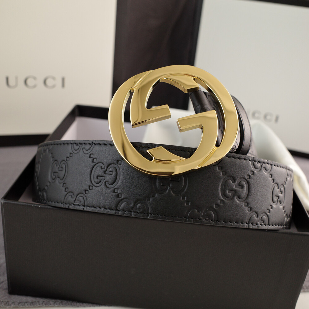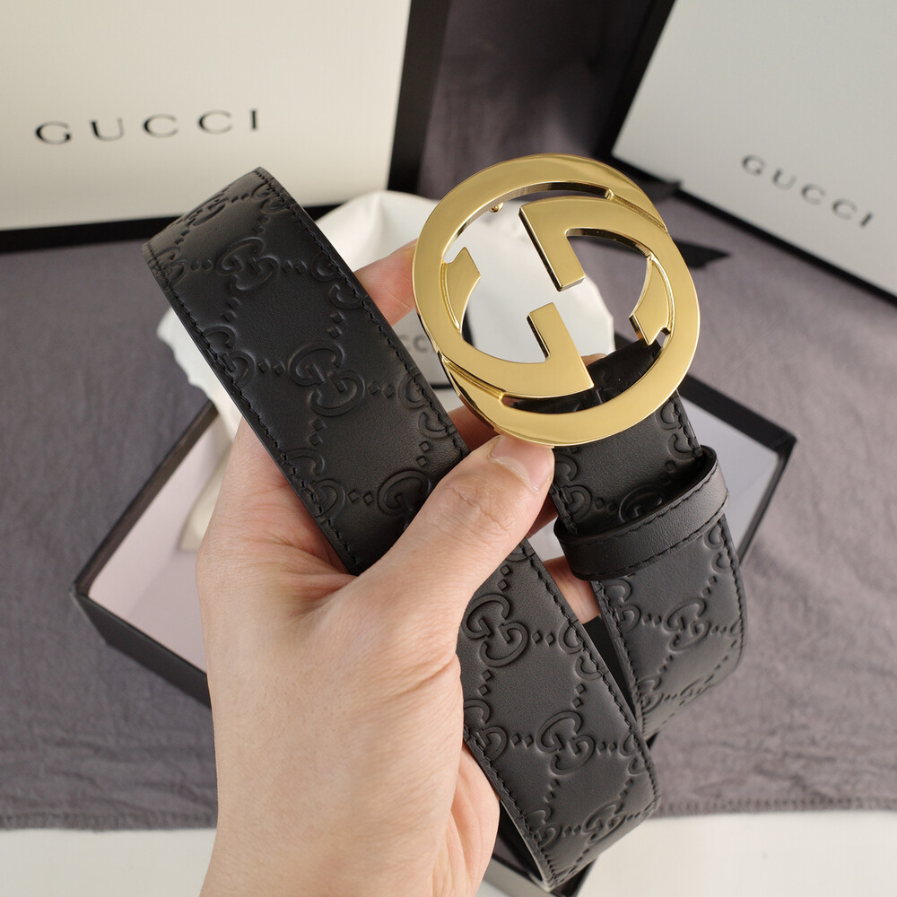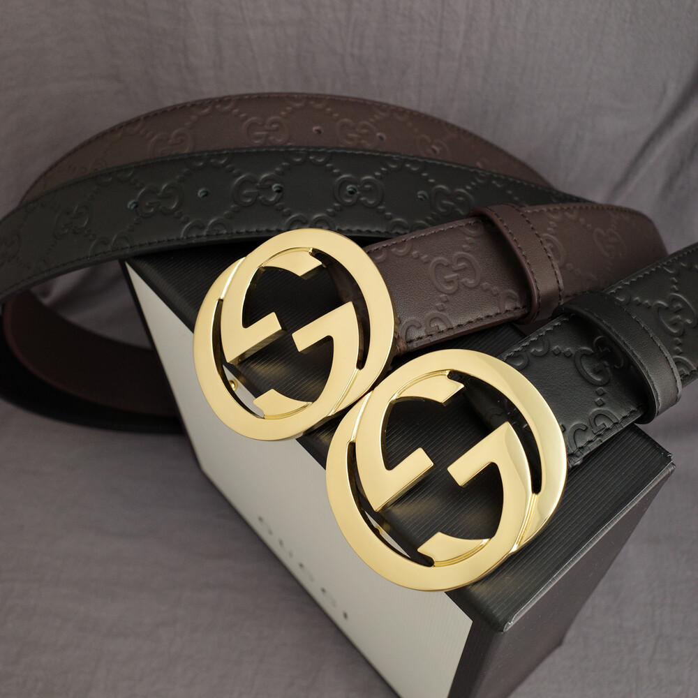 □G.UCCI 인터로킹 G버클 시그니처 가죽 벨트□
