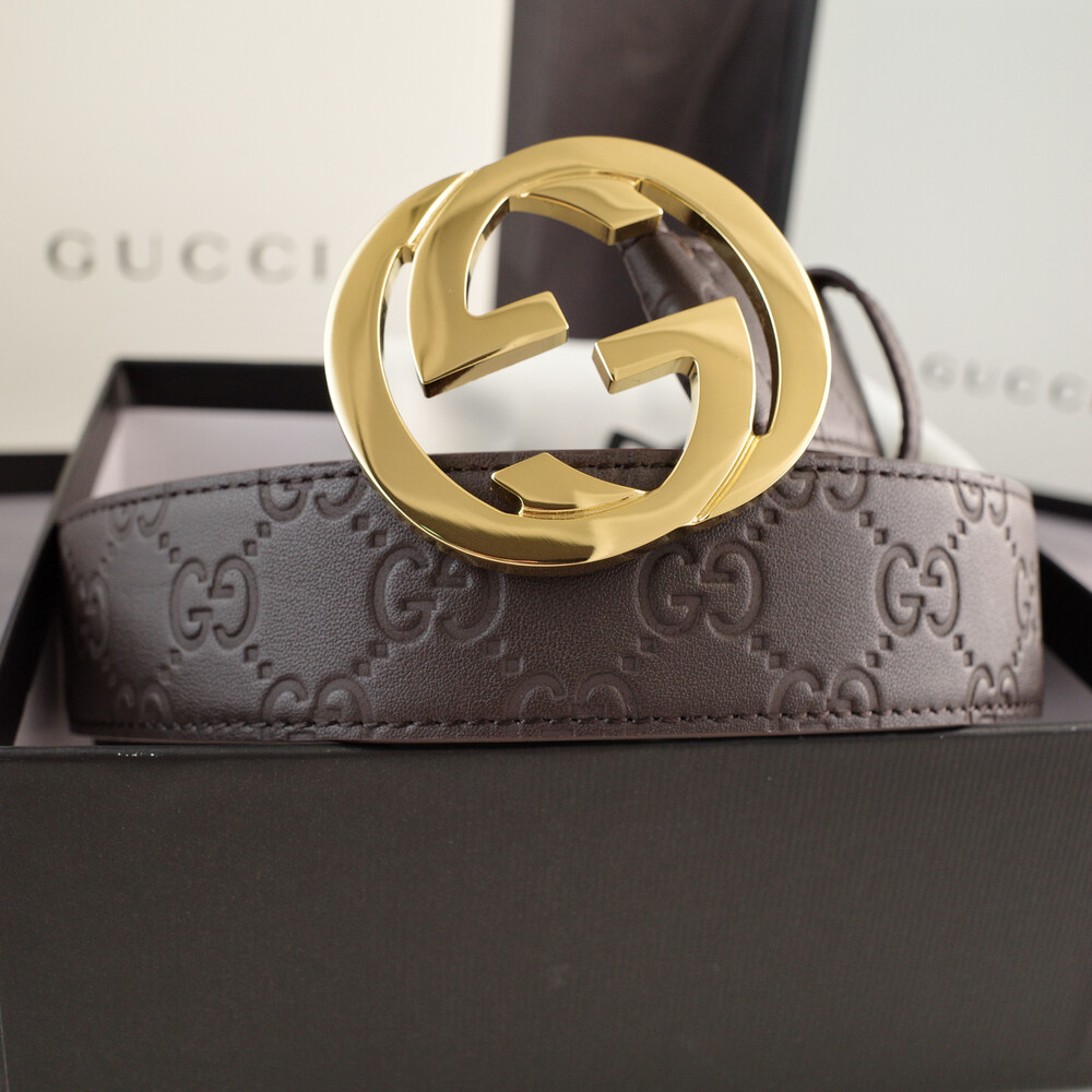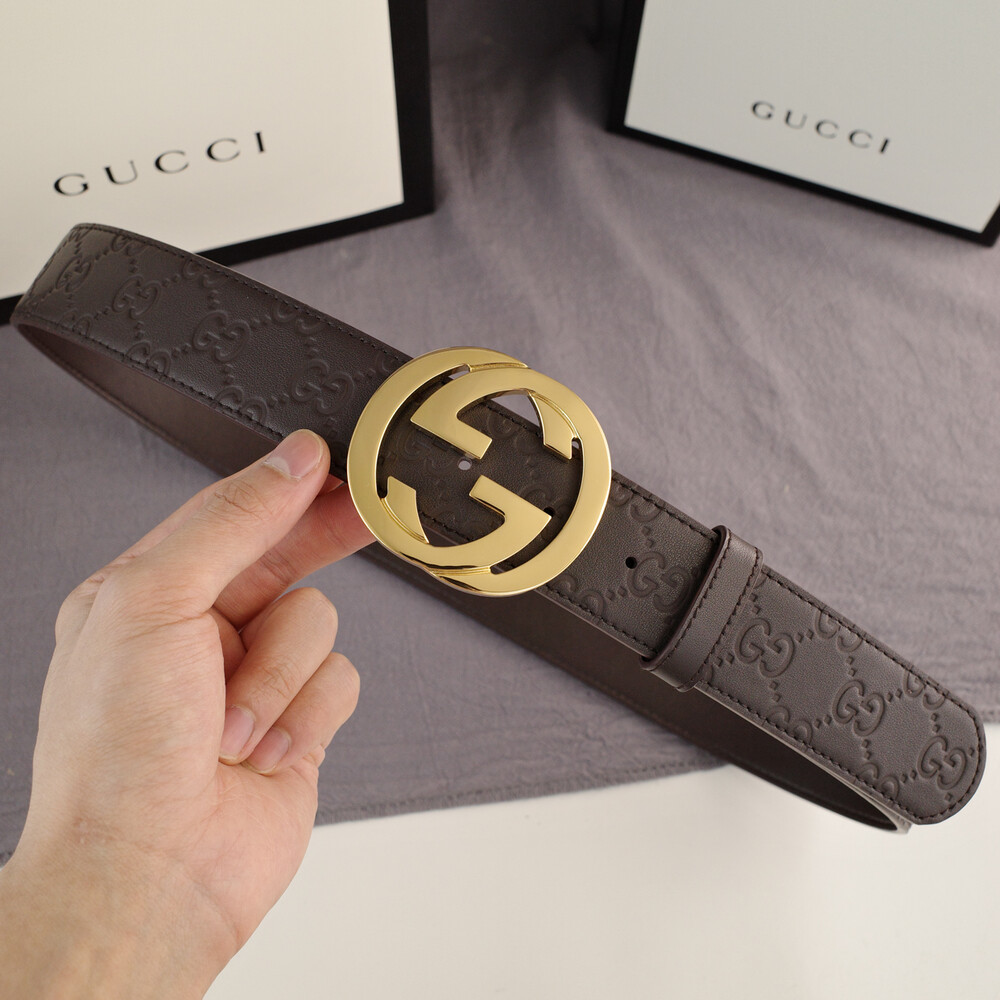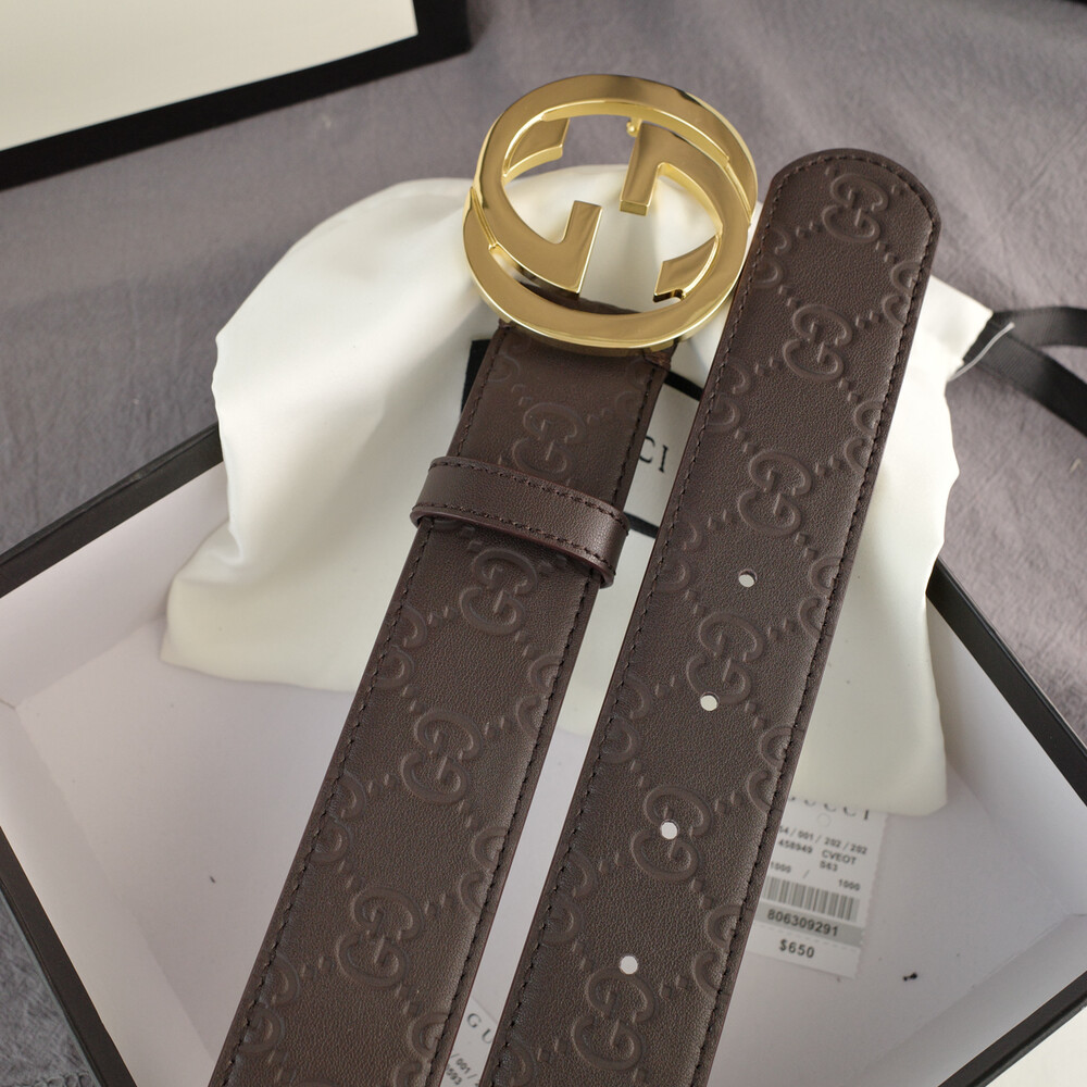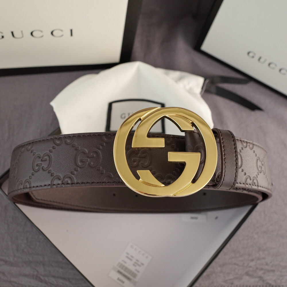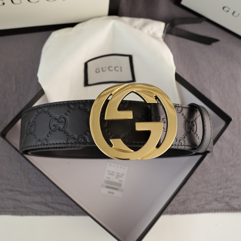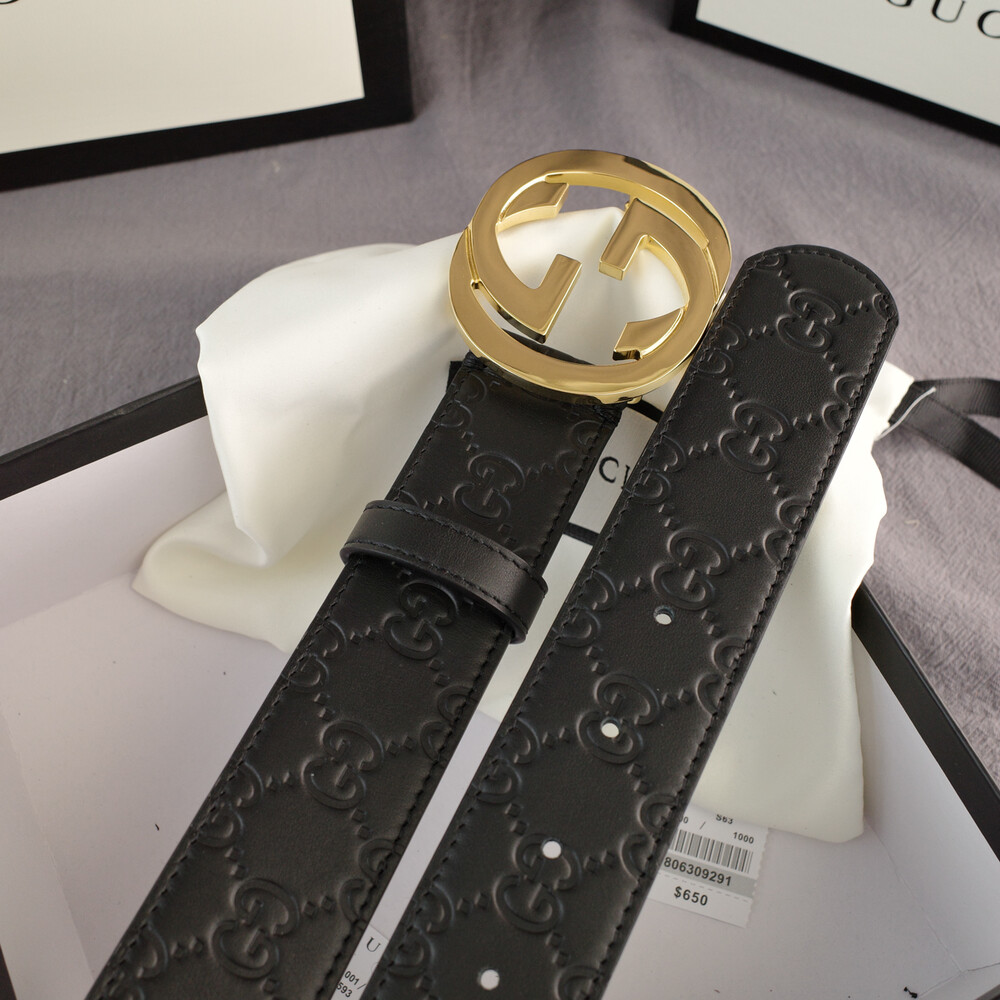 □G.UCCI 인터로킹 G버클 시그니처 가죽 벨트□