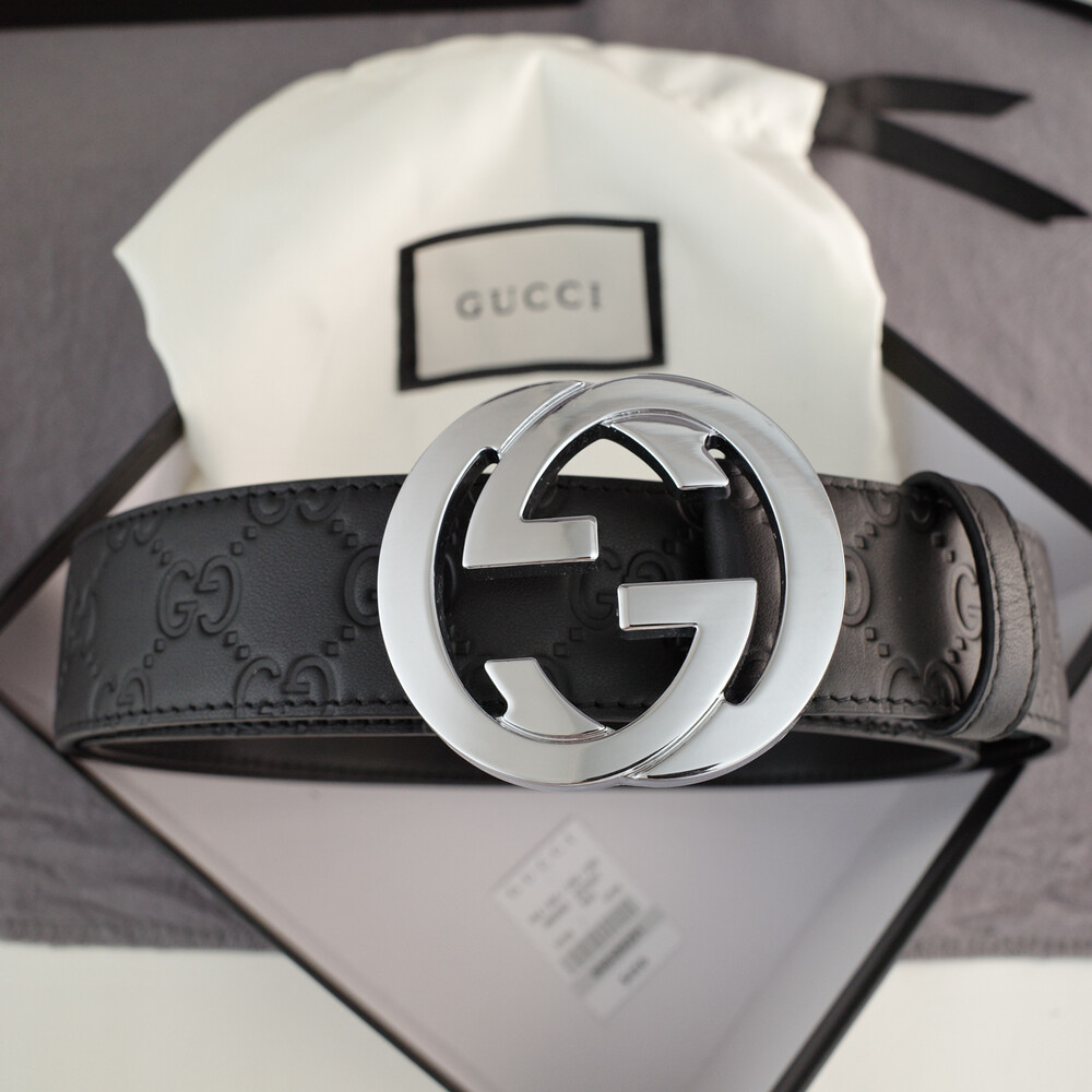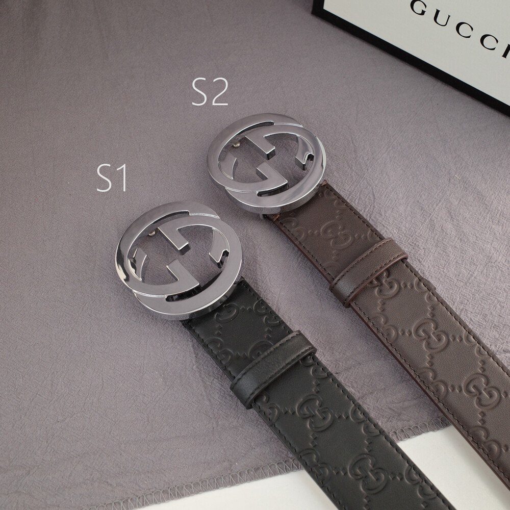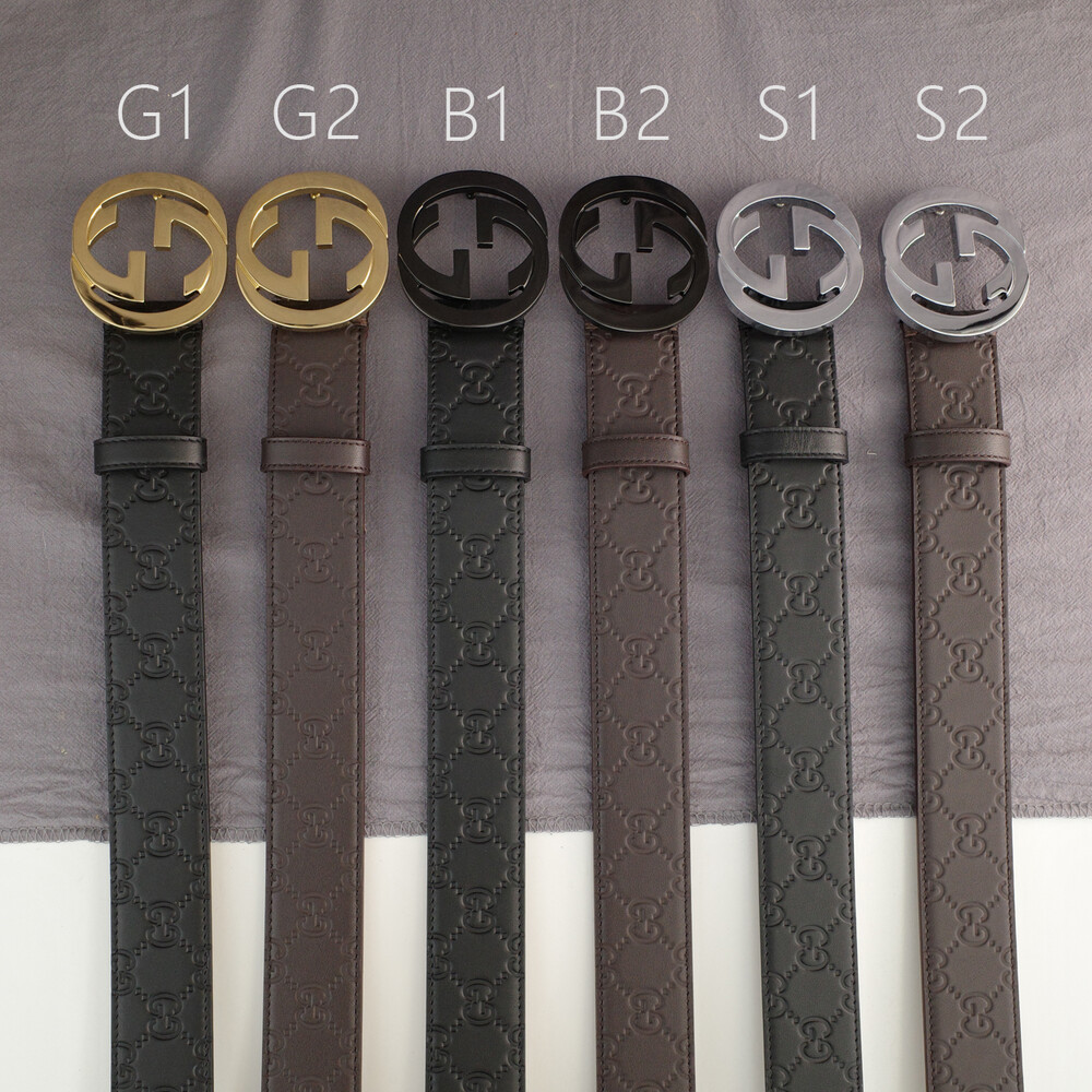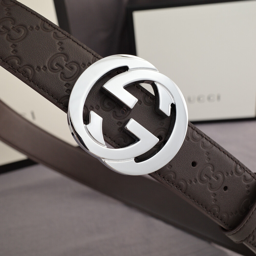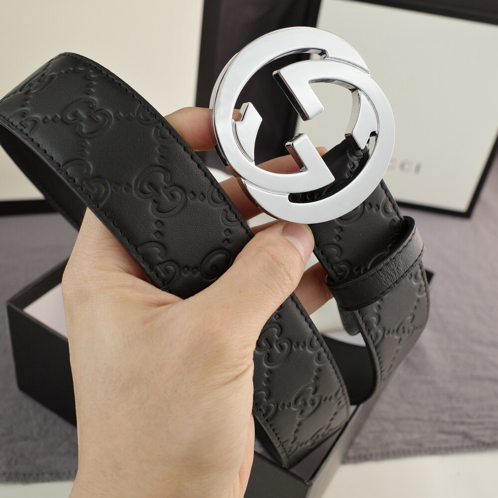 □G.UCCI 인터로킹 G버클 시그니처 가죽 벨트□