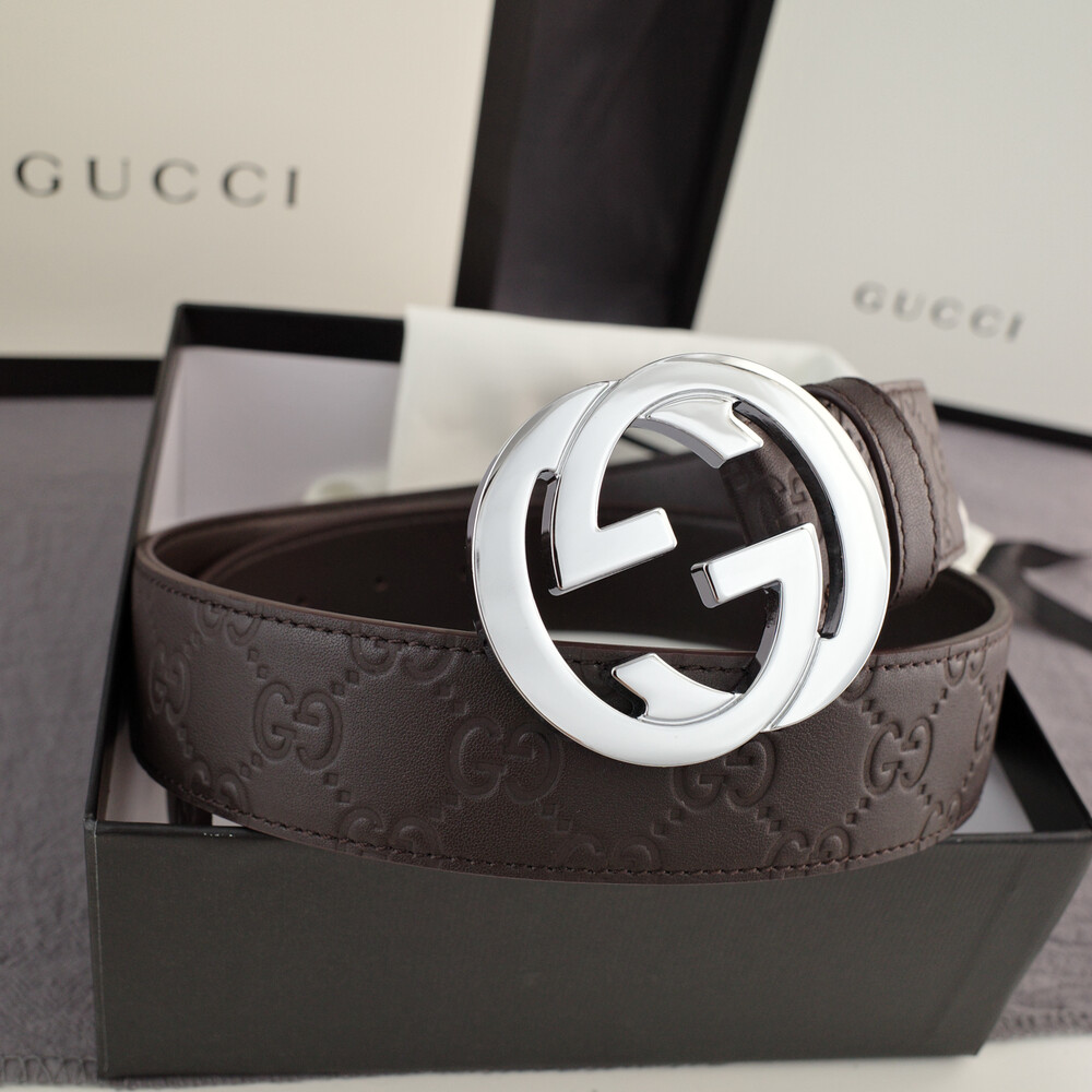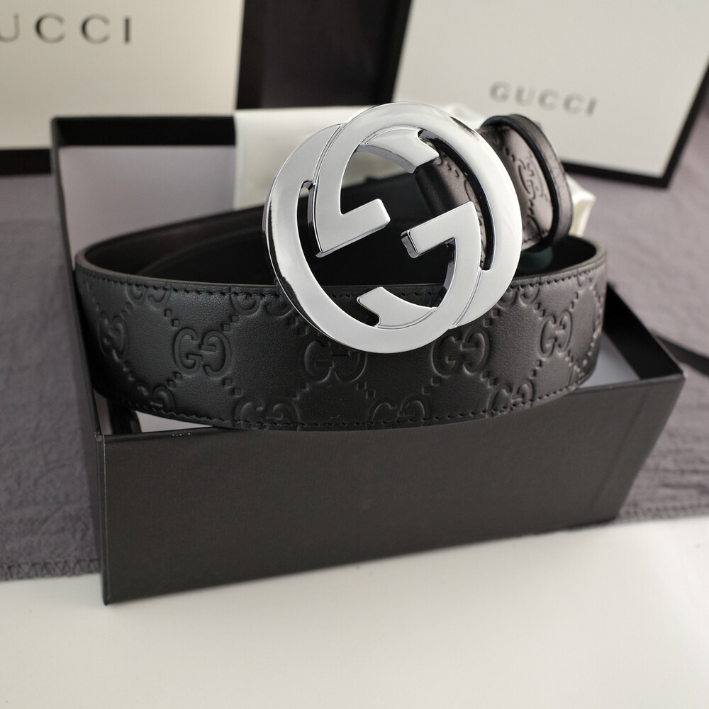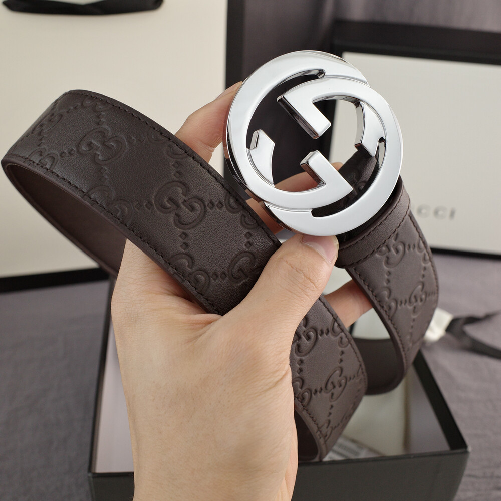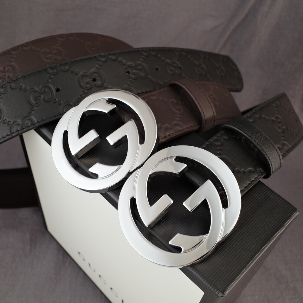 □G.UCCI 인터로킹 G버클 시그니처 가죽 벨트□