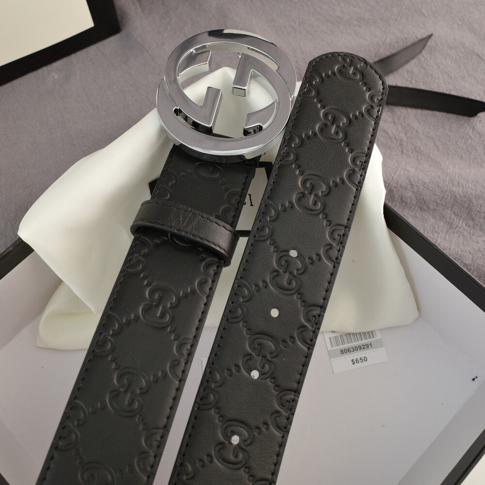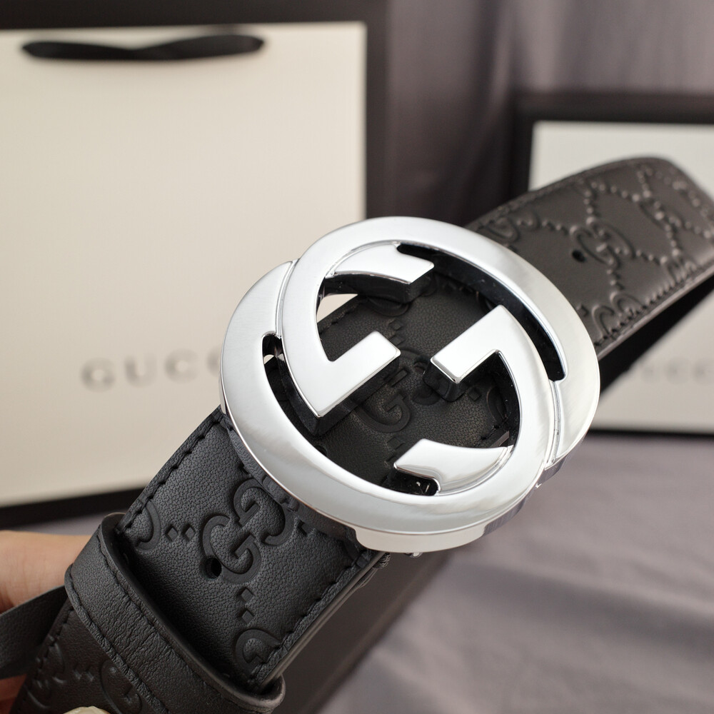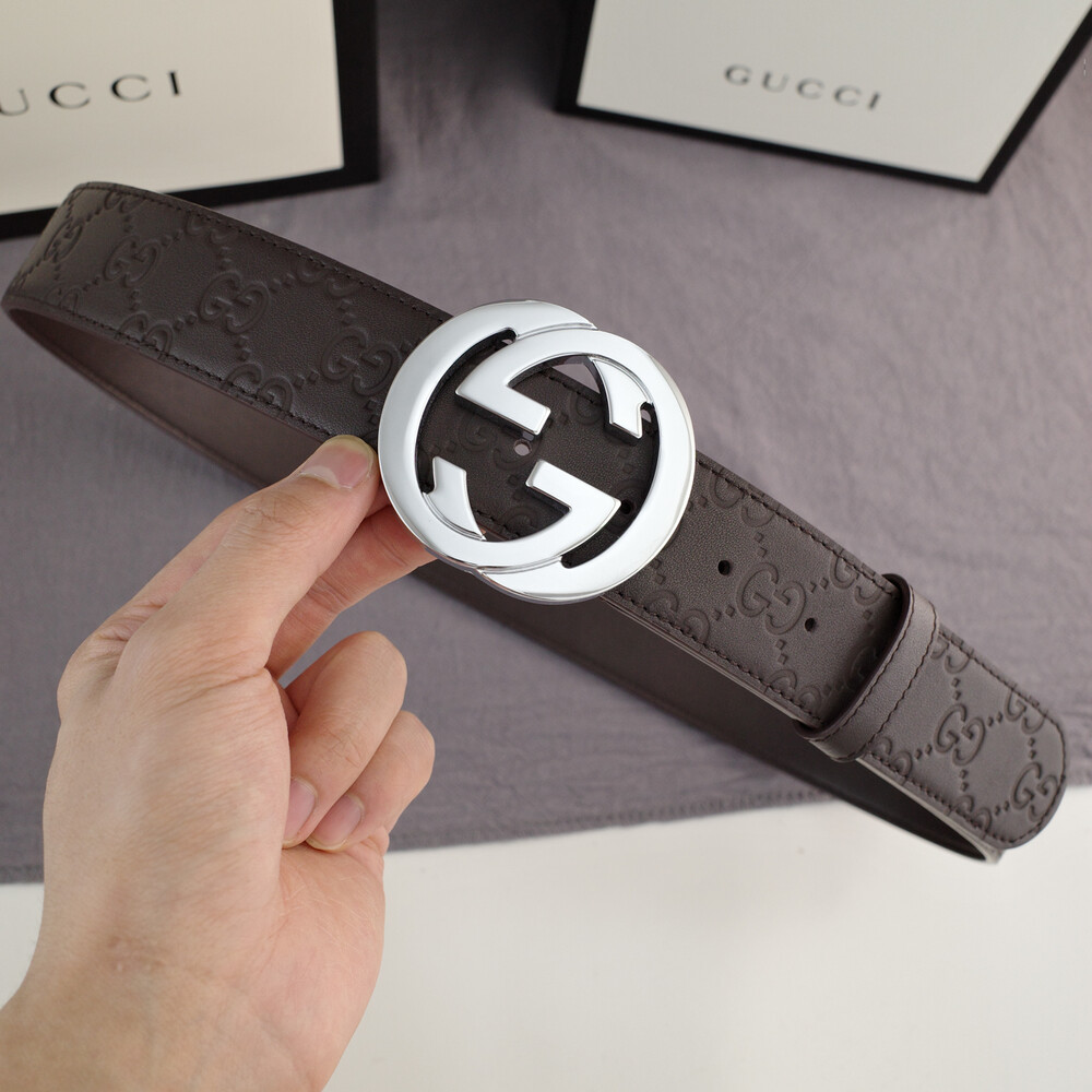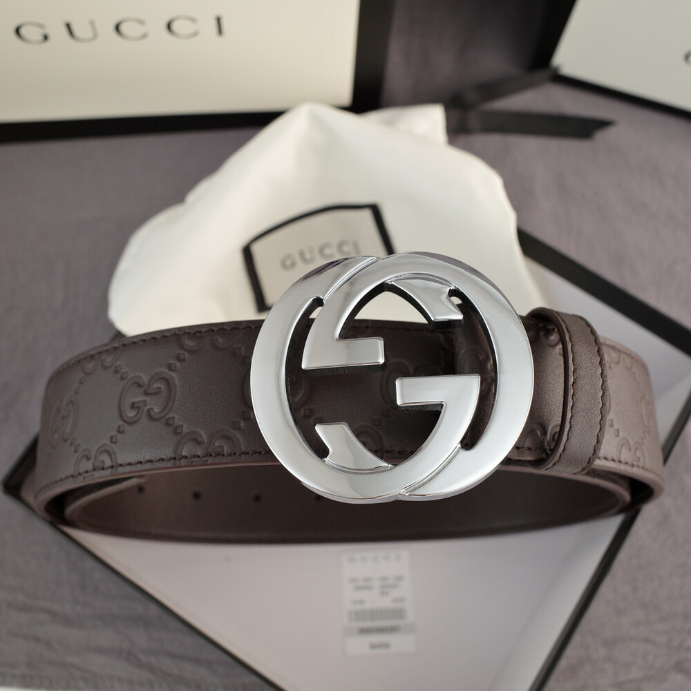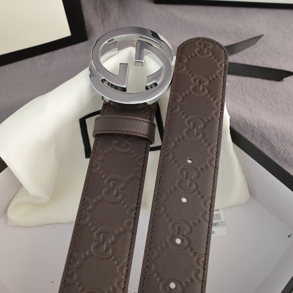 □G.UCCI 인터로킹 G버클 시그니처 가죽 벨트□