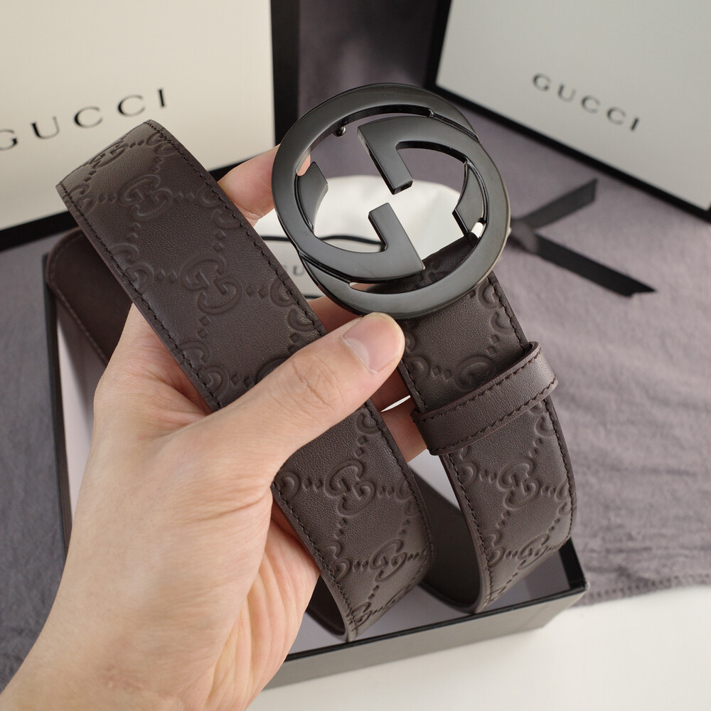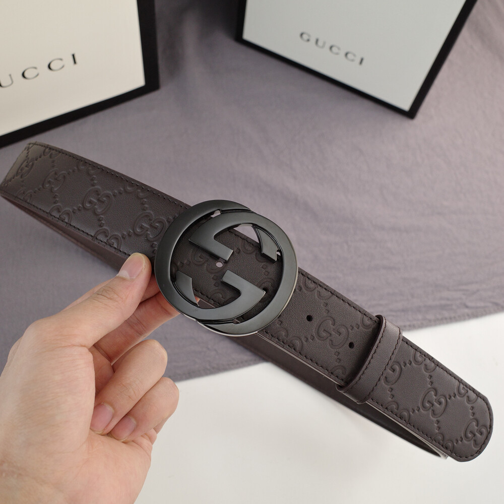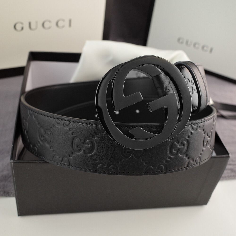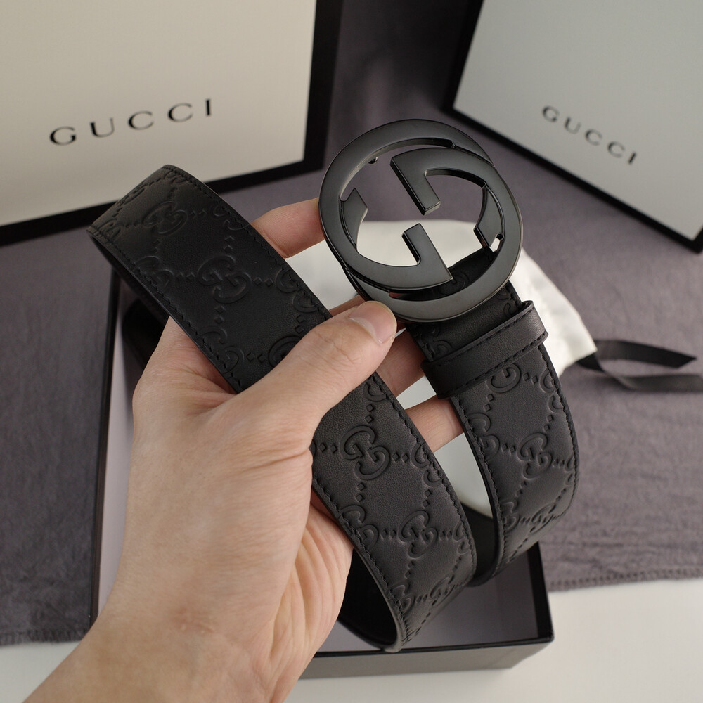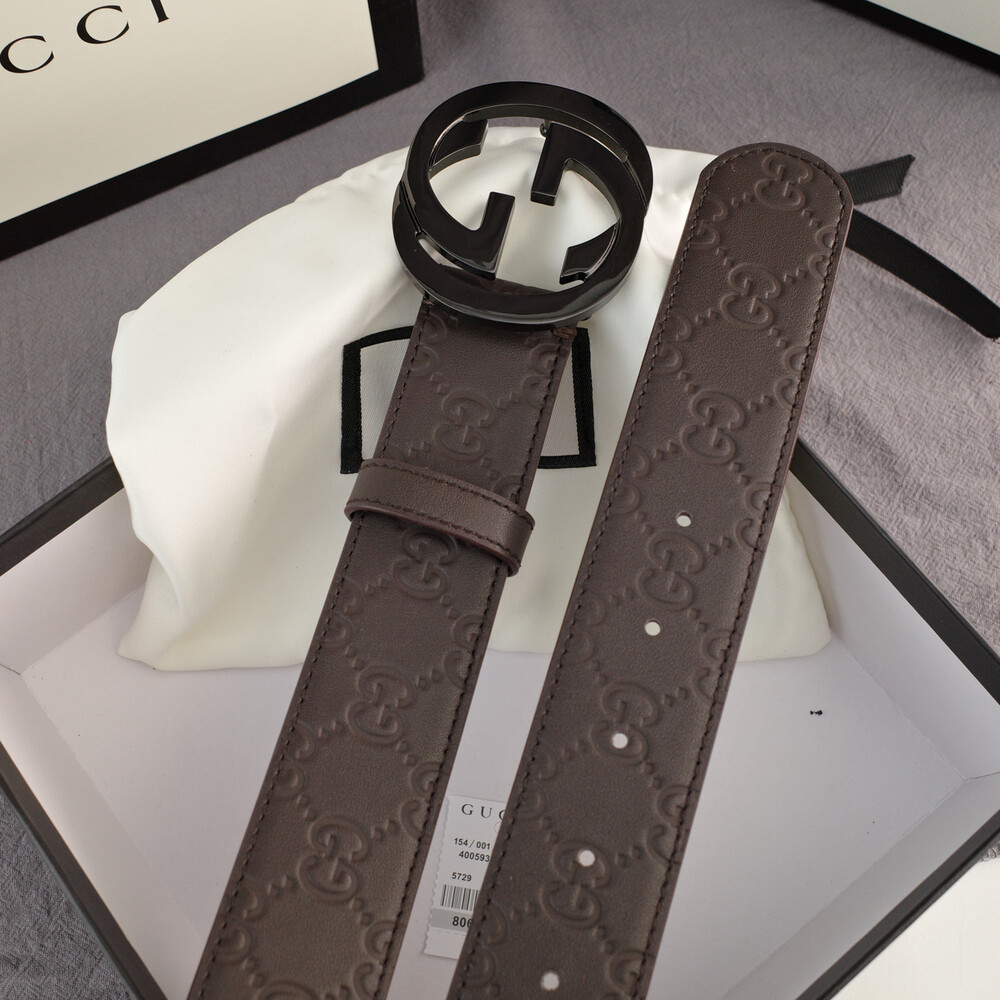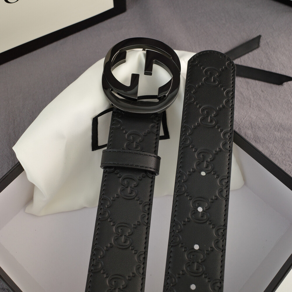 □G.UCCI 인터로킹 G버클 시그니처 가죽 벨트□