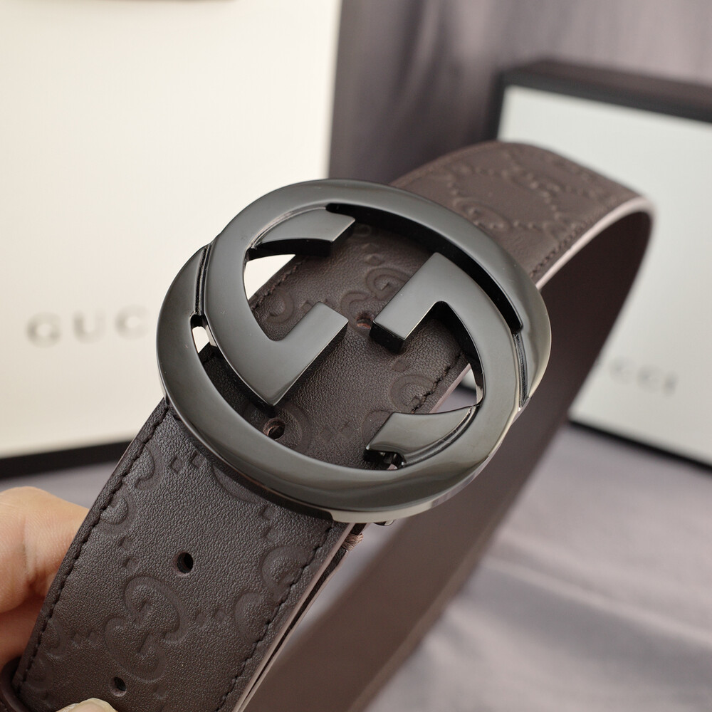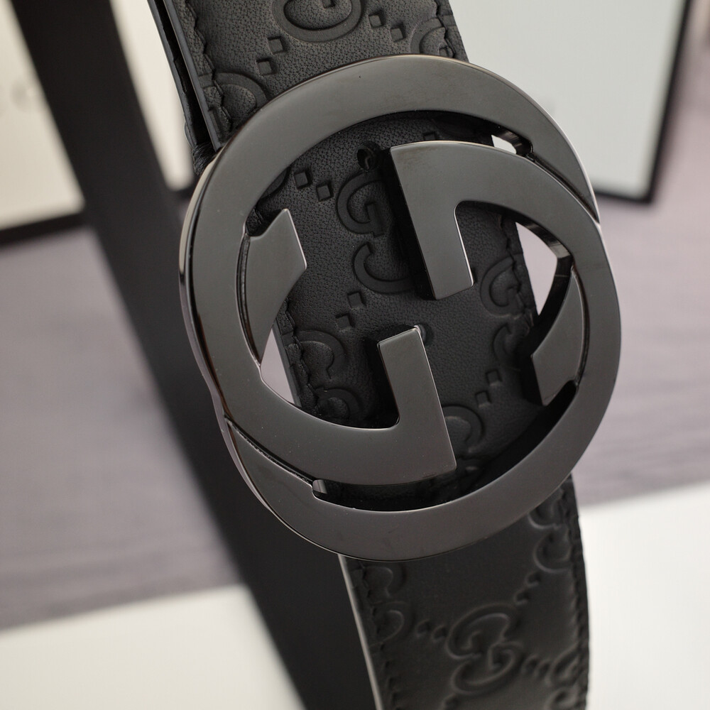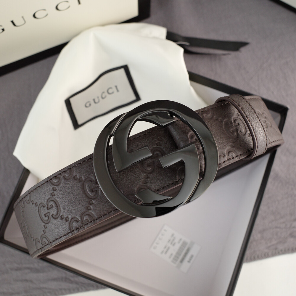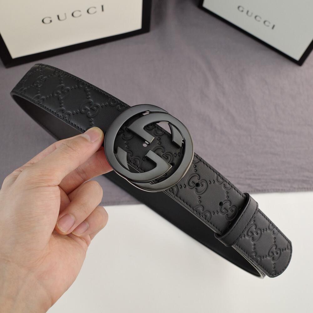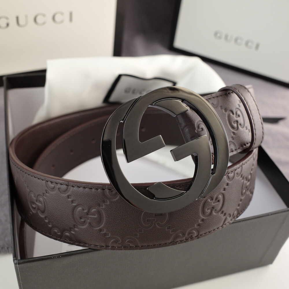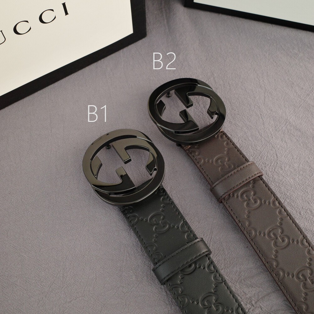 □G.UCCI 인터로킹 G버클 시그니처 가죽 벨트□