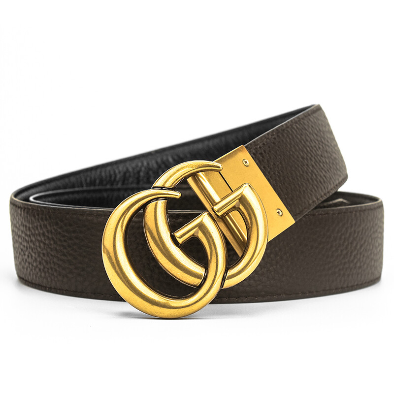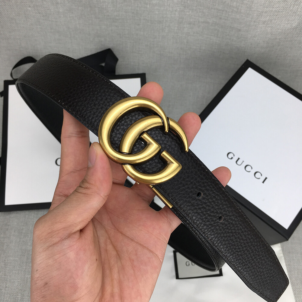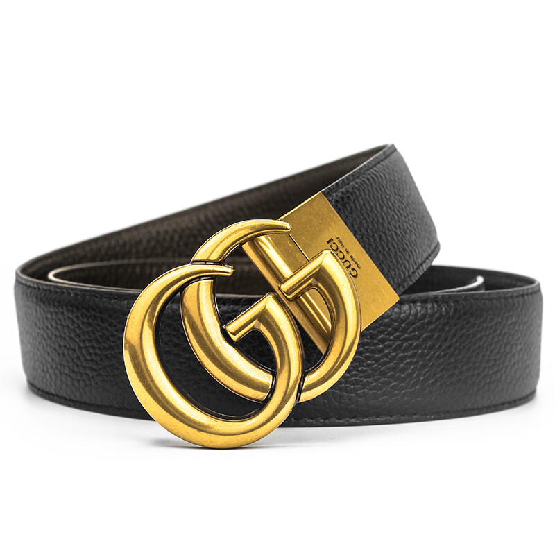 □G.UCCI GG 마몽 더블 G 버클 가죽 벨트□