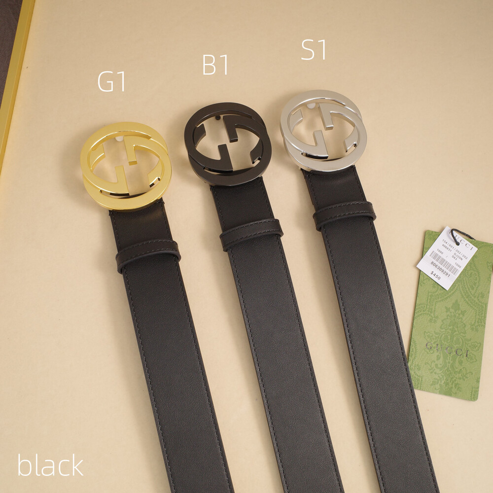 □G.UCCI 인터로킹 G버클 레더 벨트□