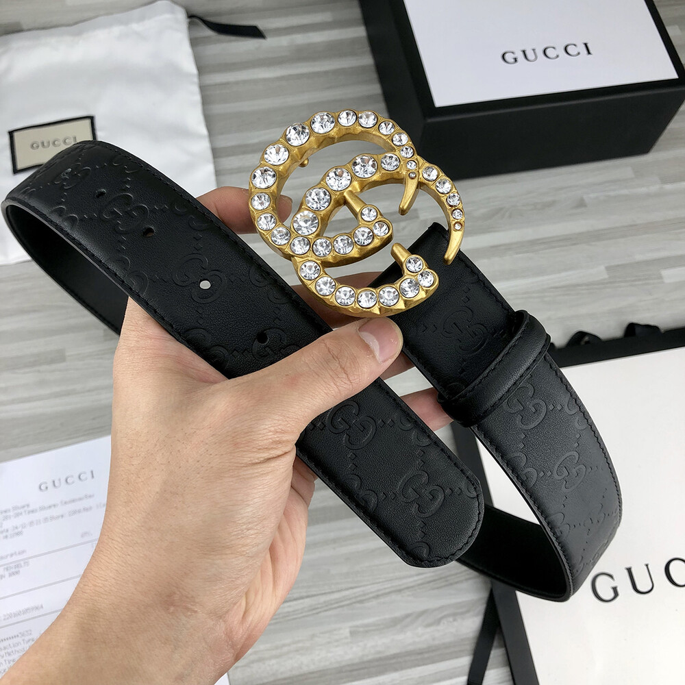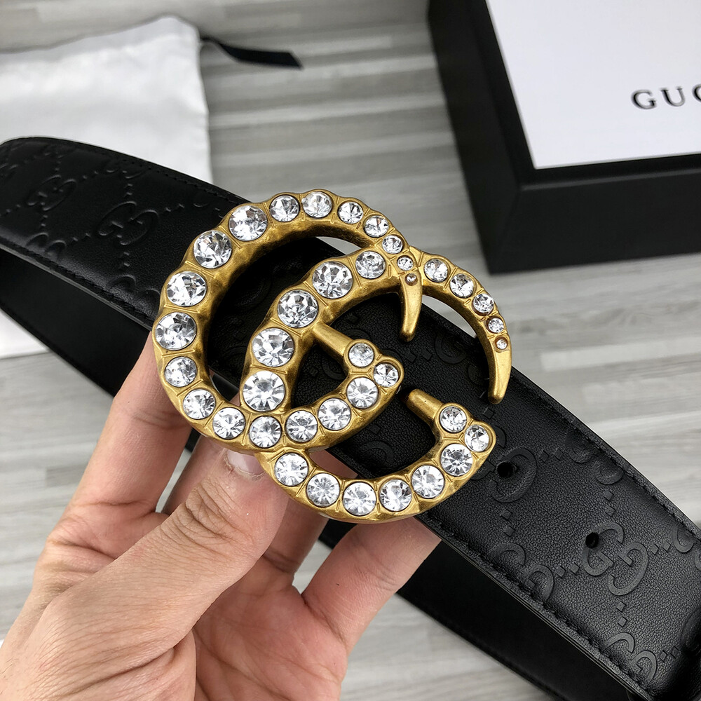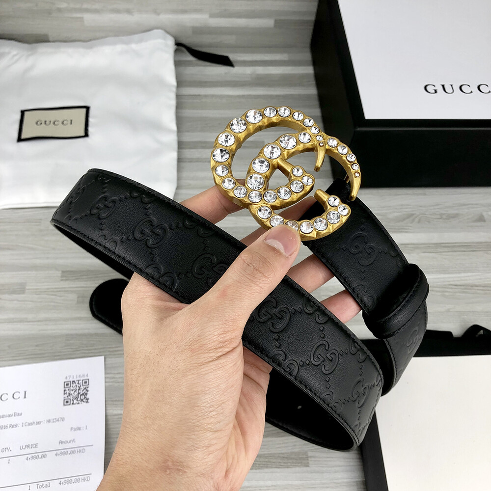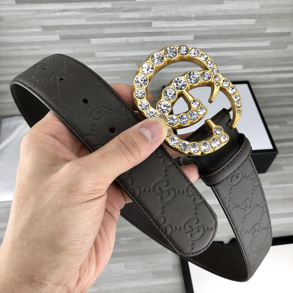 □G.UCCI 크리스탈 더블G 레더 벨트□