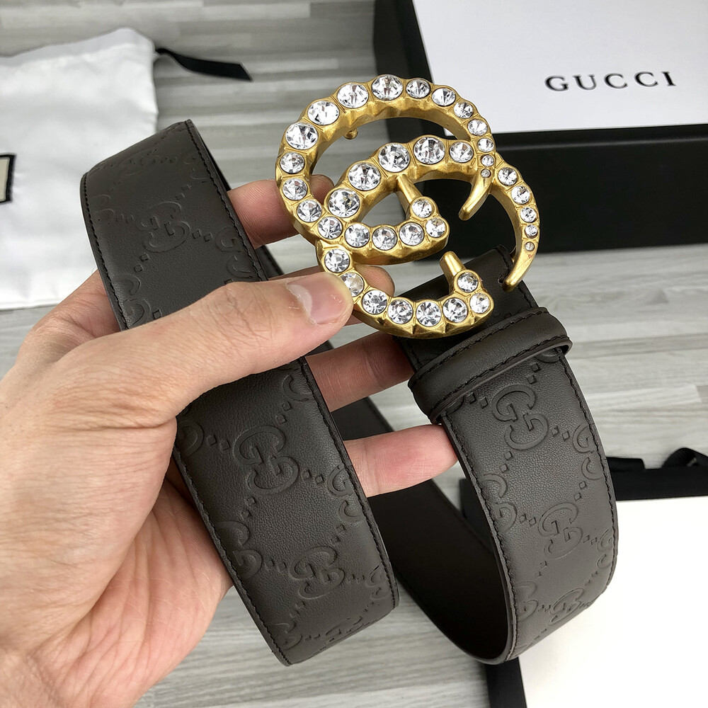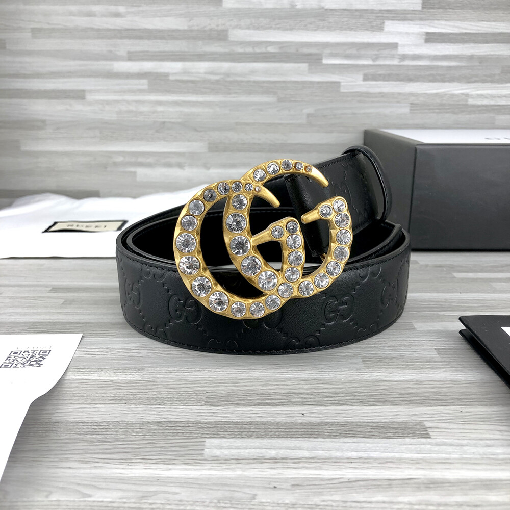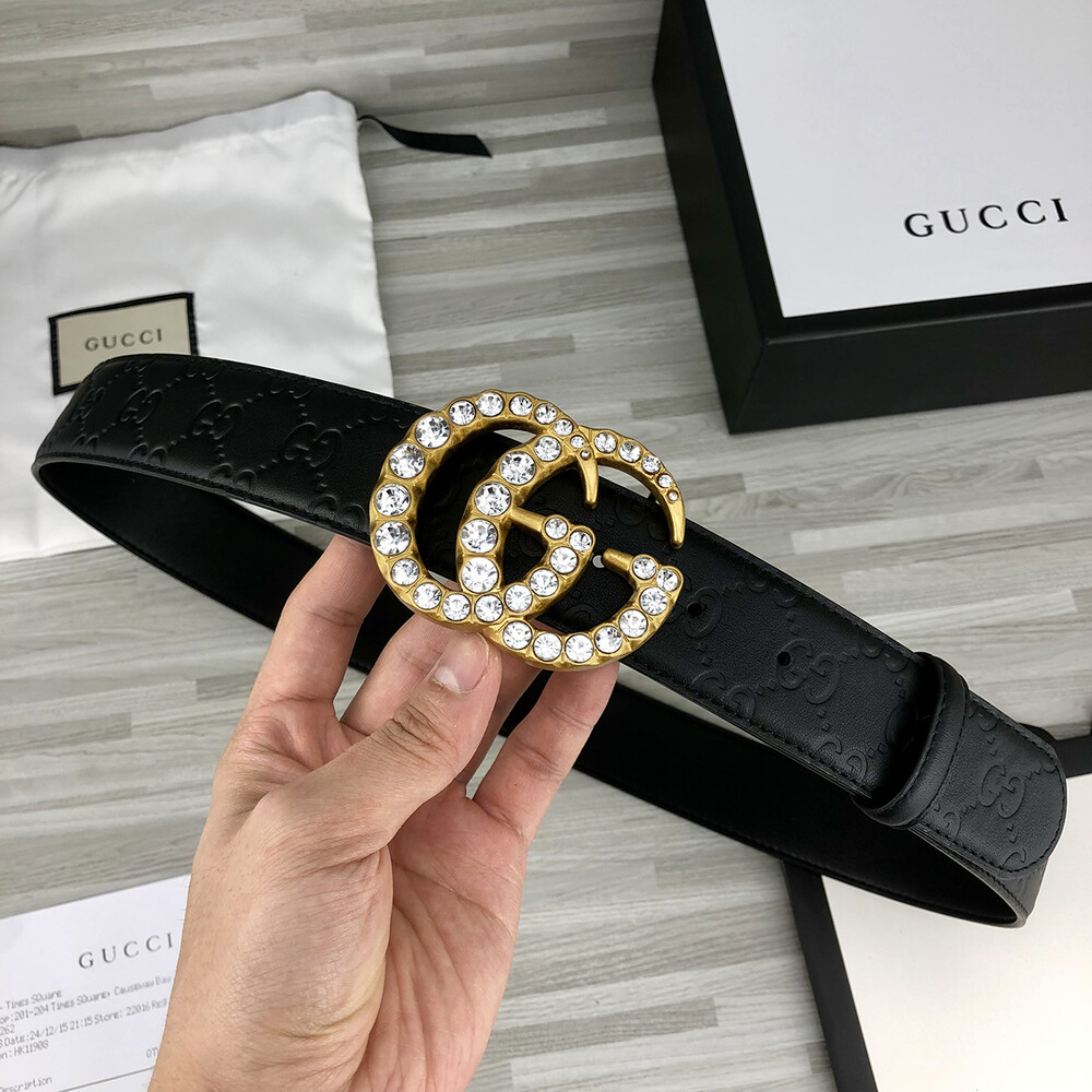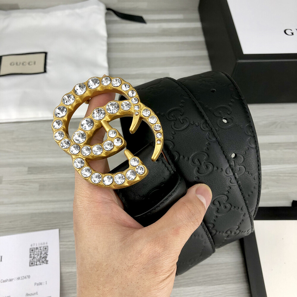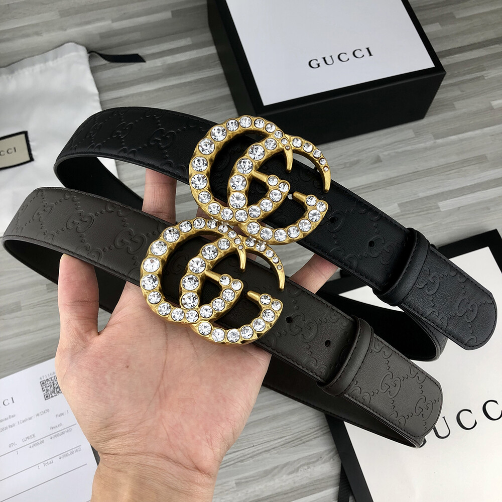 □G.UCCI 크리스탈 더블G 레더 벨트□