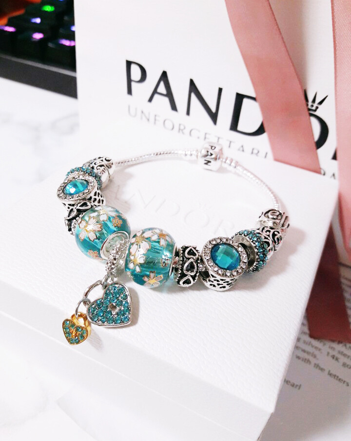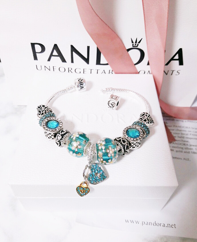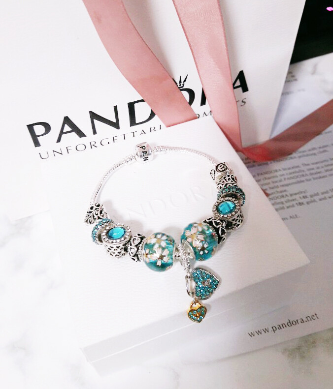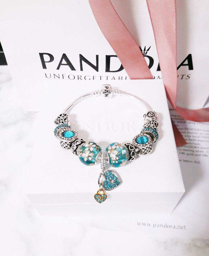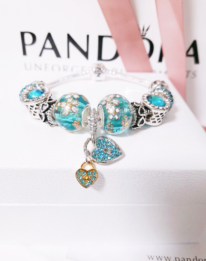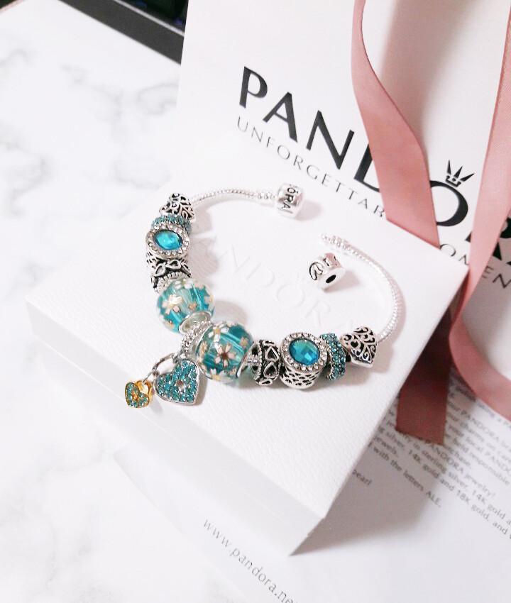 □P.ANDORA 블루 하트 펜던트 참팔찌□