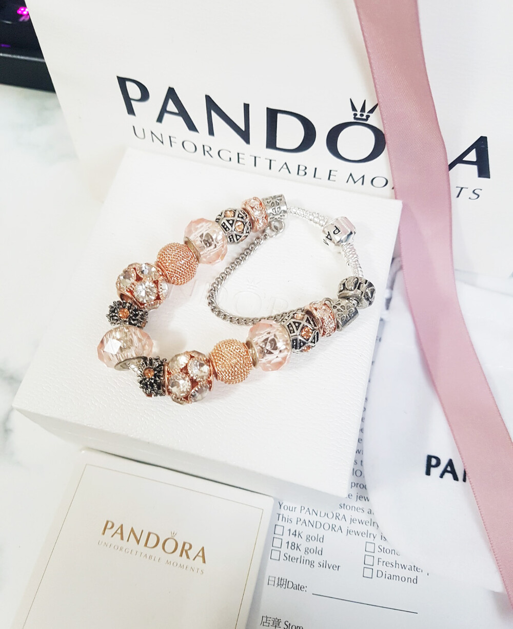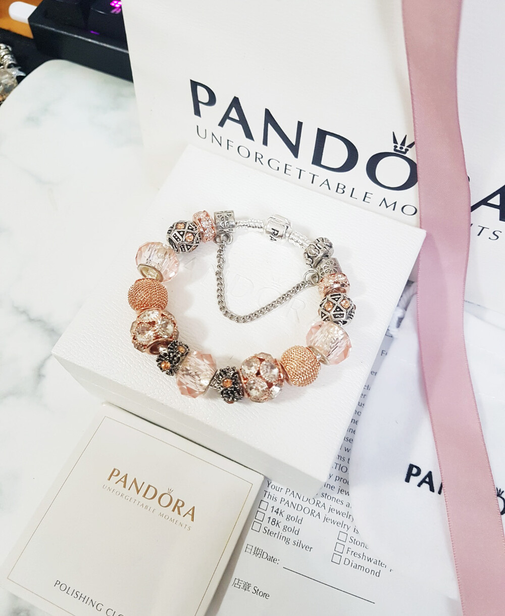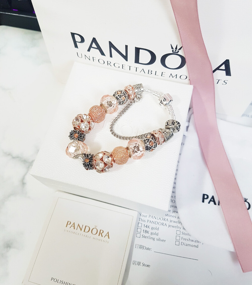 □P.ANDORA 크리스탈 비즈 골드 참팔찌□