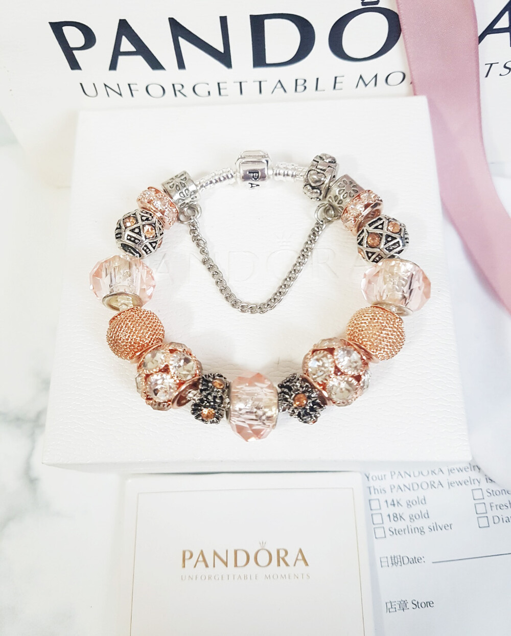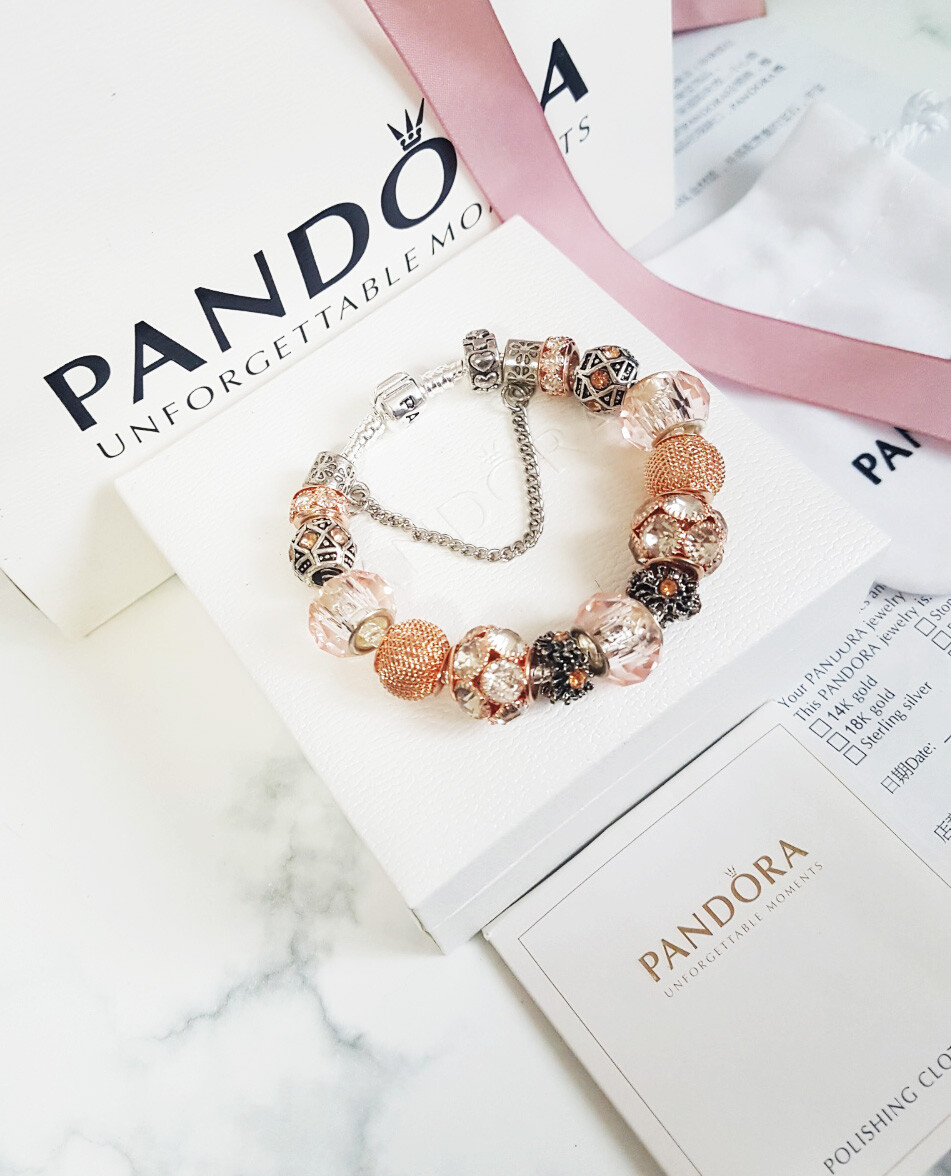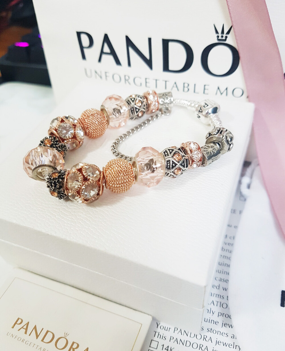 □P.ANDORA 크리스탈 비즈 골드 참팔찌□