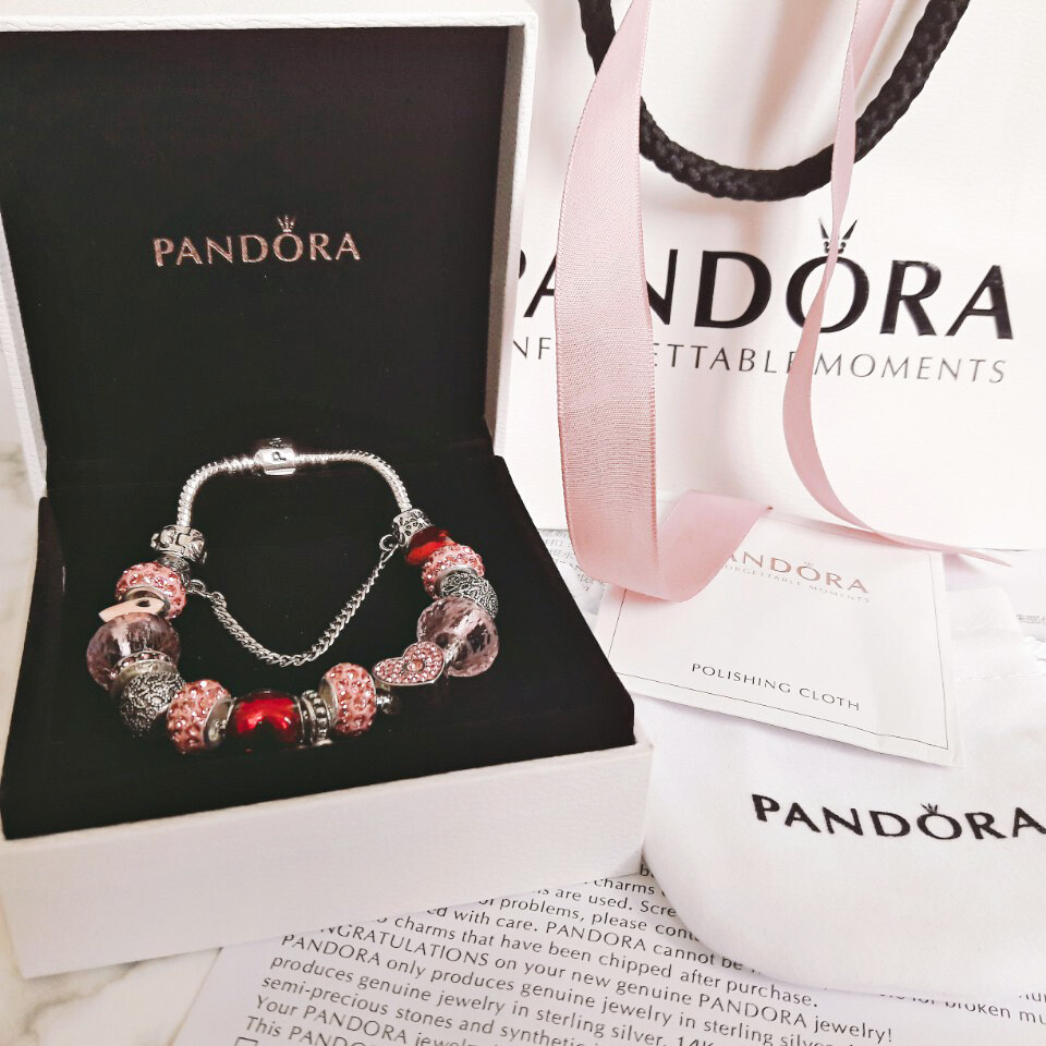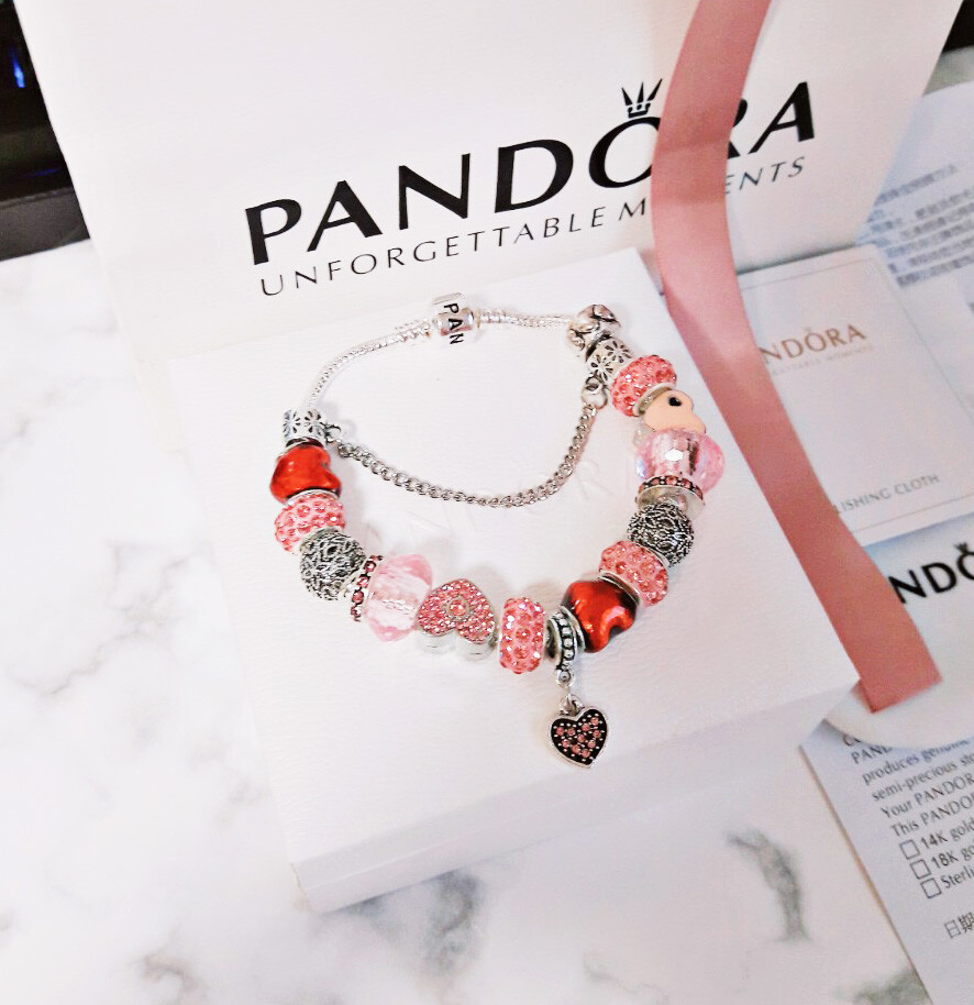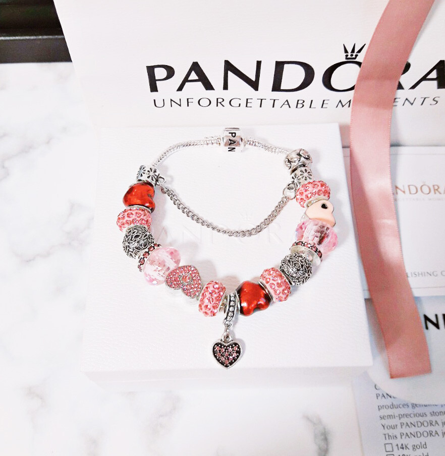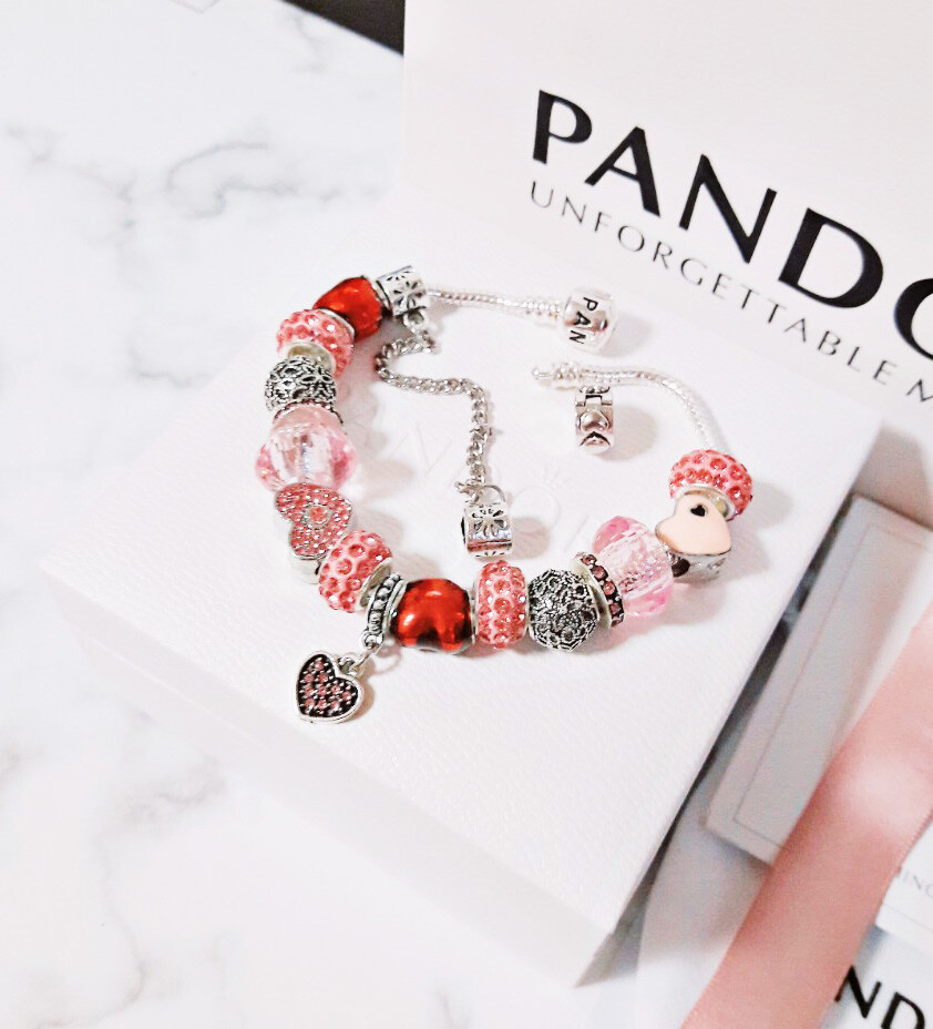 □P.ANDORA 핑크 하트 참팔찌□