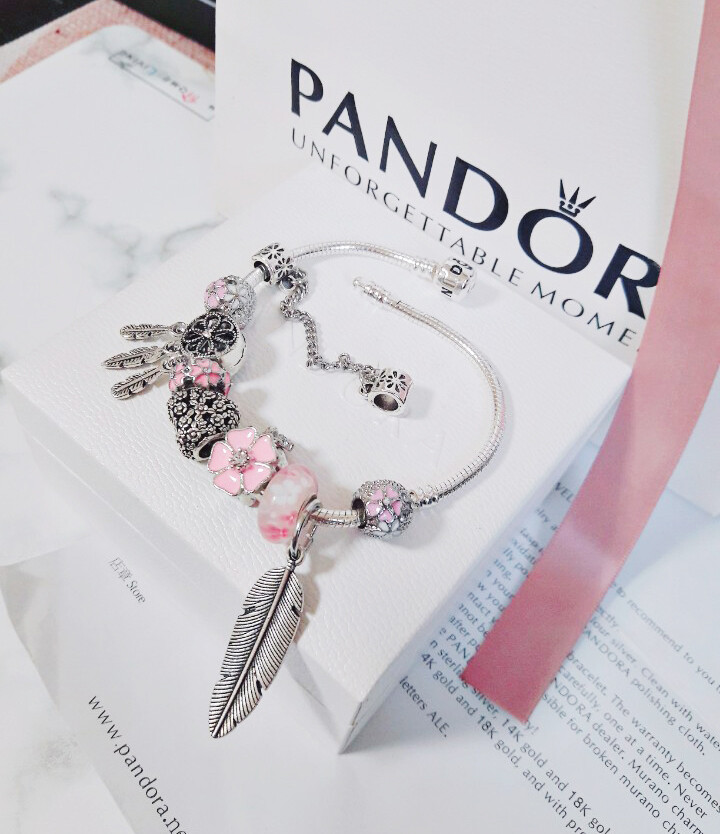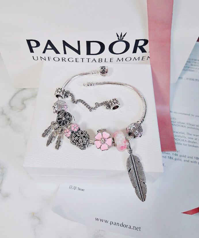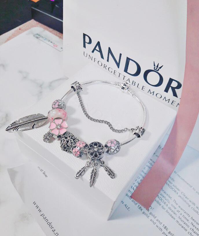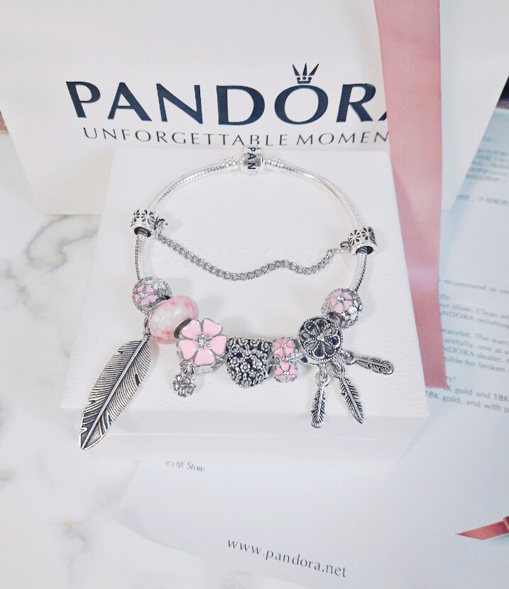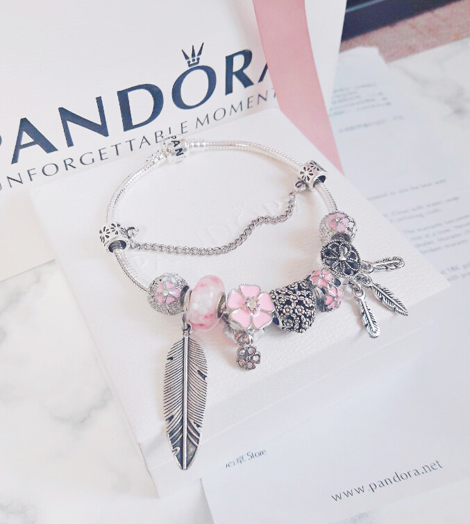 □P.ANDORA 핑크 플라워 드림캐쳐 참팔찌□