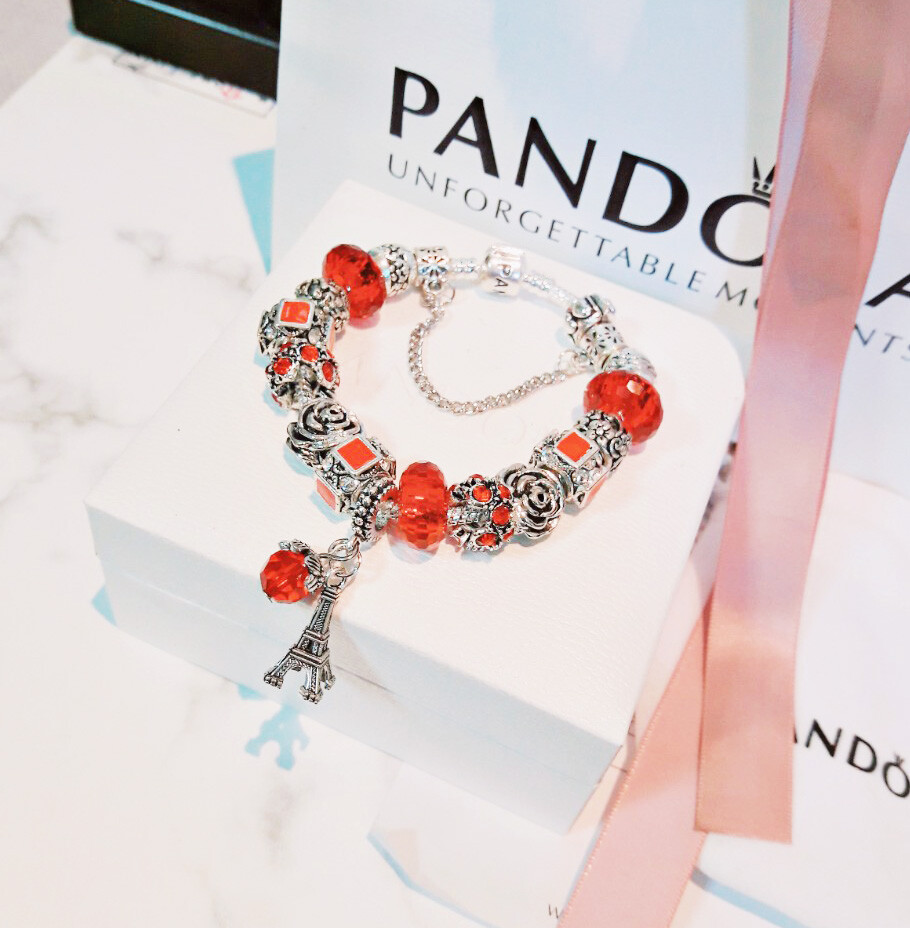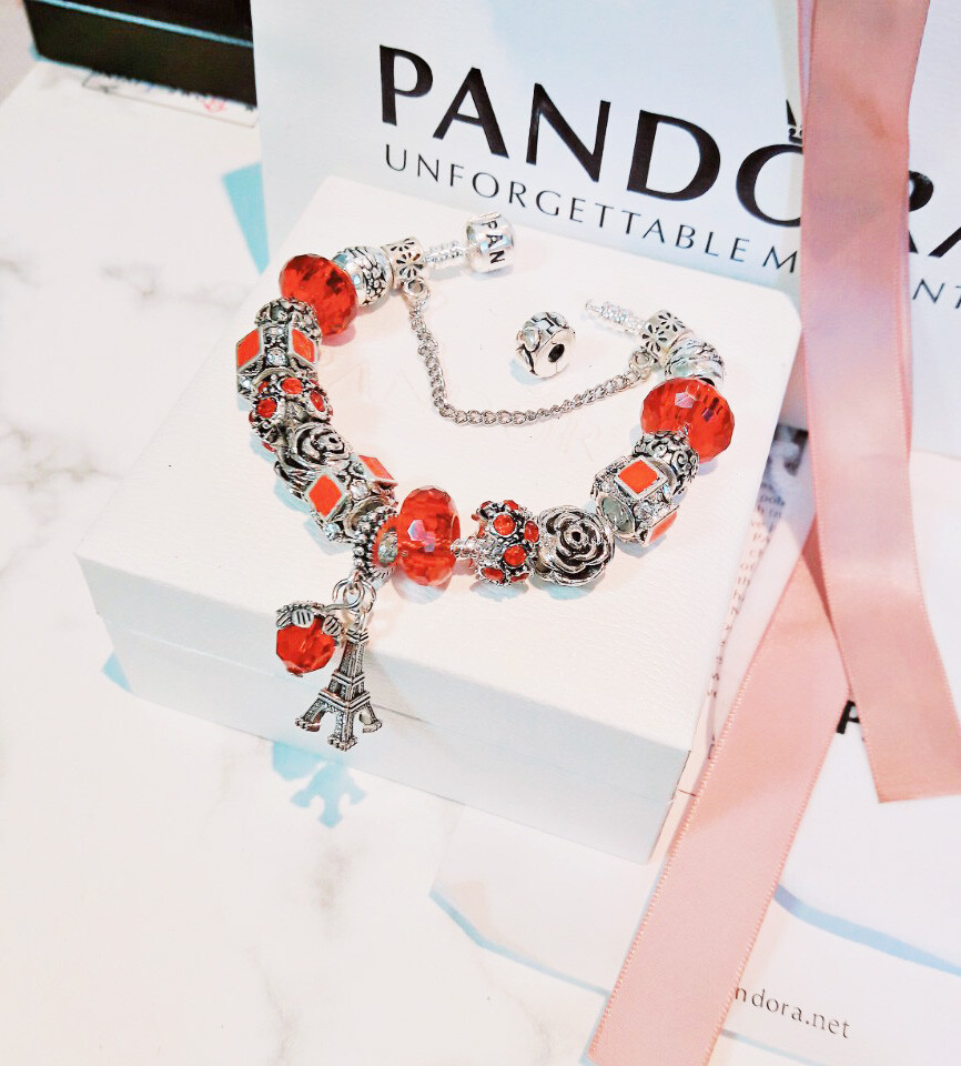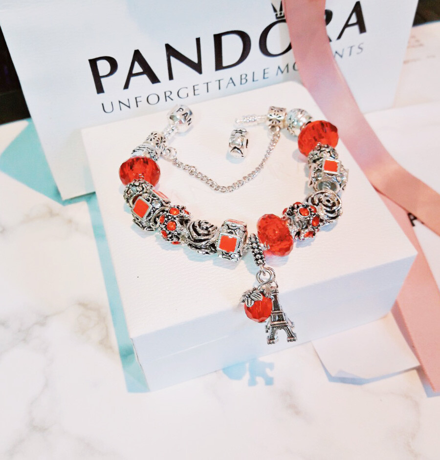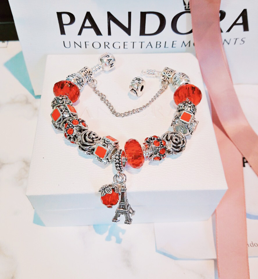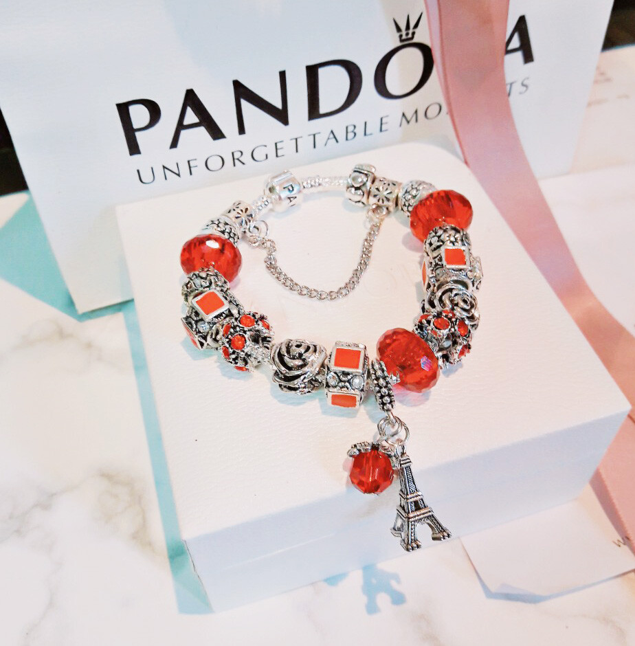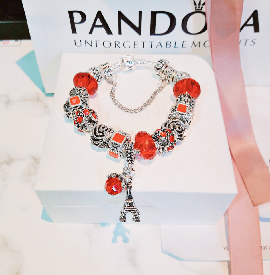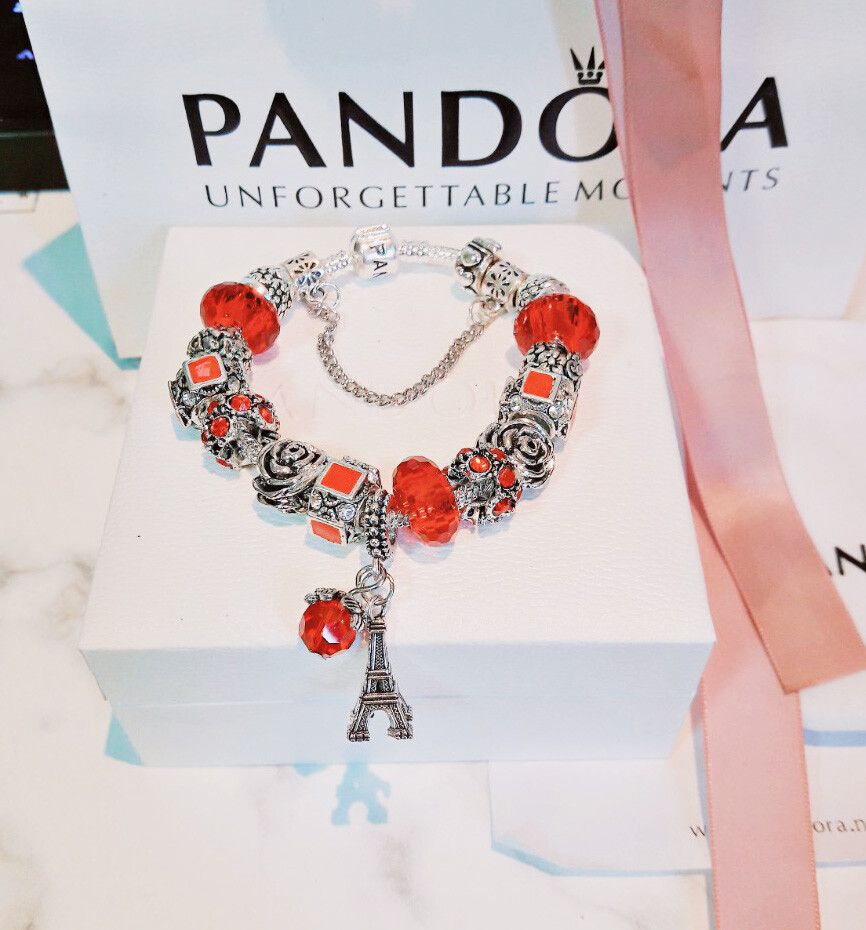 □P.ANDORA 레드 에펠탑 참팔찌□