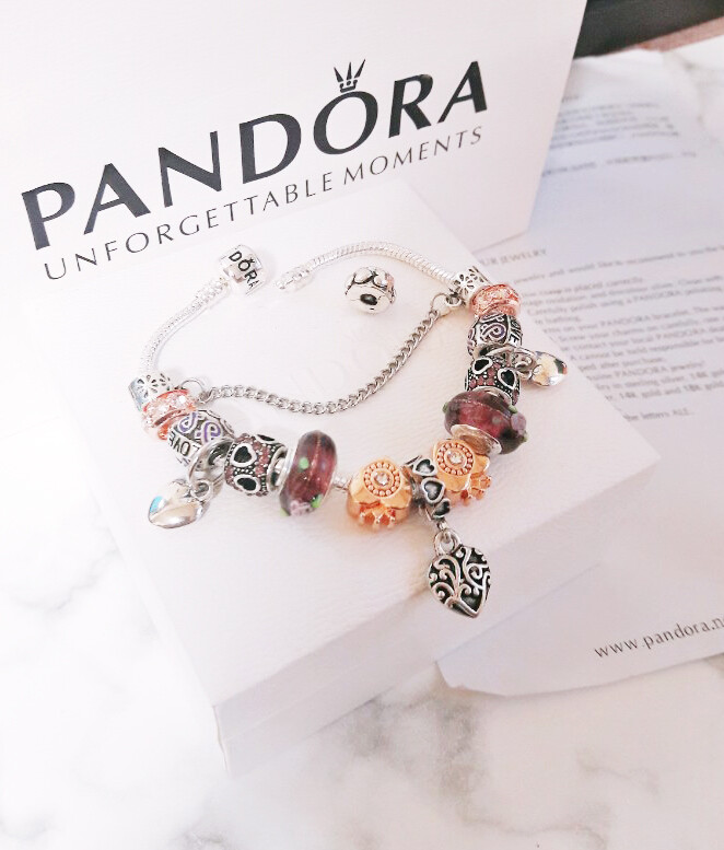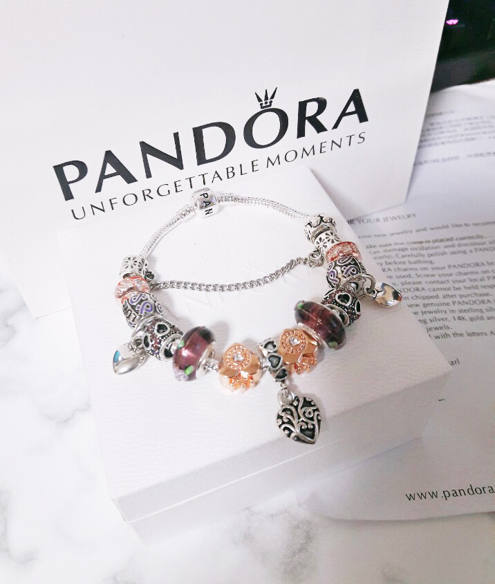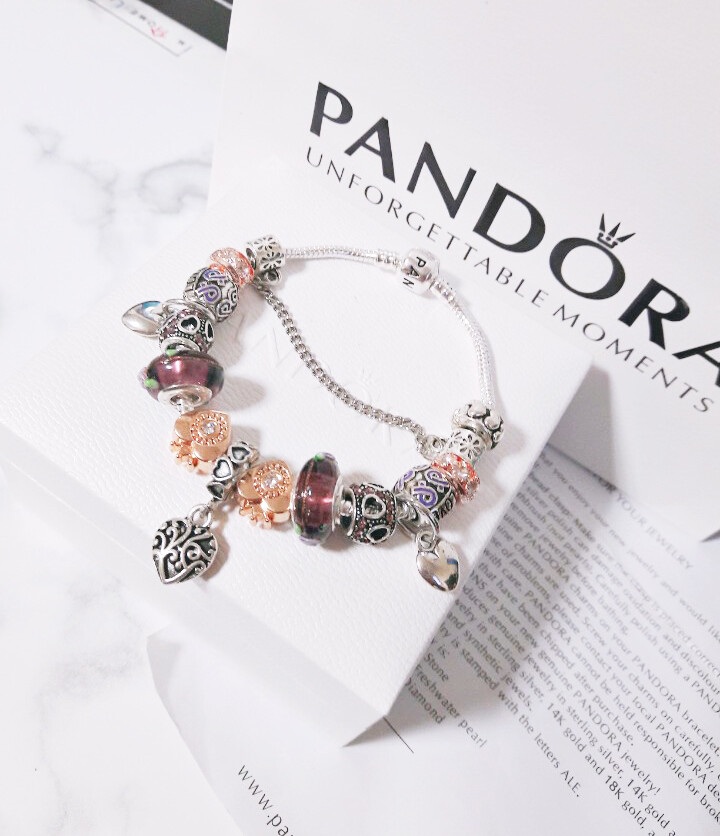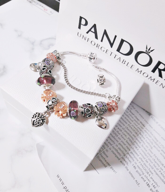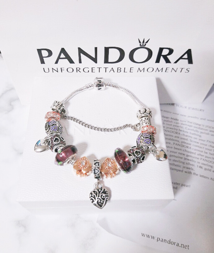 □P.ANDORA 바이올렛 골드 하트 참팔찌□