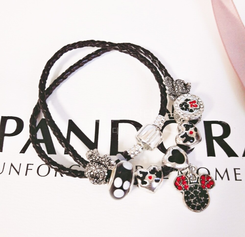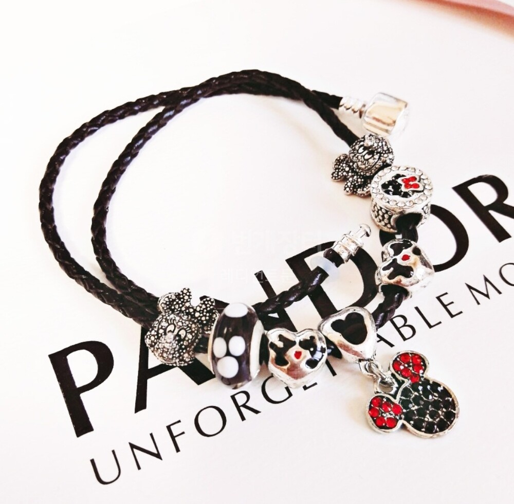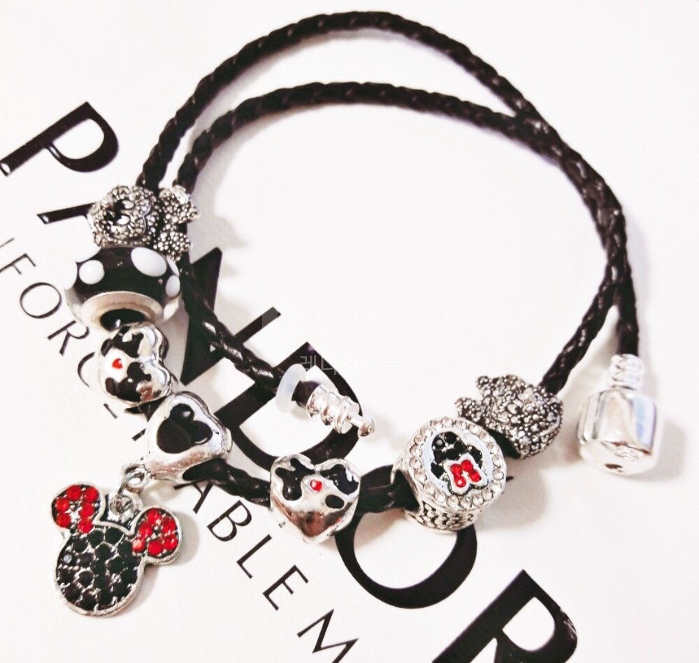 디즈니 미키 미니 가죽체인 참팔찌 입니다.
