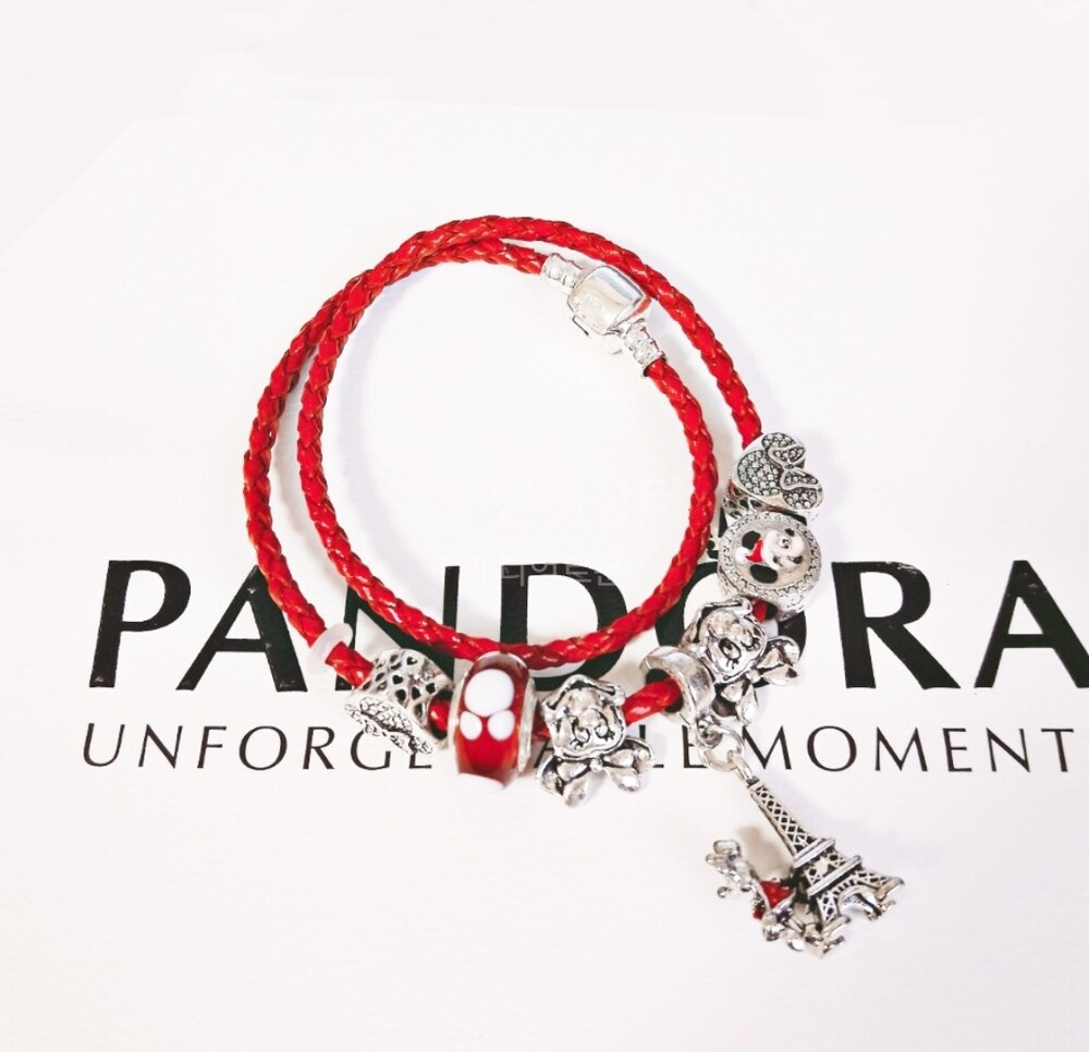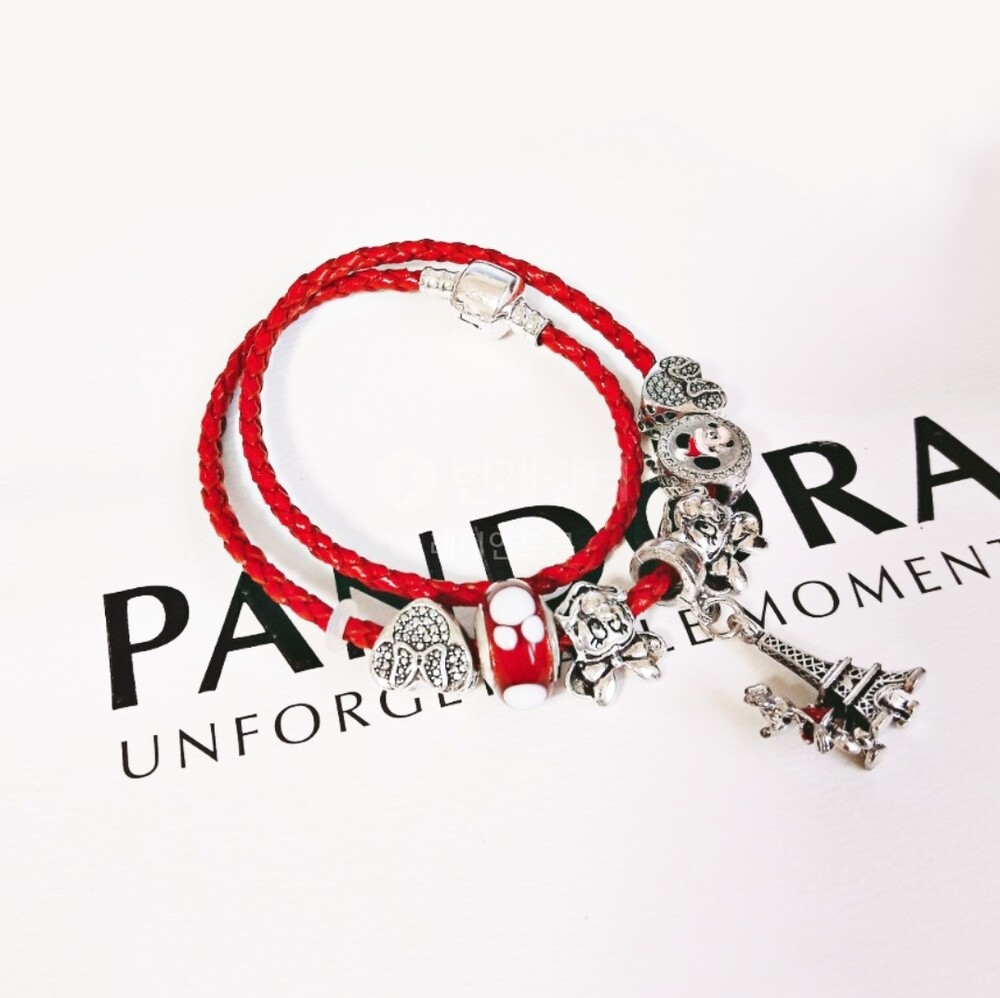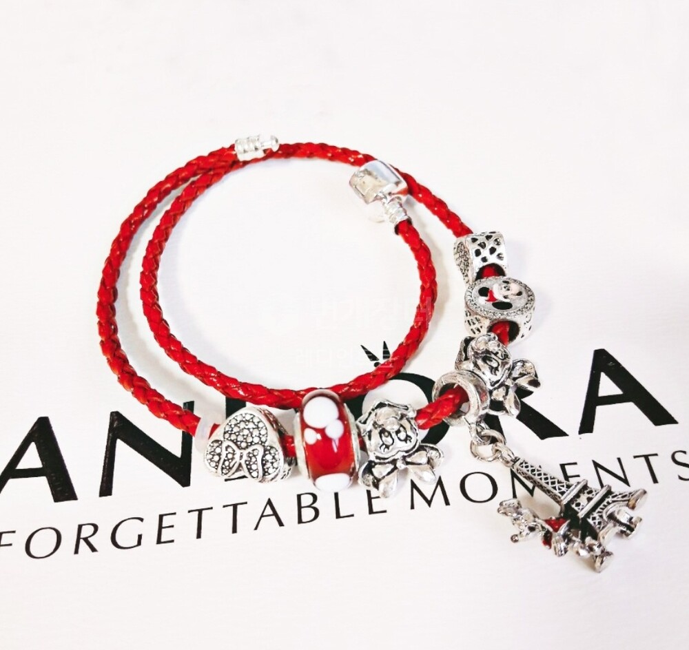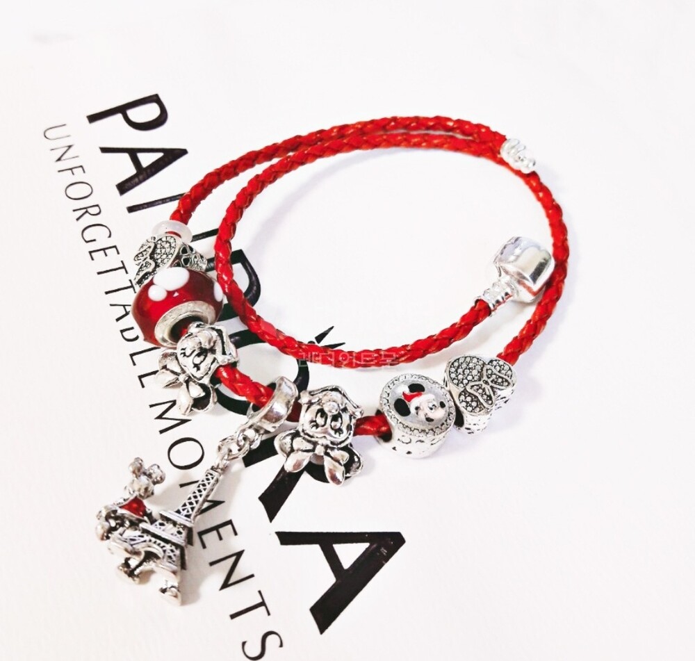 디즈니 미키 미니 에펠탑 가죽체인 참팔찌 입니다.