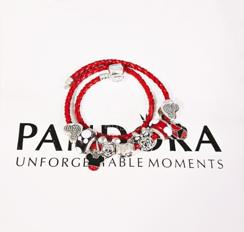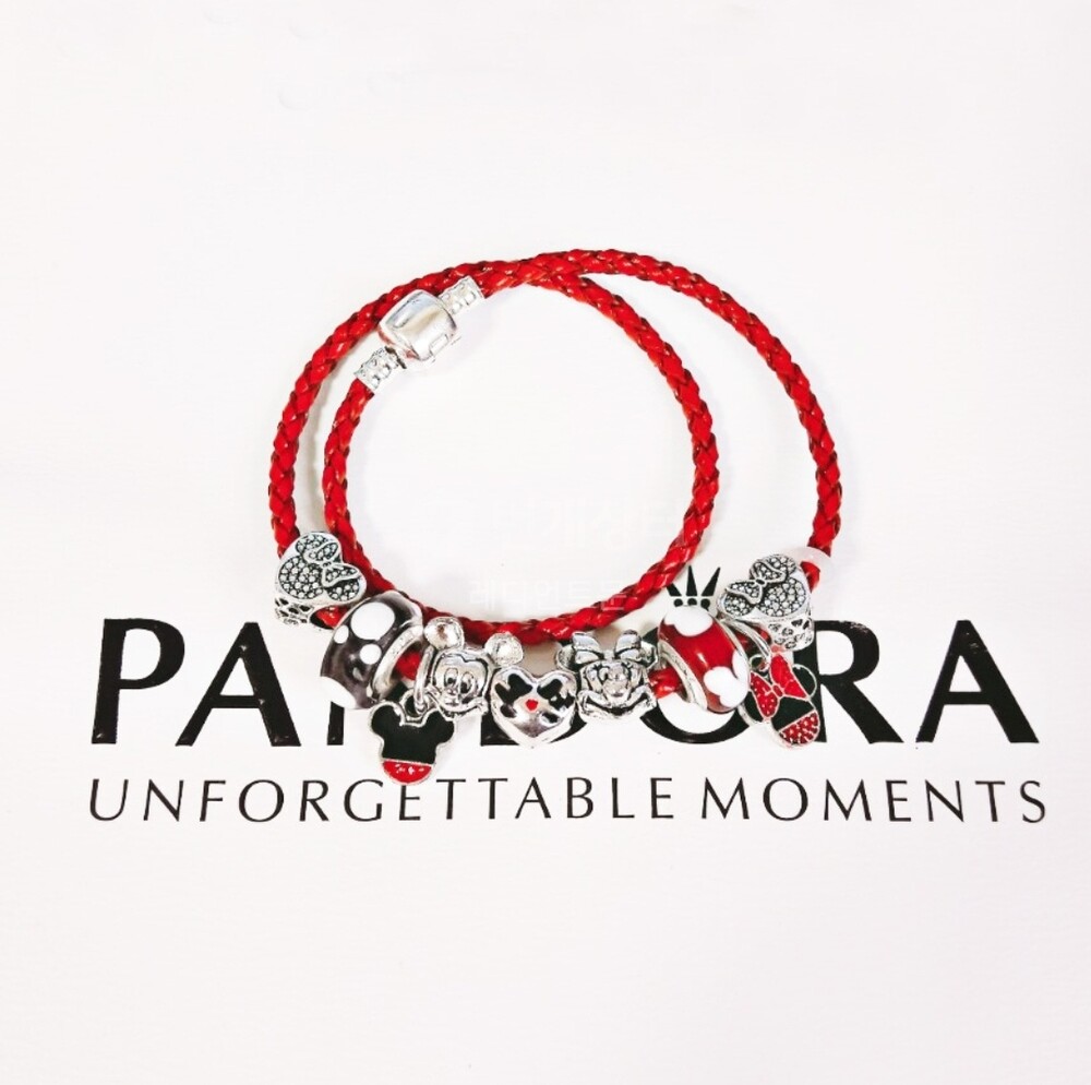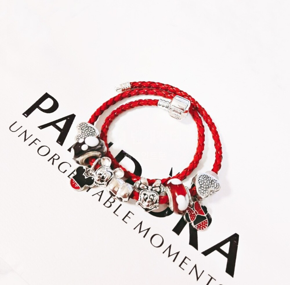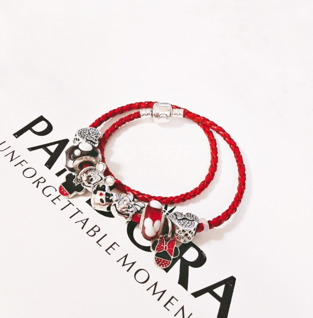 디즈니 미키 미니 댕글 가죽체인 참팔찌 입니다.