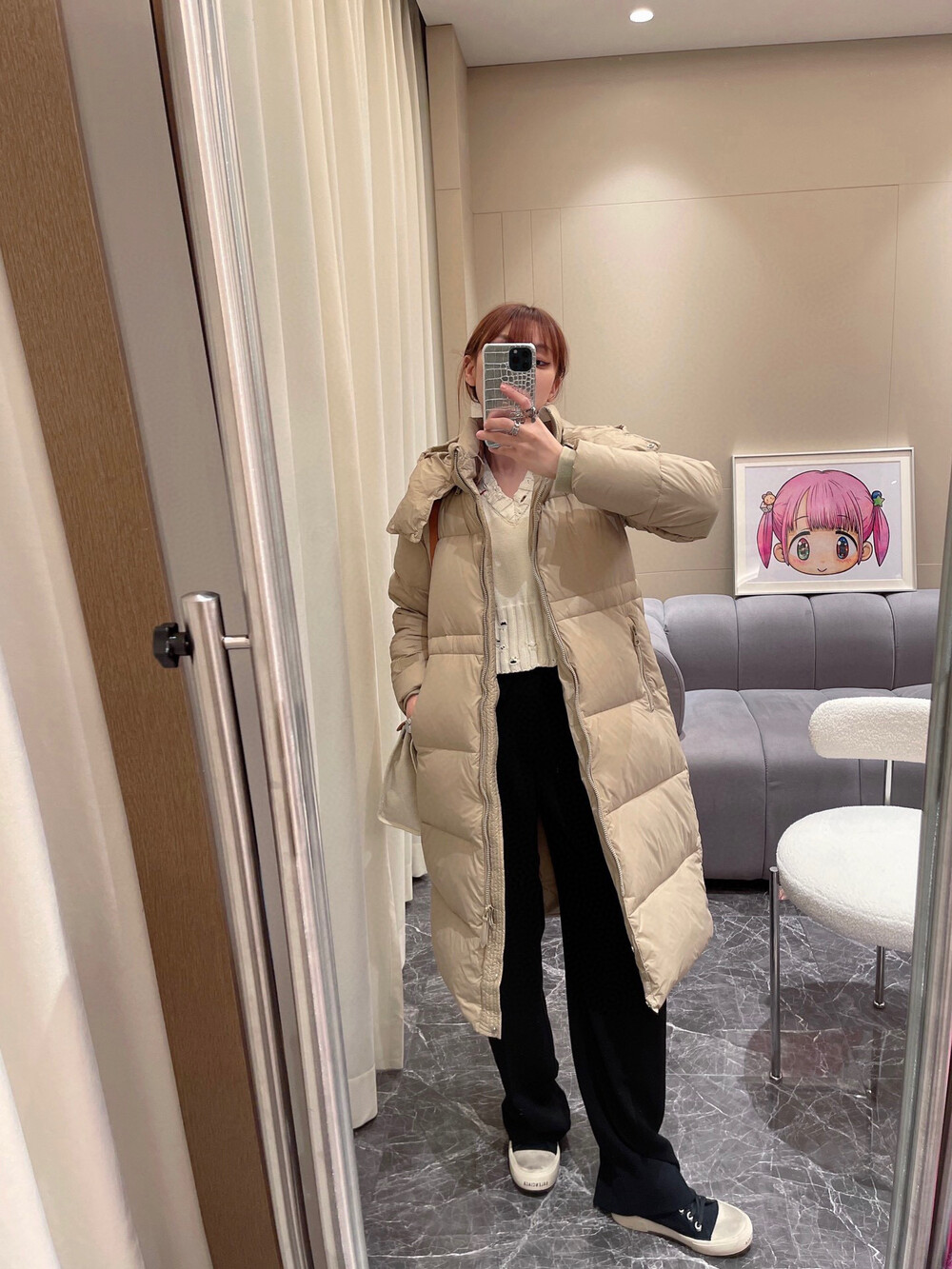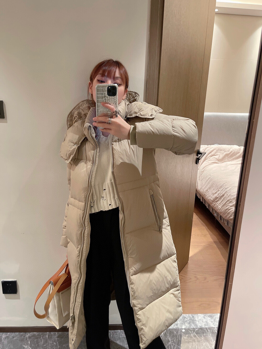 □디태처블 후드 퍼퍼 롱 패딩□