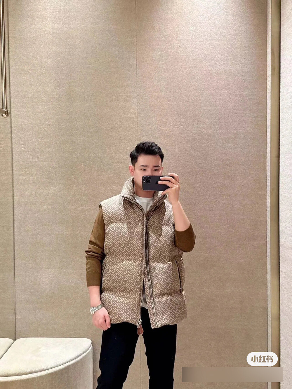 □TB 로고 패턴 패딩 베스트□