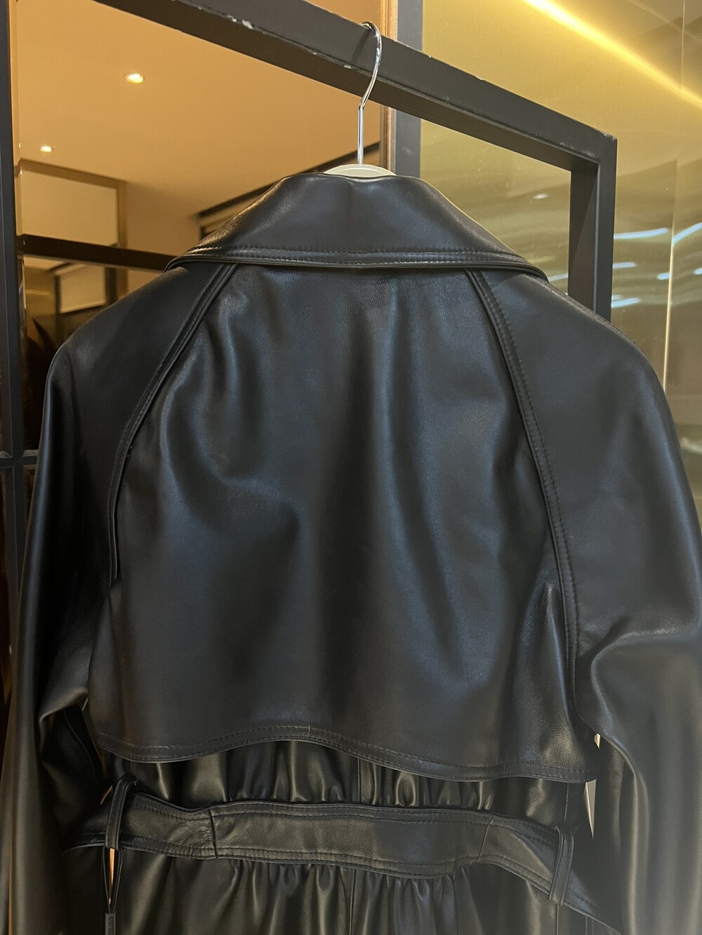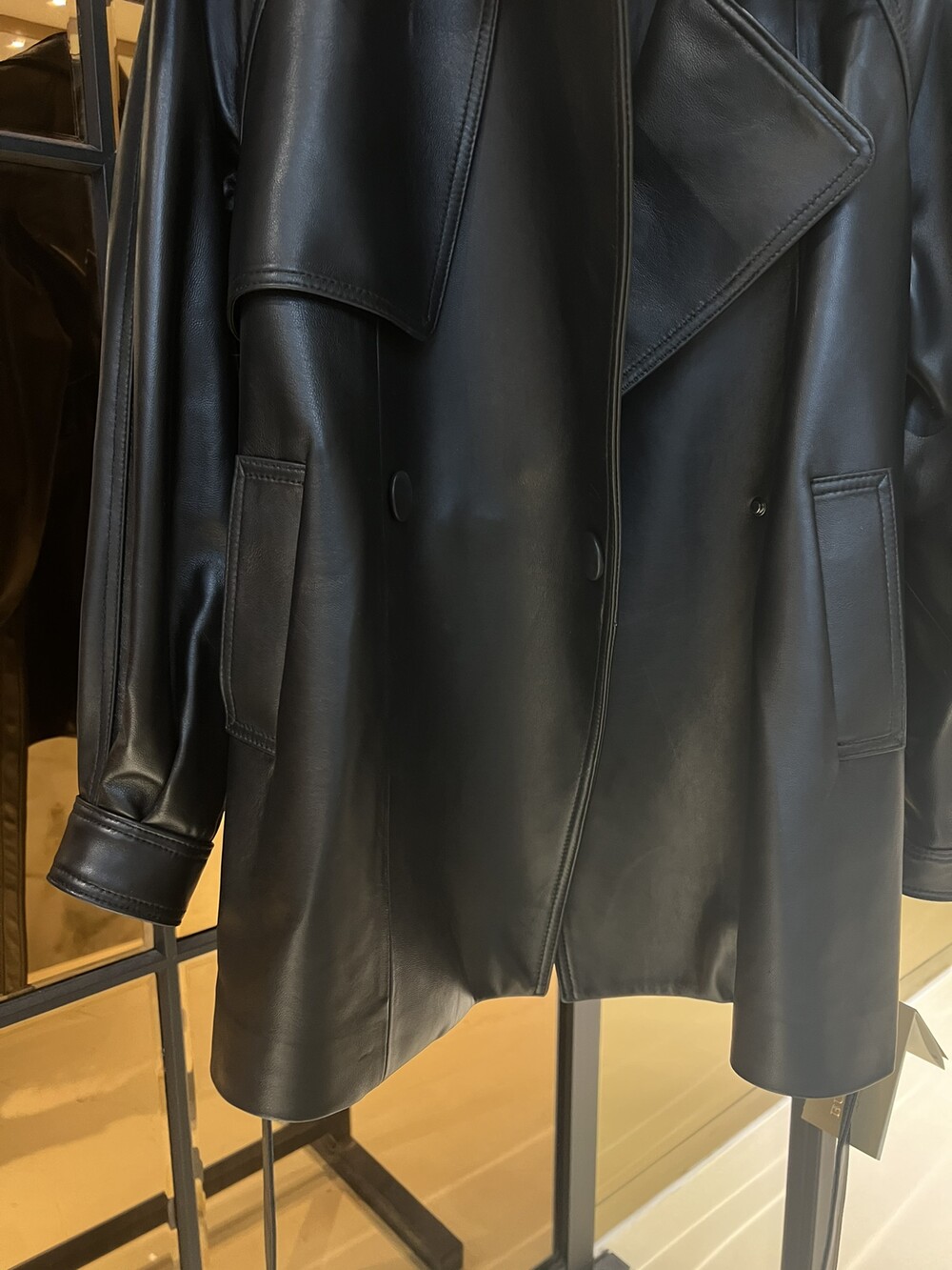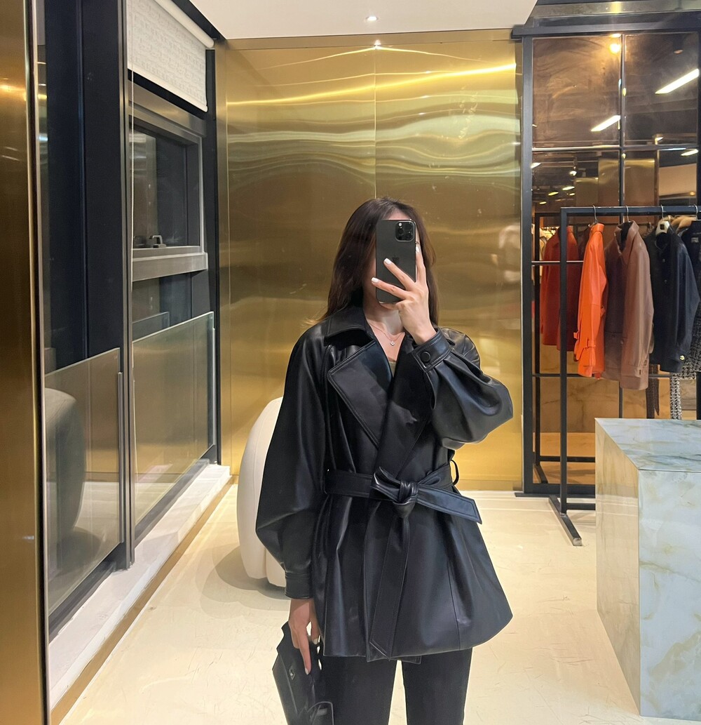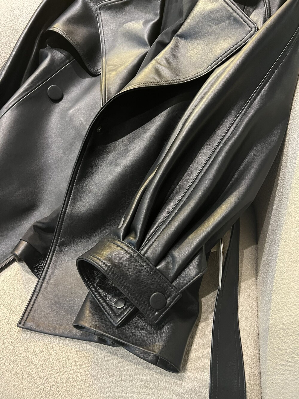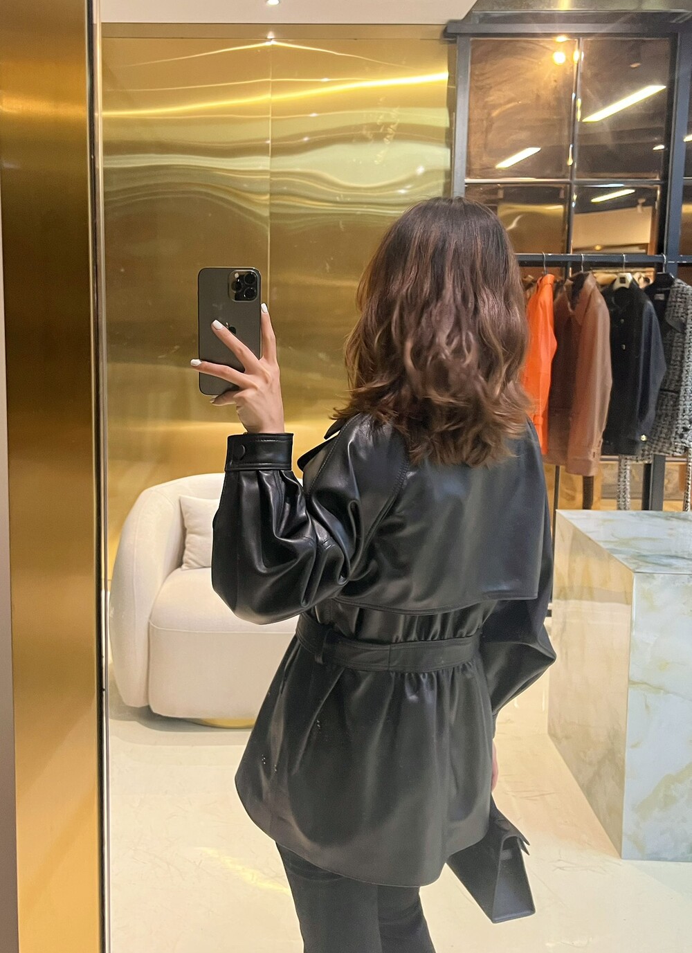 미니멀 가죽 쇼트 트렌치 코트 라펠