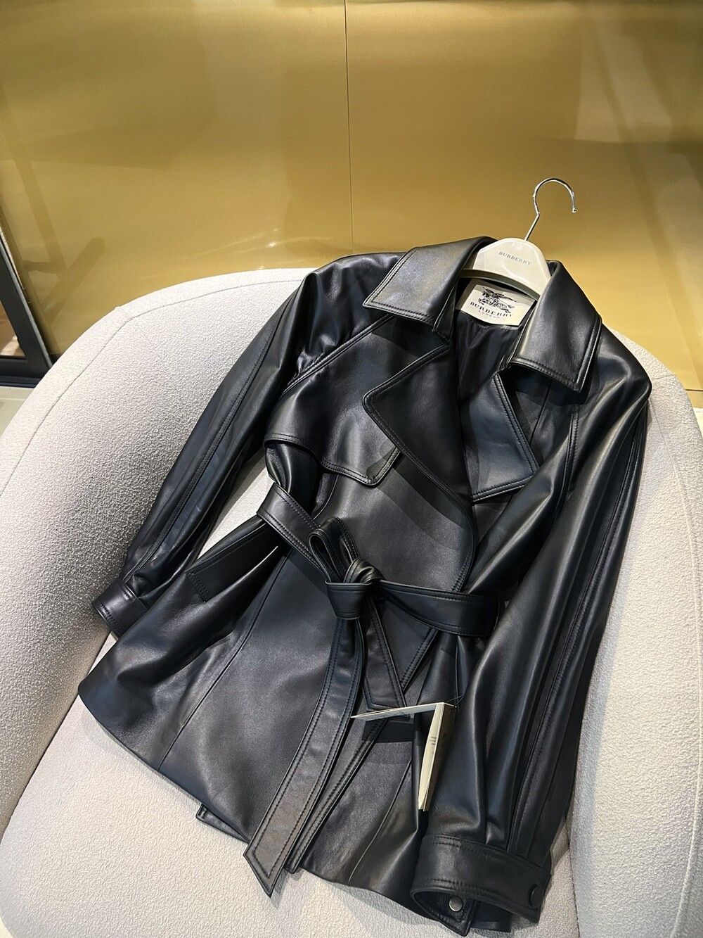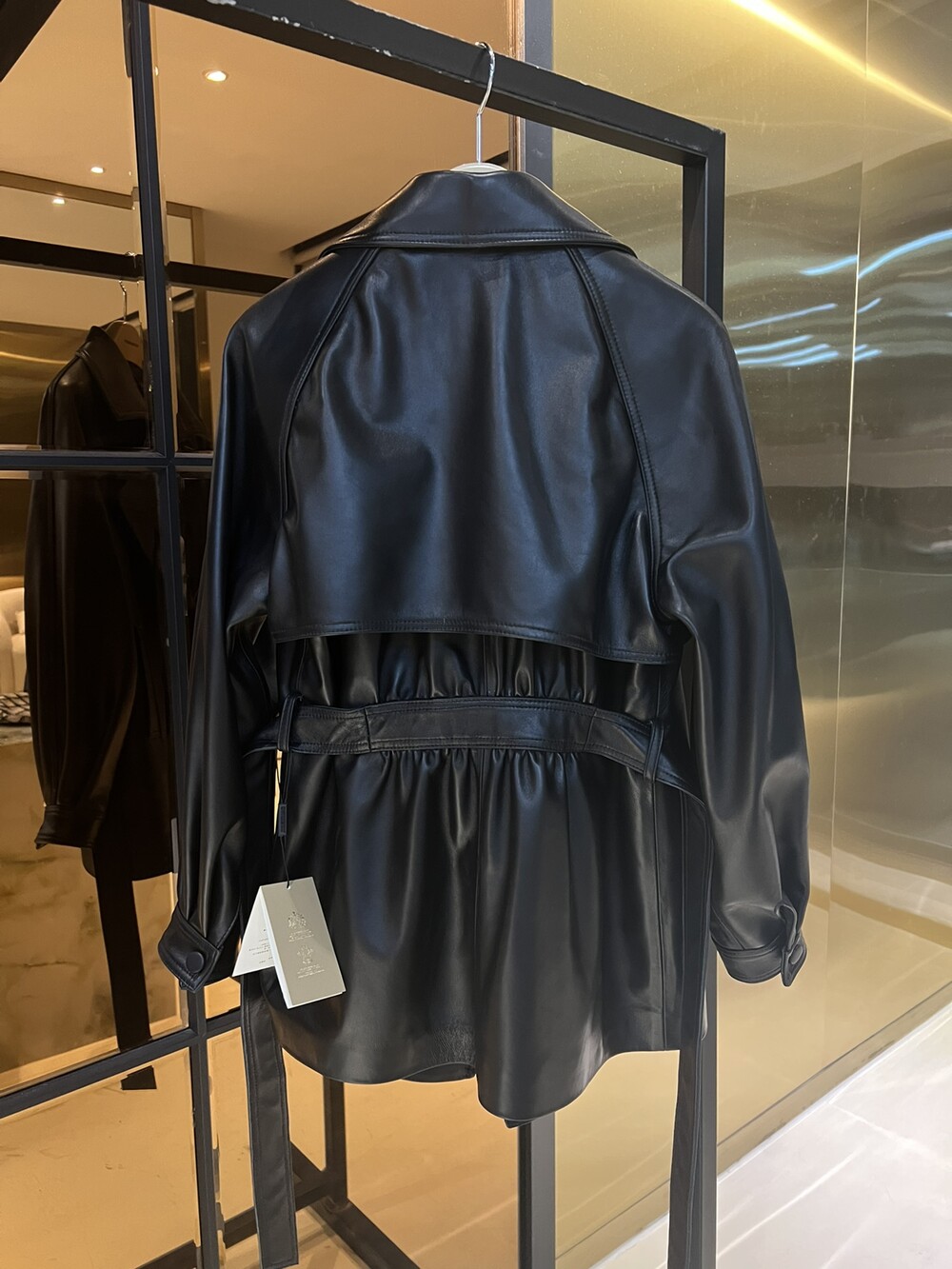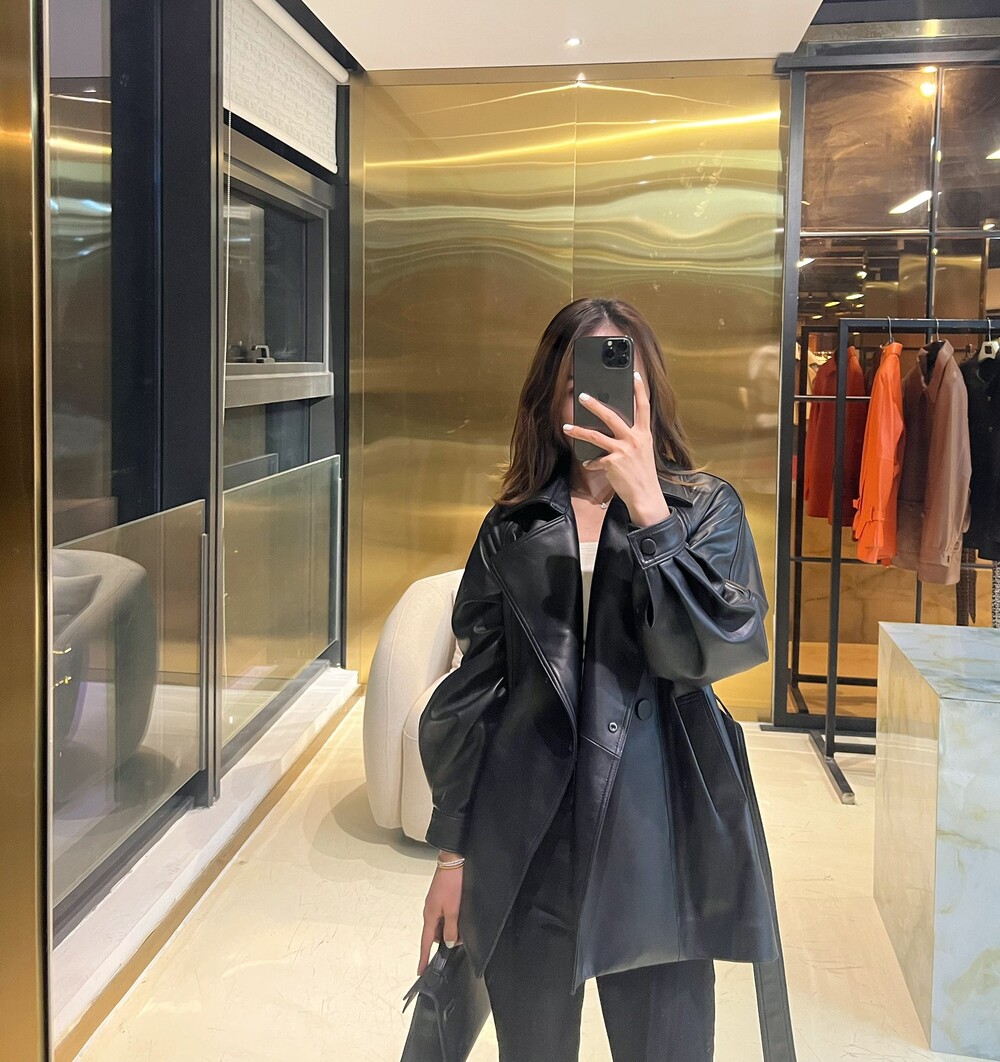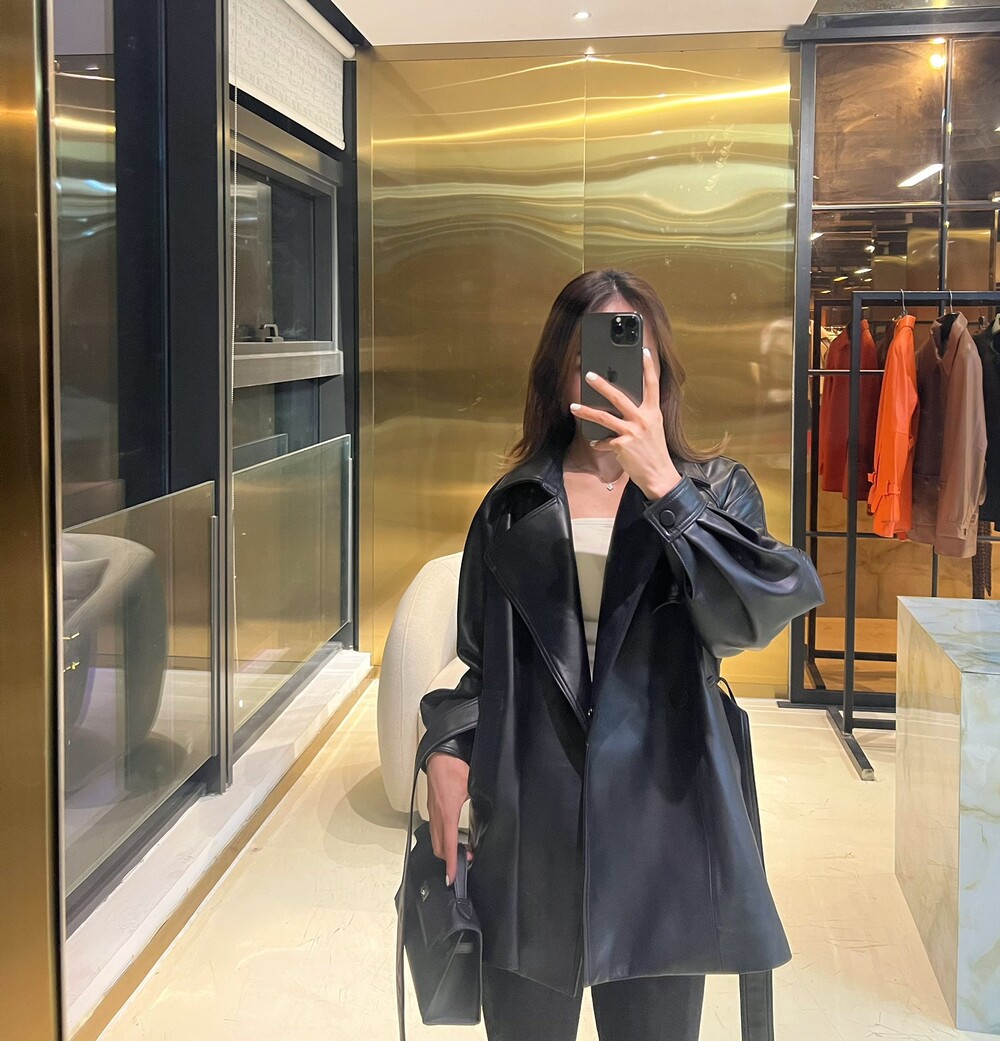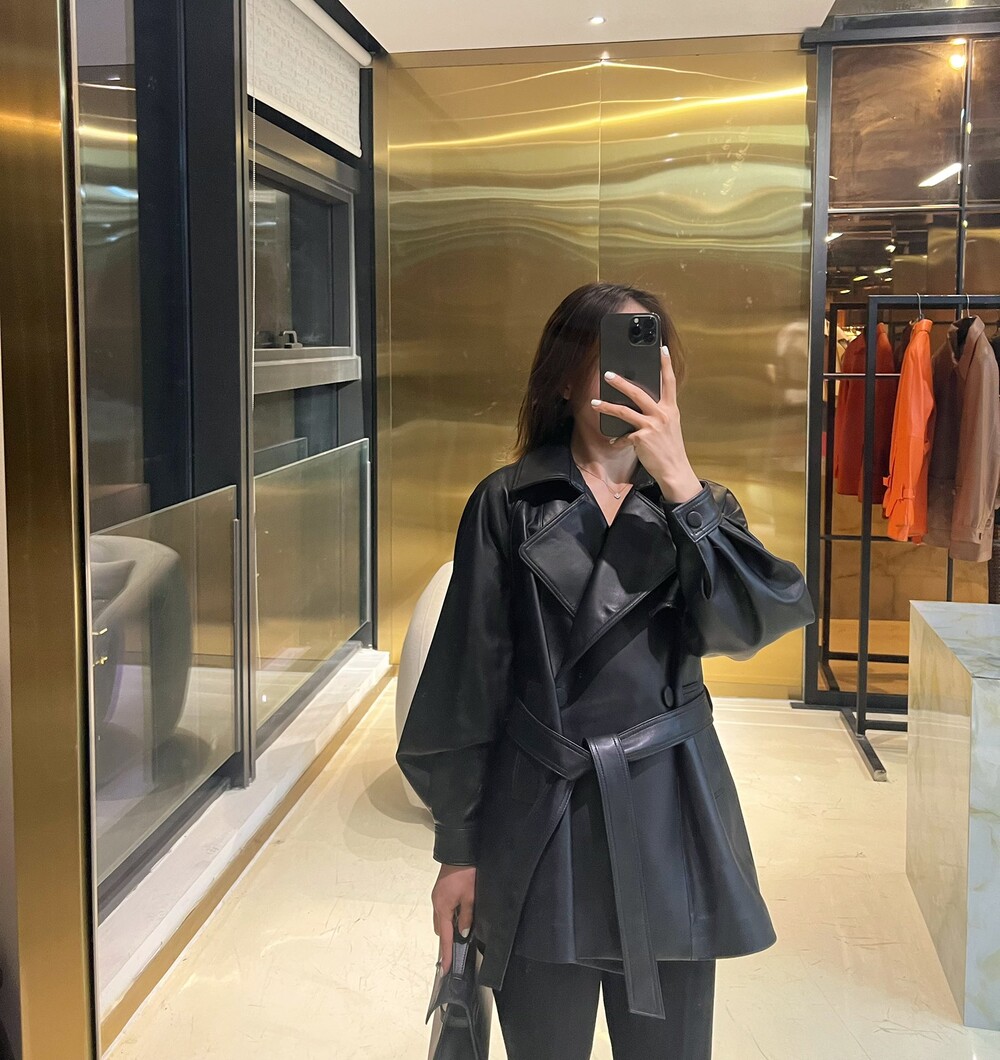 미니멀 가죽 쇼트 트렌치 코트 라펠