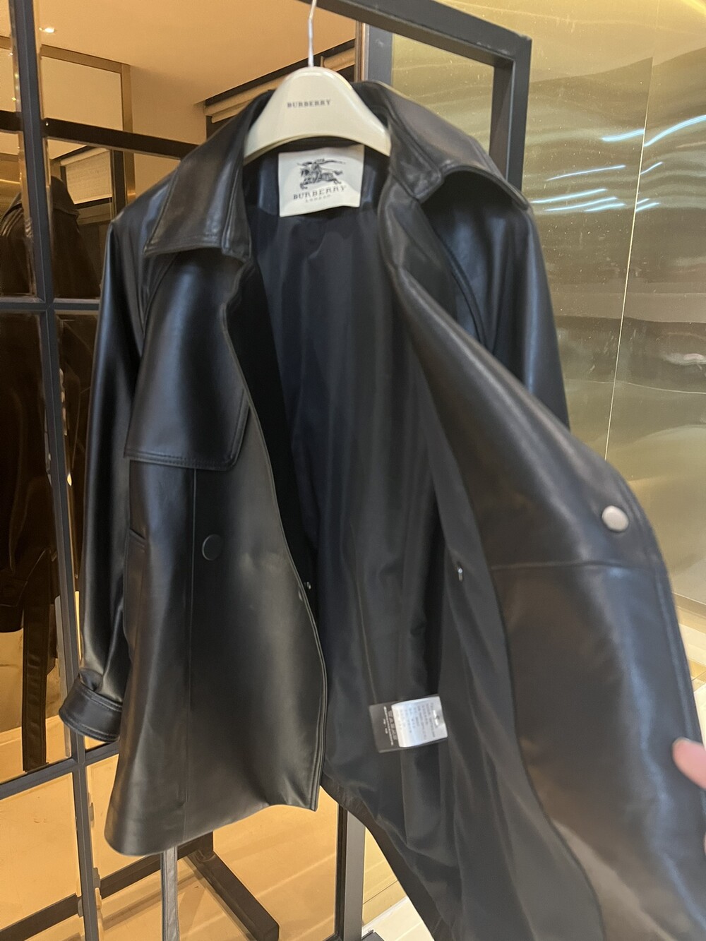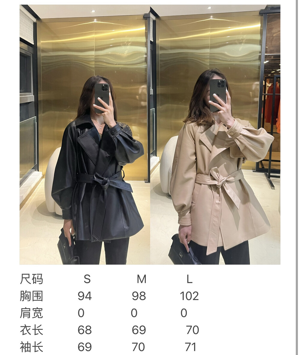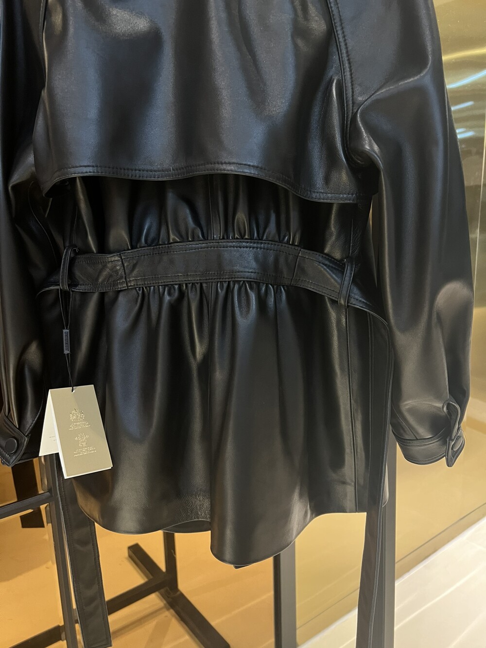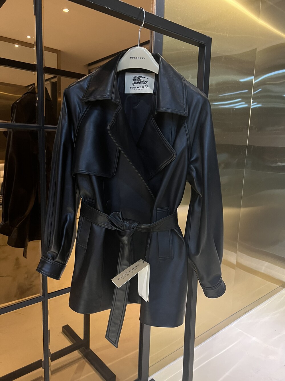 미니멀 가죽 쇼트 트렌치 코트 라펠