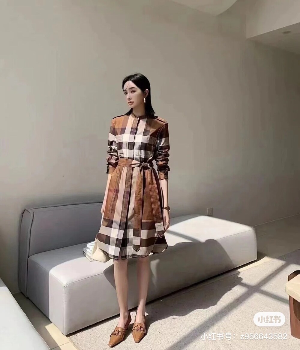 🅱️체크 코튼 포플린 벨트 셔츠 드레스