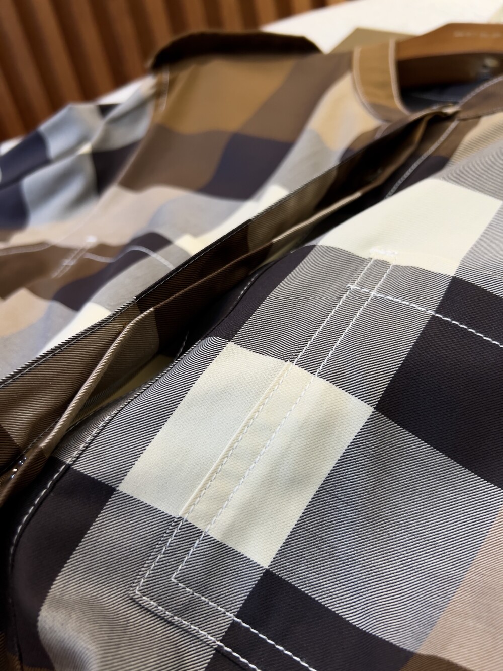눈에 띄는 대형 체크 무늬 디자인을 채택하고