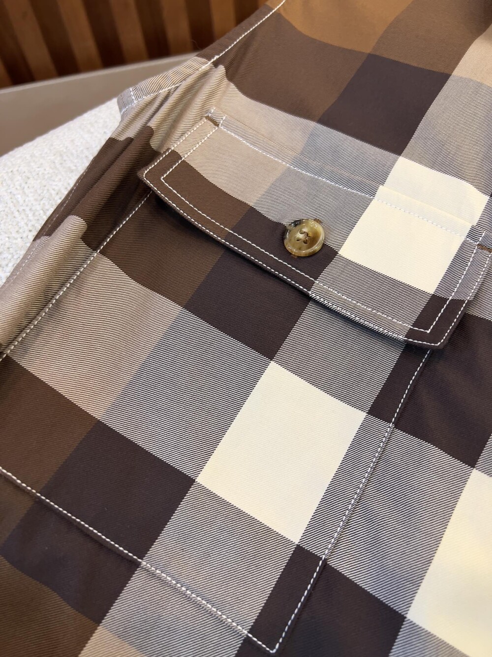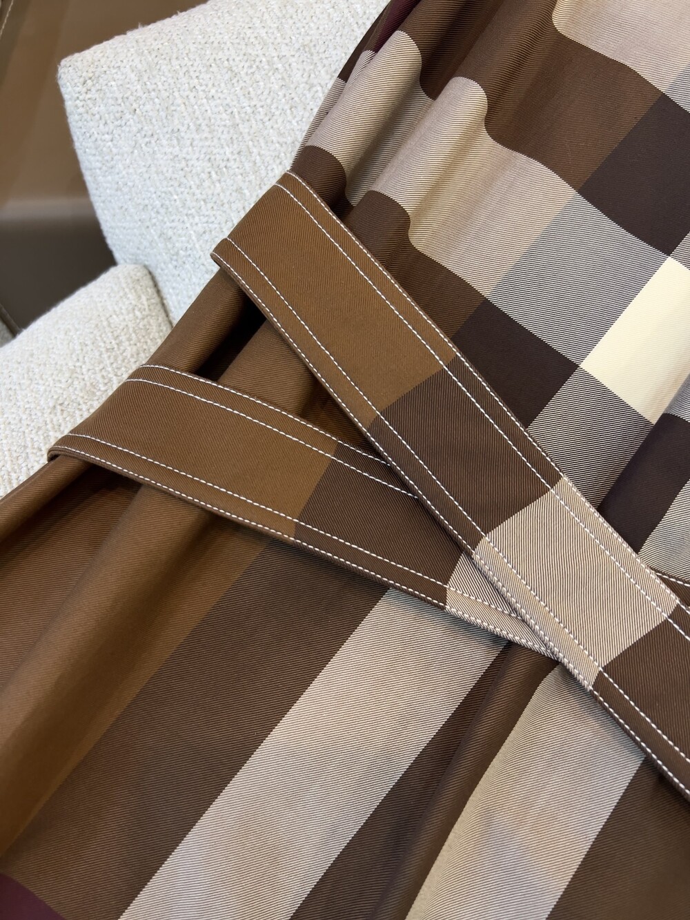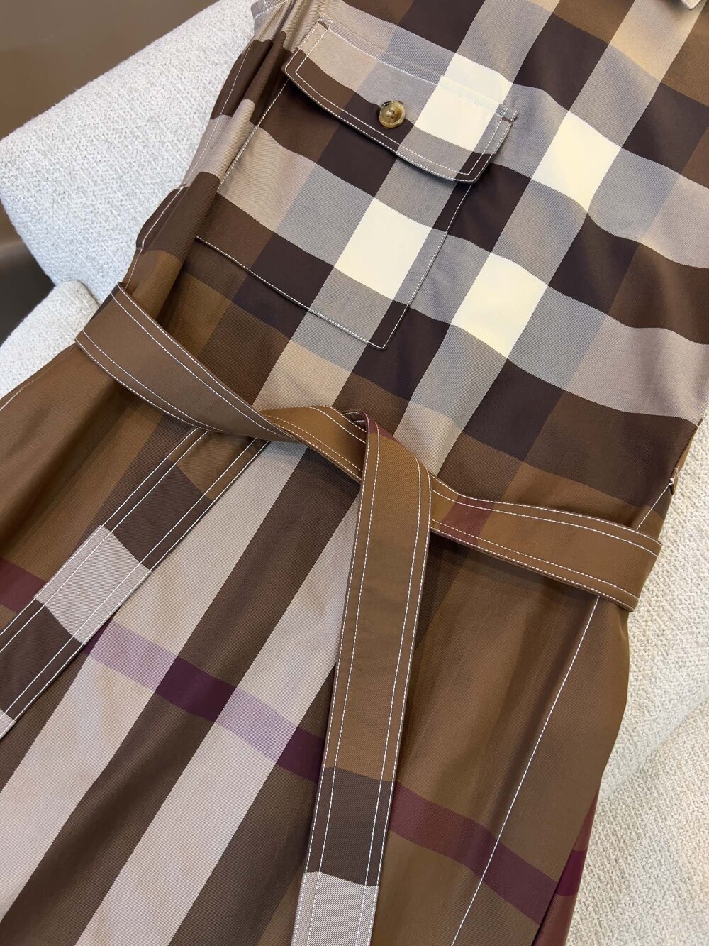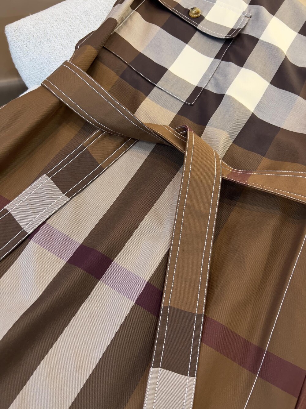 이 브라운 우드 체크 무늬 셔츠 드레스는