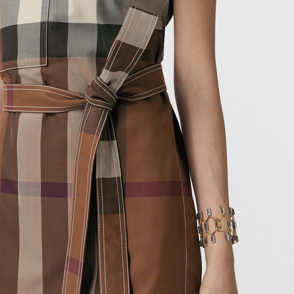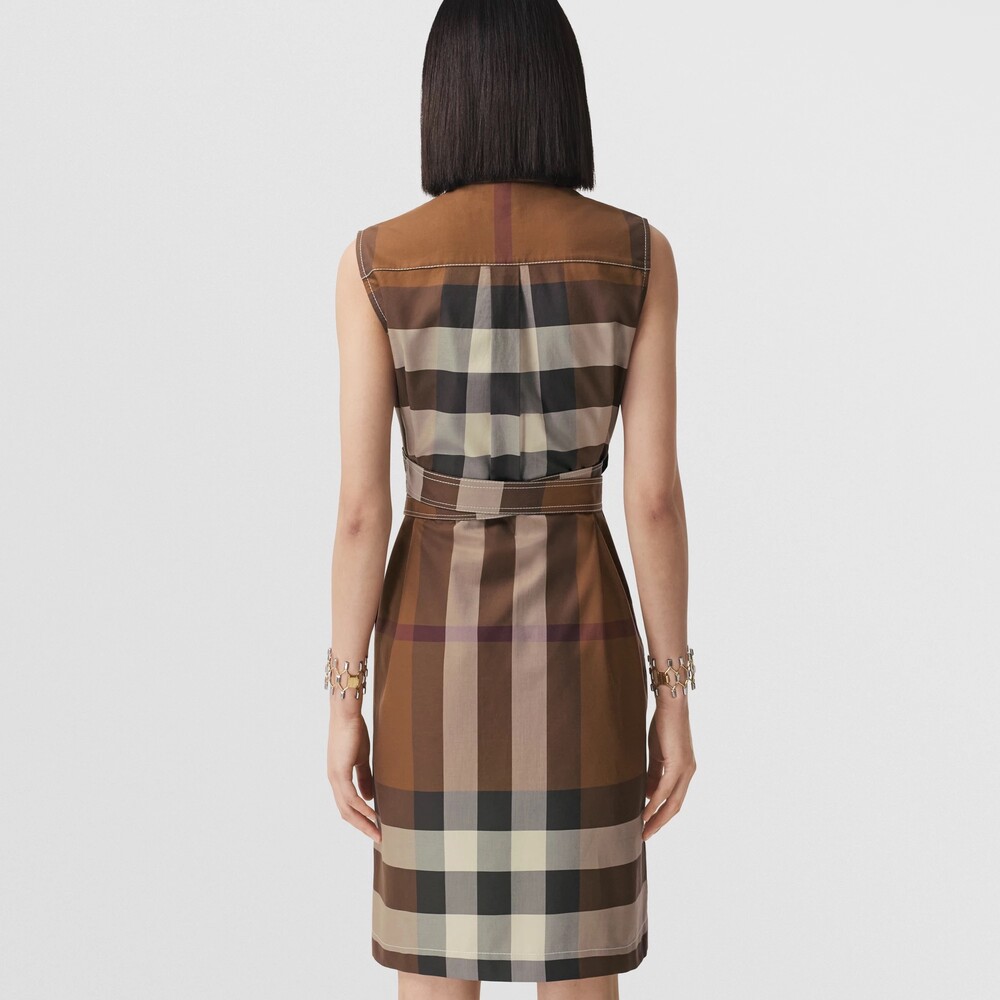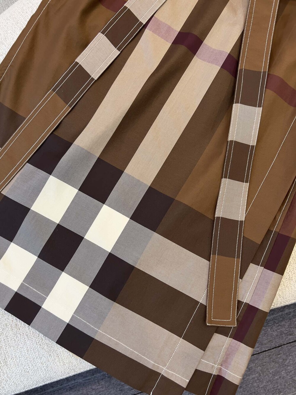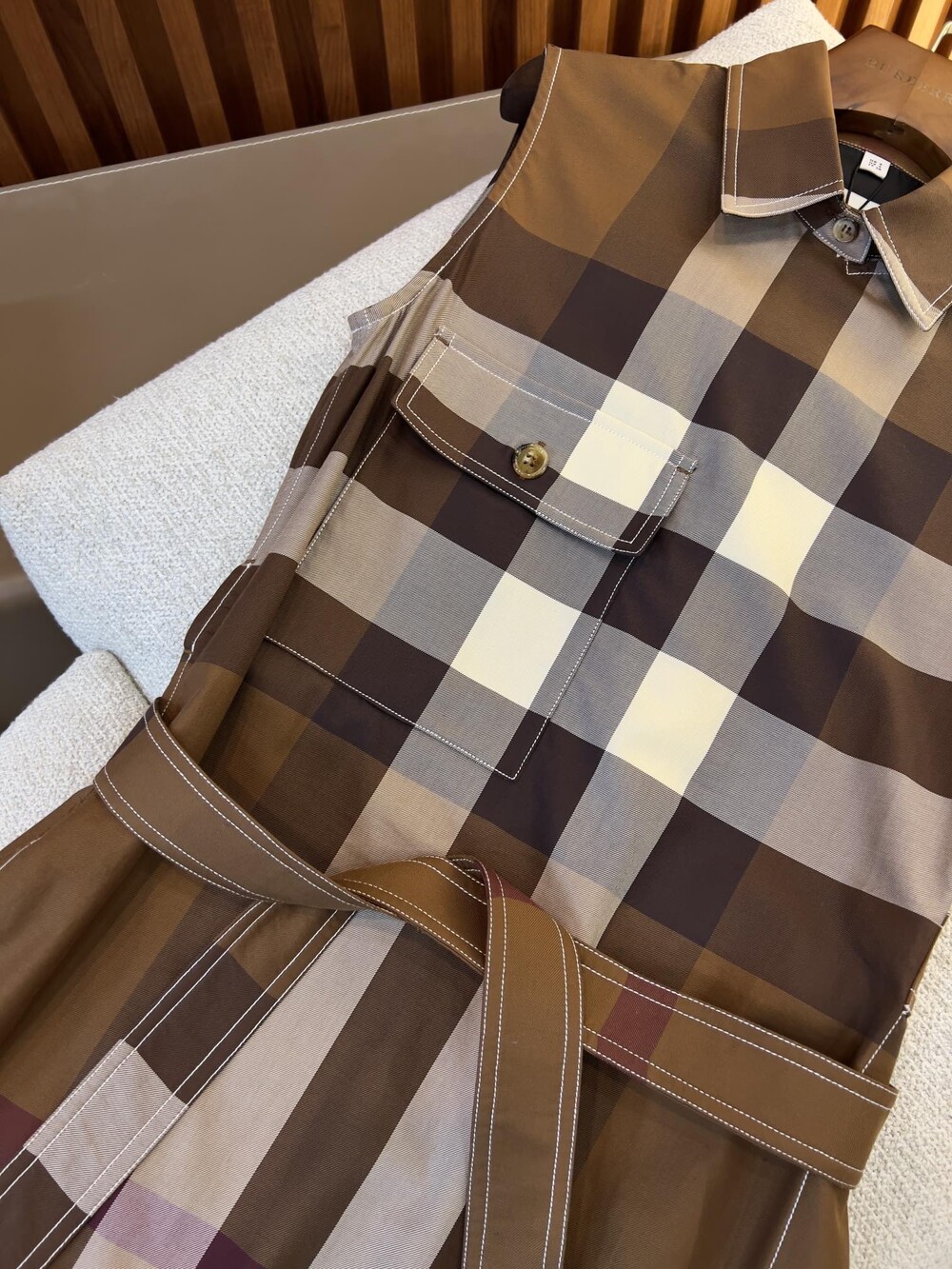이 브라운 우드 체크 무늬 셔츠 드레스는