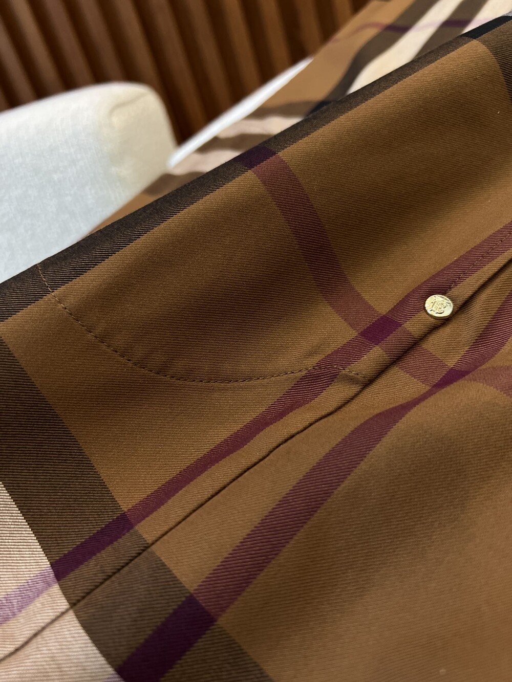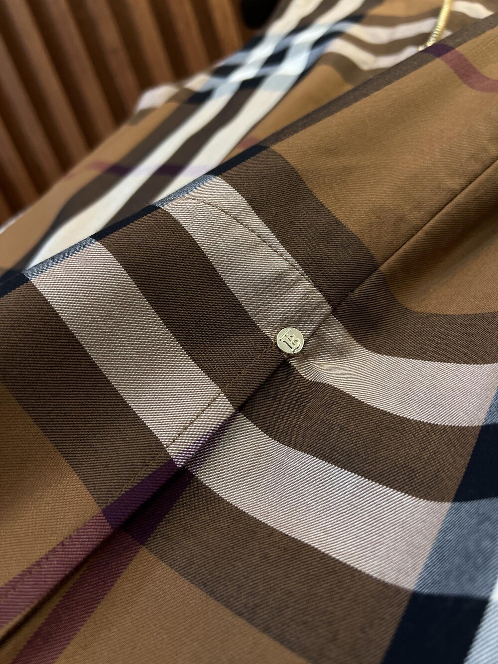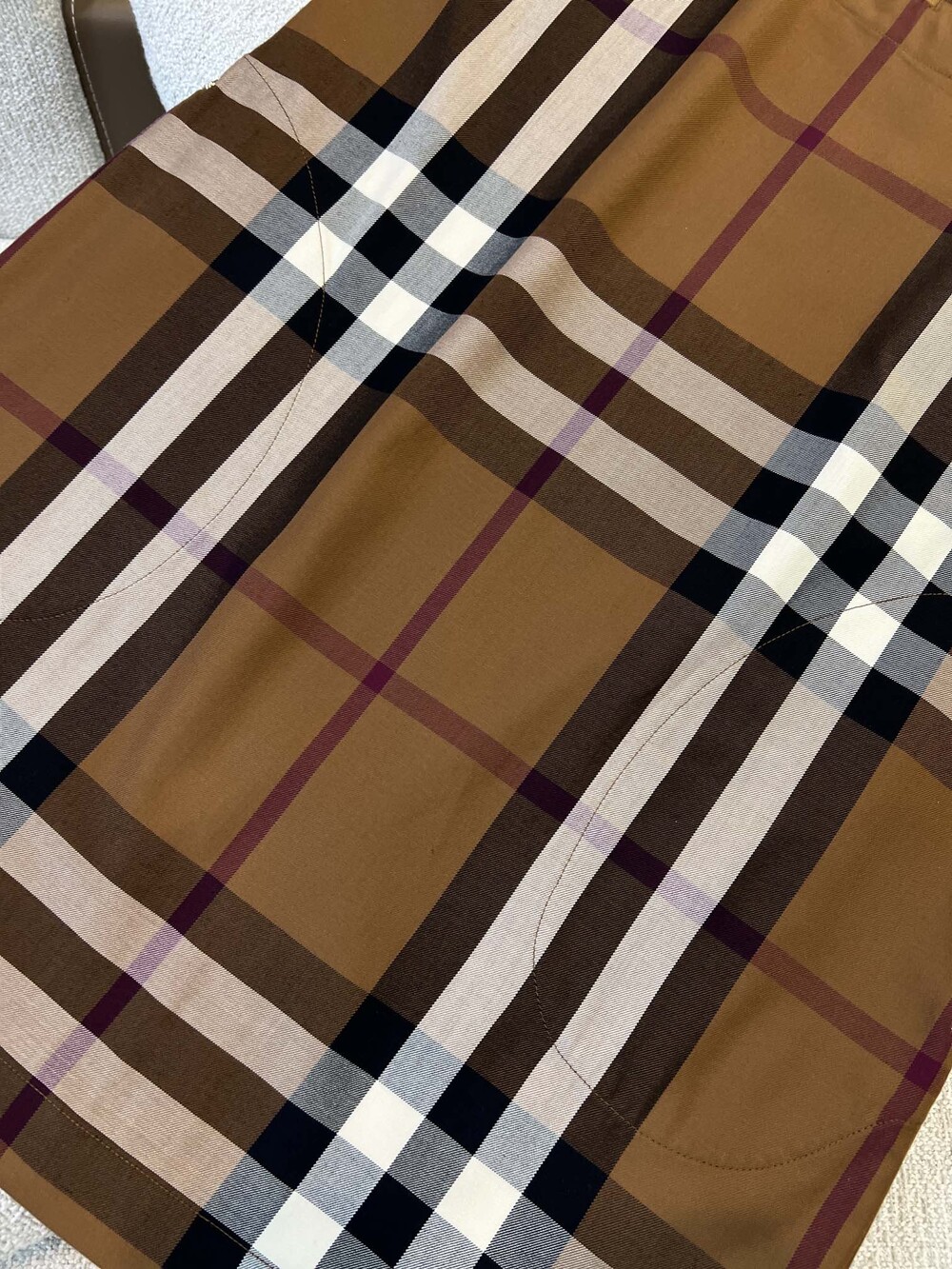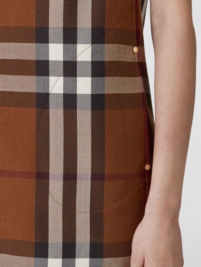 이 브라운 우드 체크 무늬 셔츠 드레스는