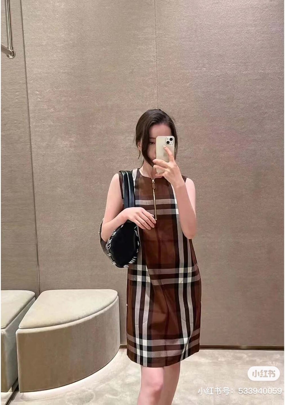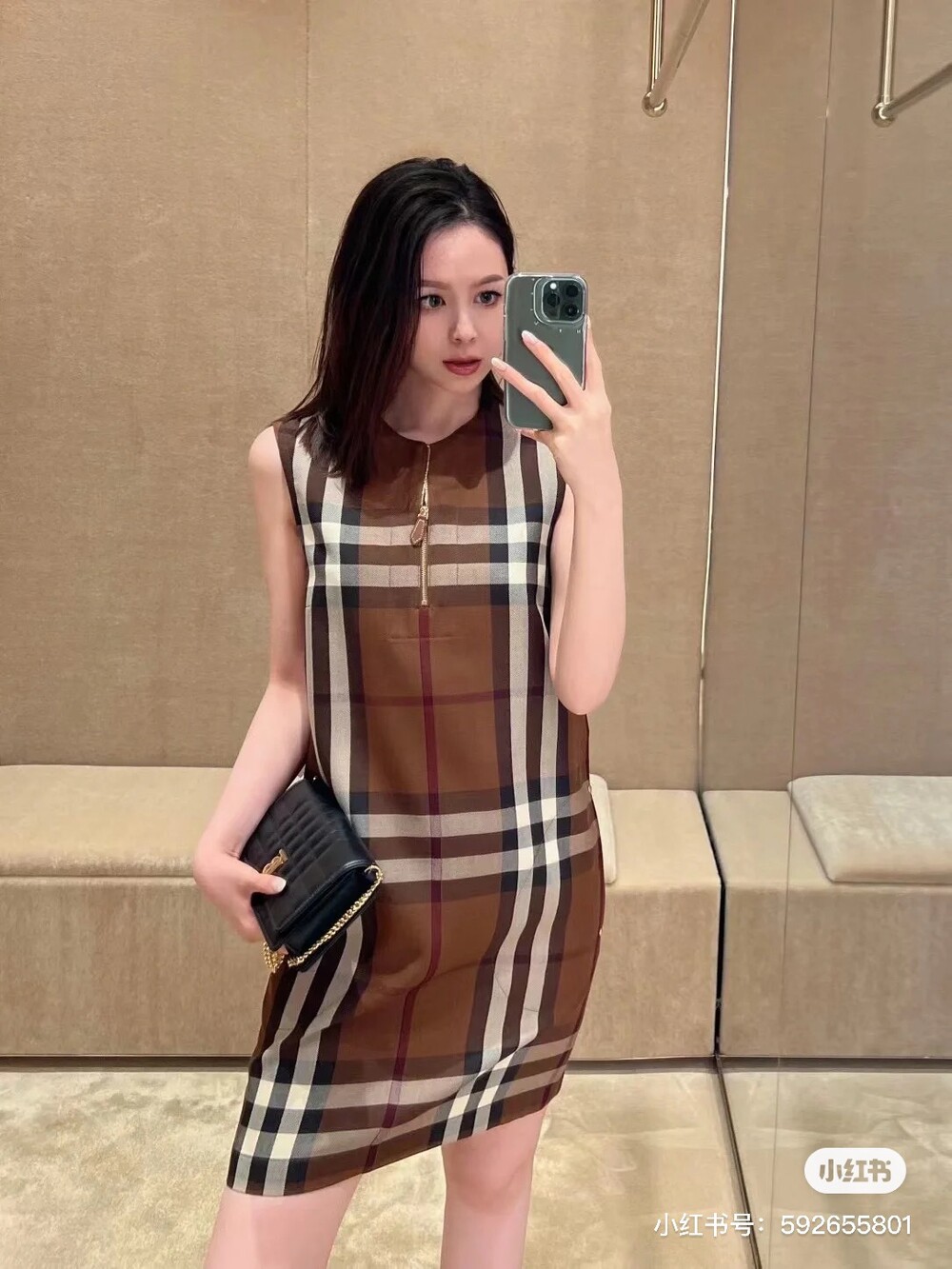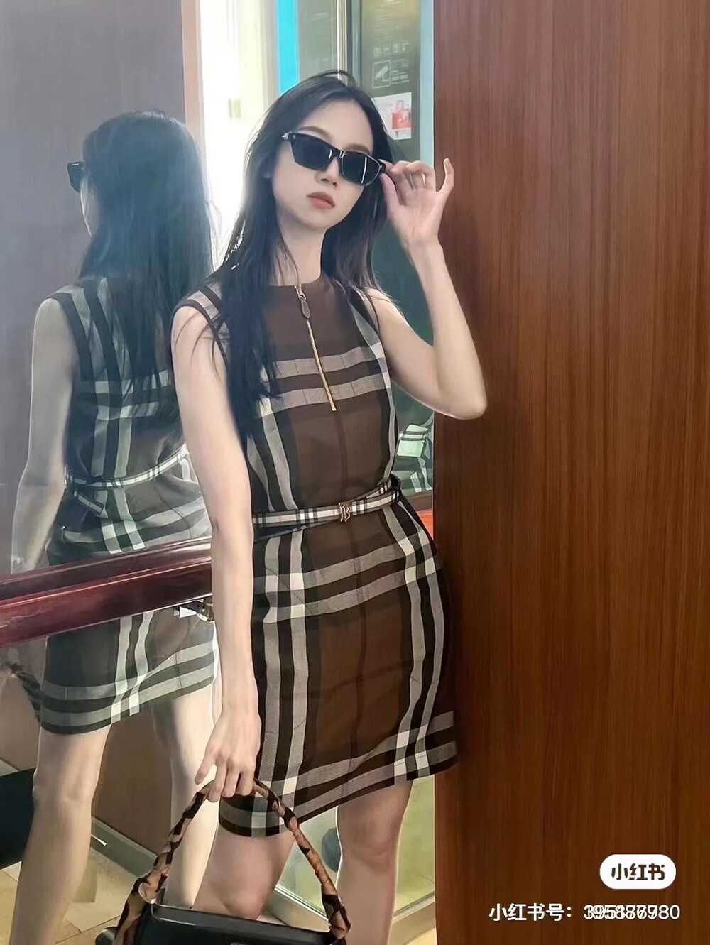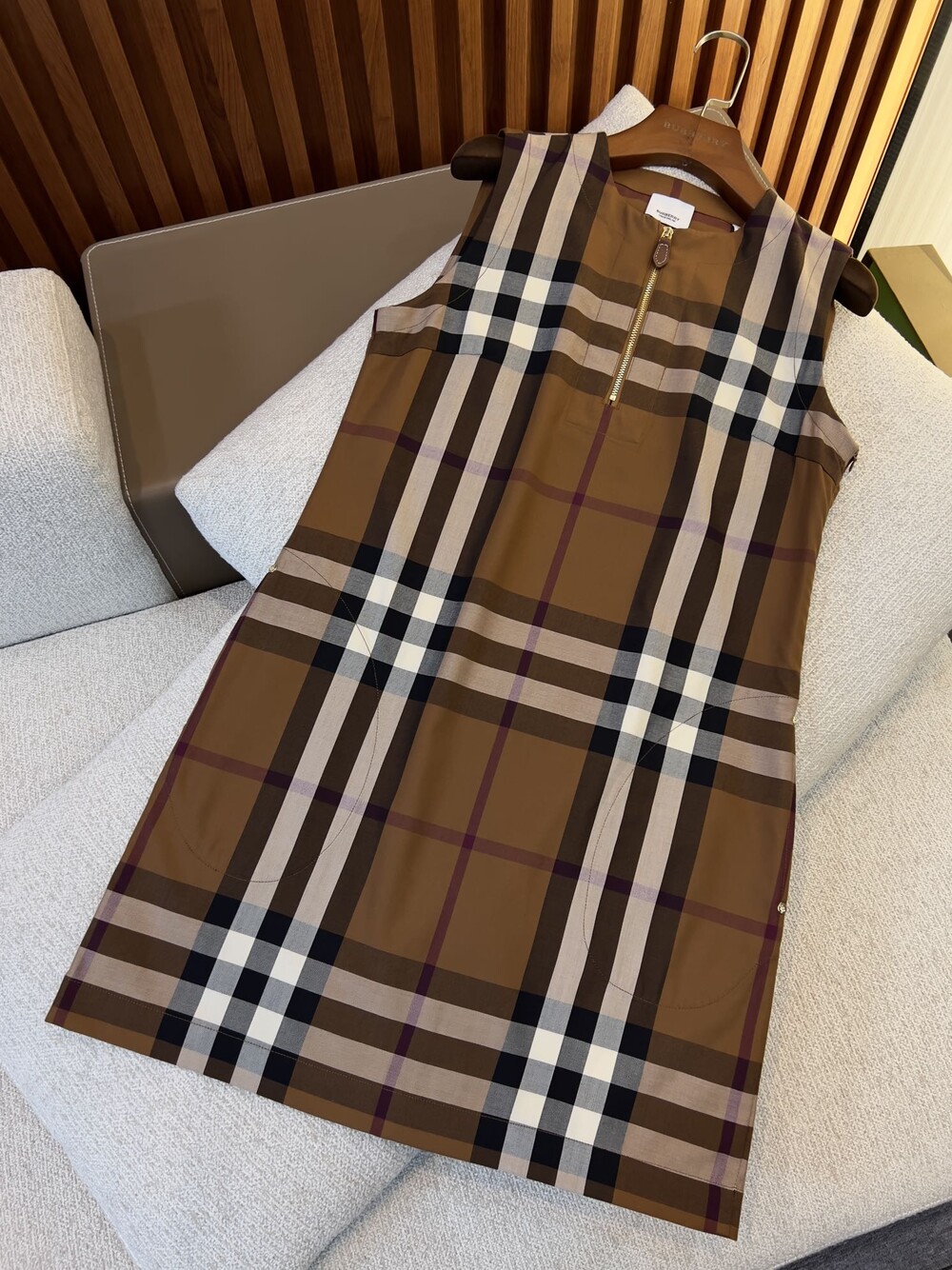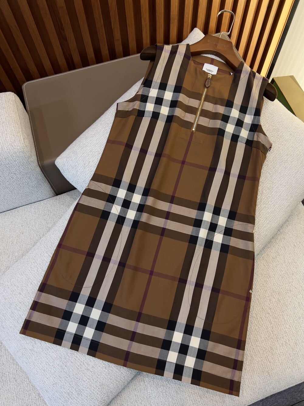 민소매 체크무늬 원피스는