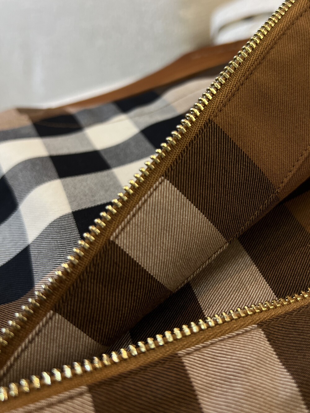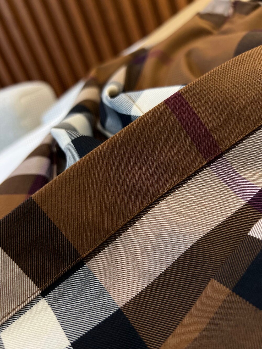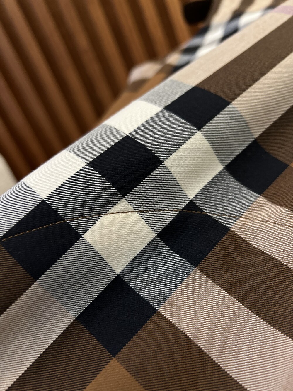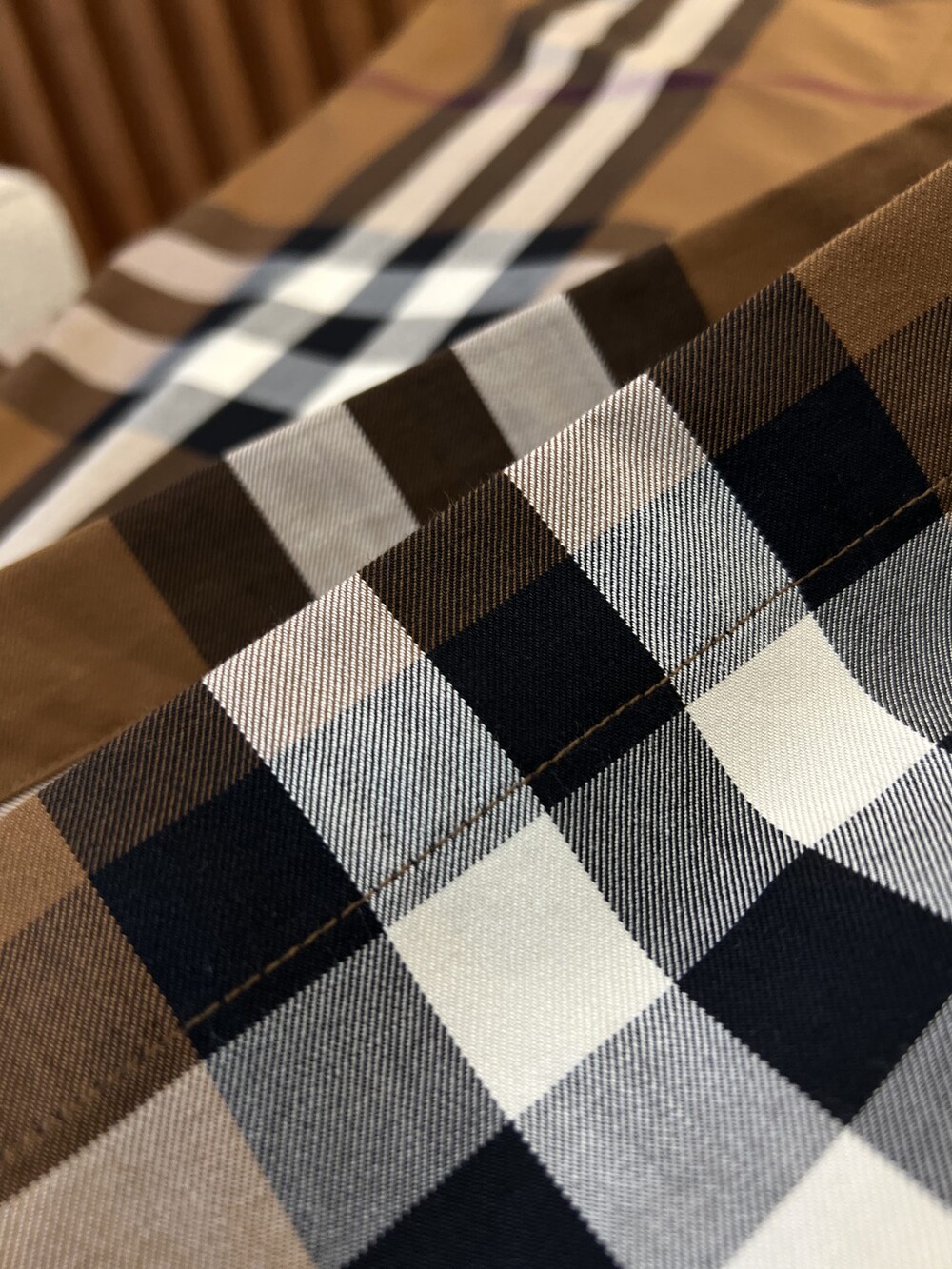 대형 체크 면 원단으로 제작되었으며,