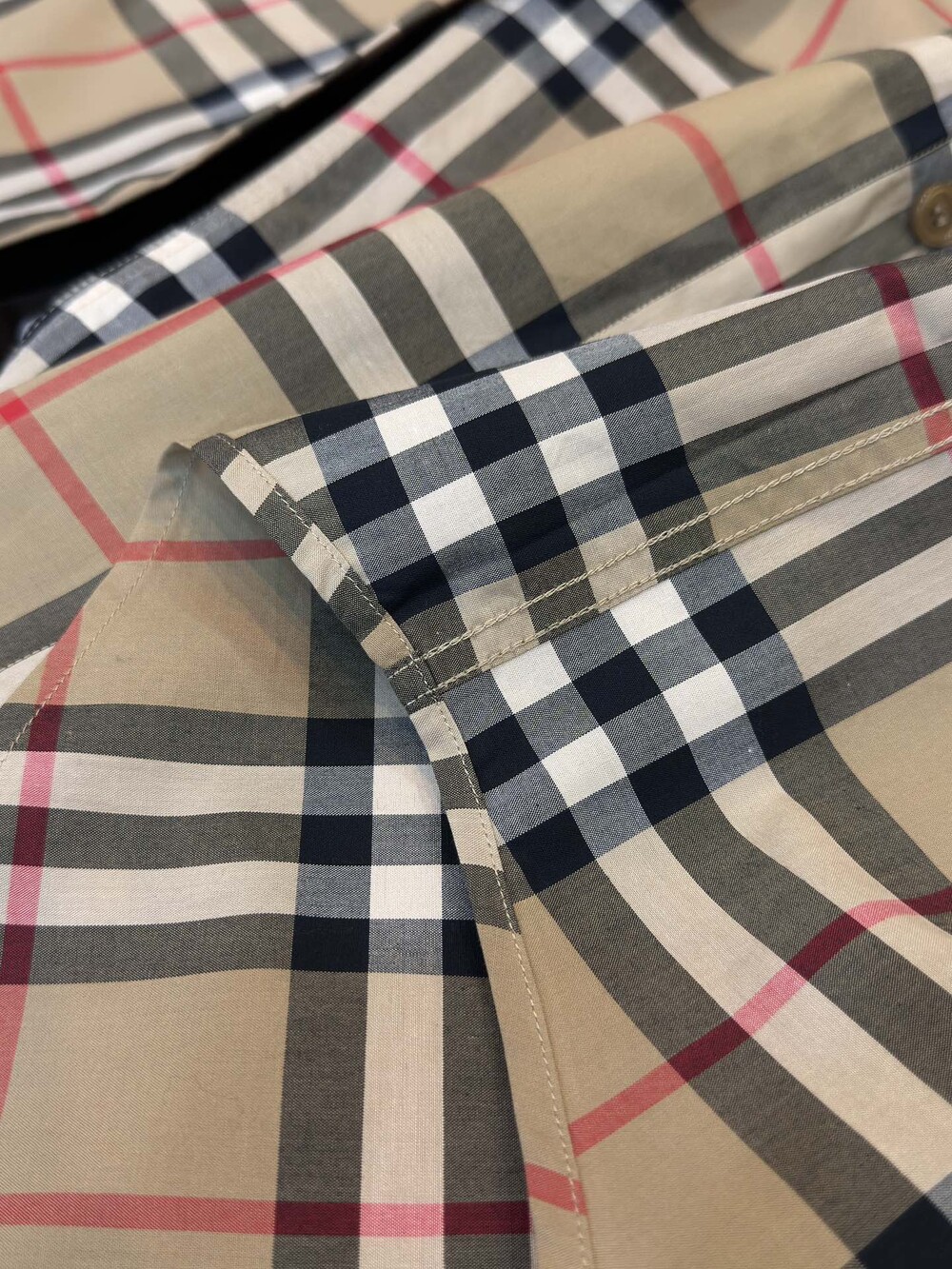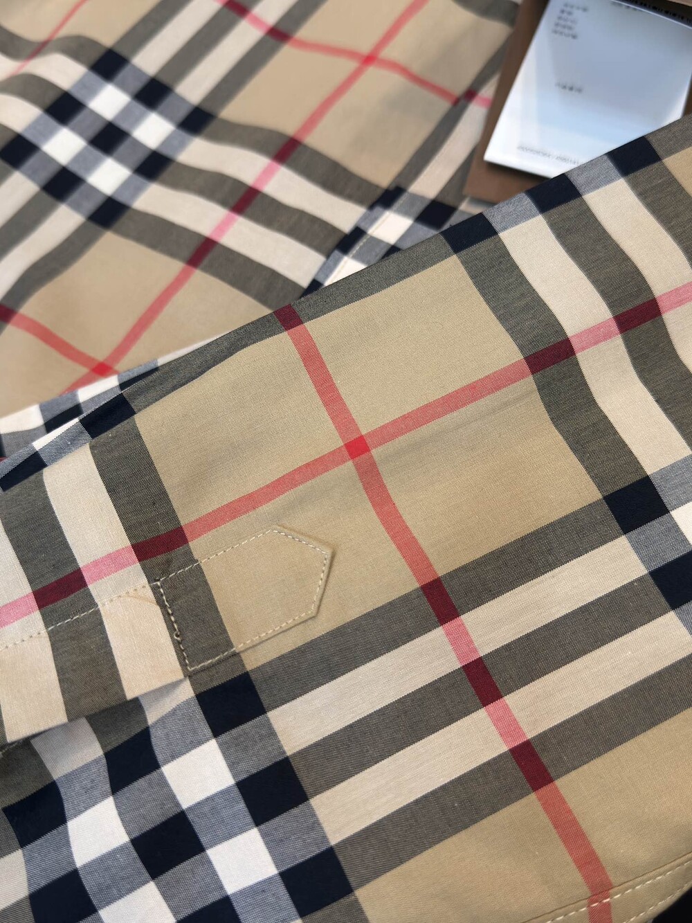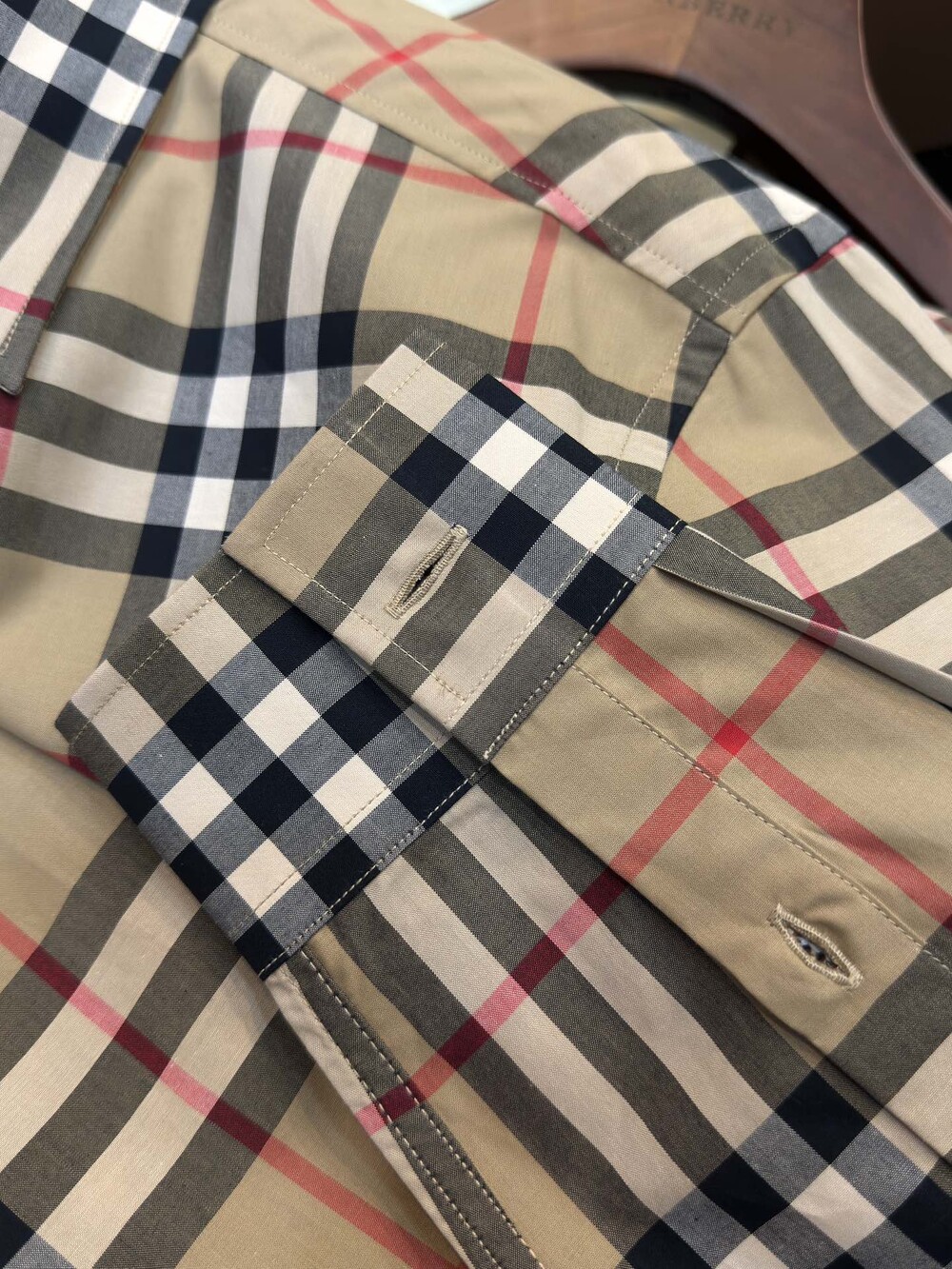 B만의 특허 원단인 빈티지 체크무늬 원단으로
