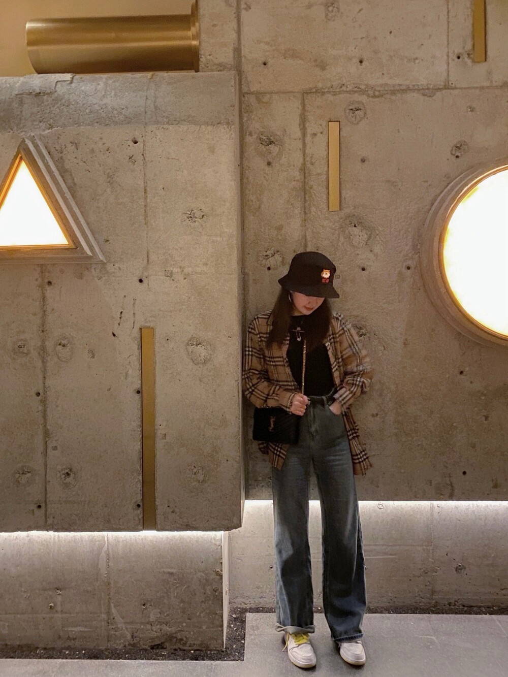 빈티지 체크 코튼 블랙 버튼 시리즈,