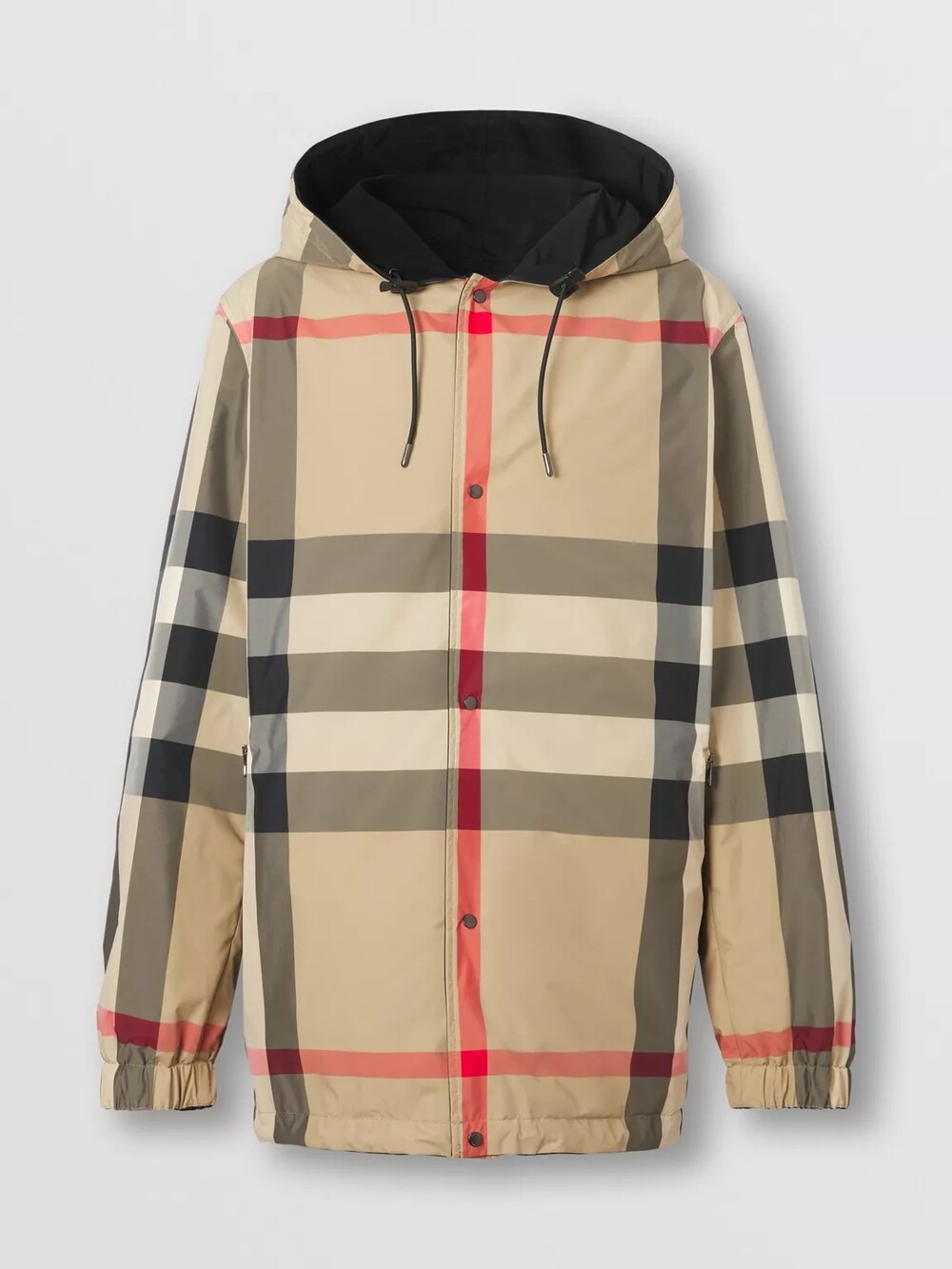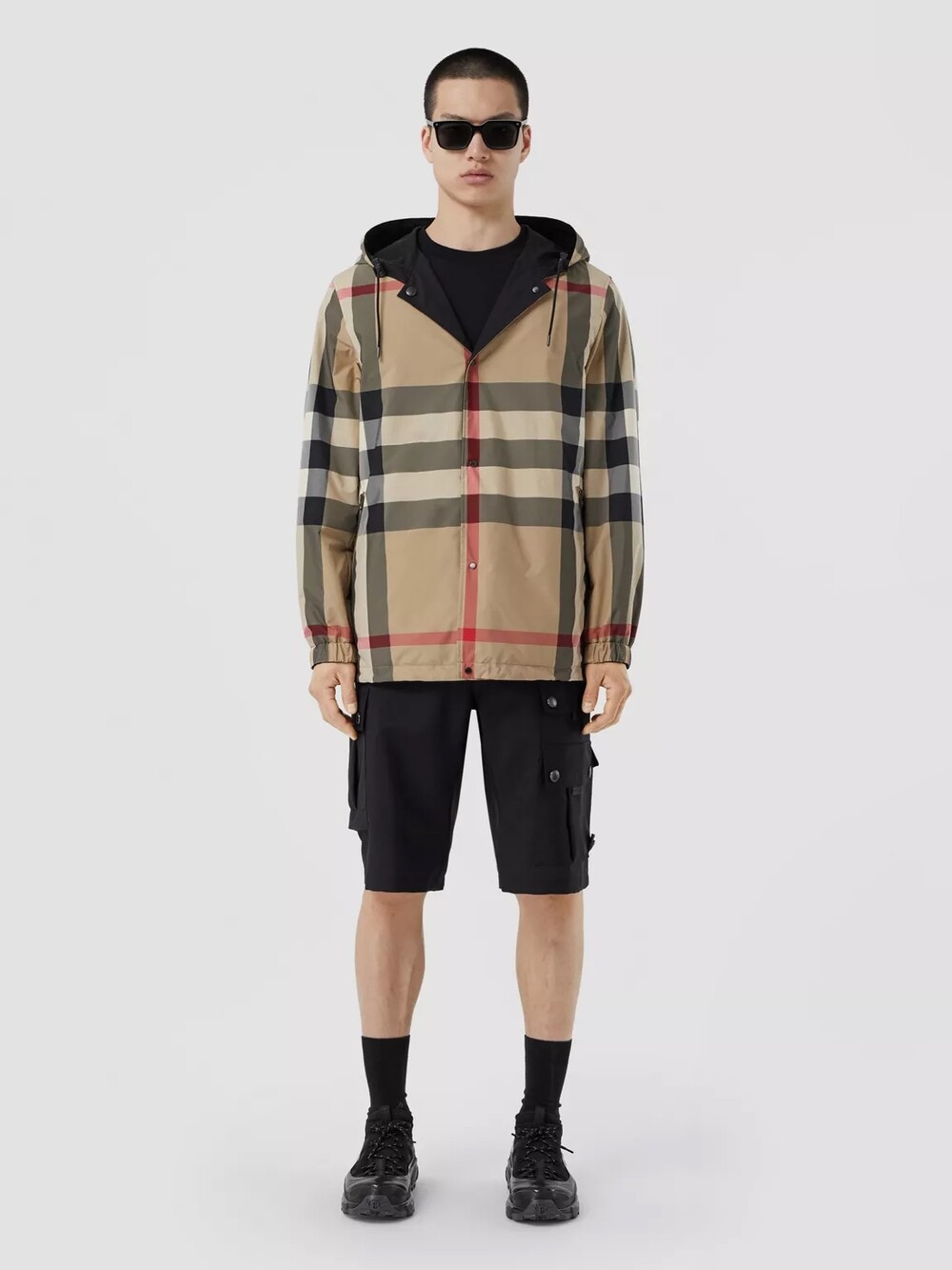 플레드 디자인이 들어간 가벼운 후드 재킷인데,