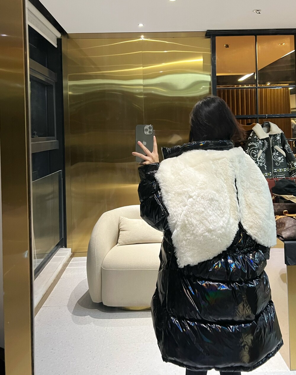 □시어링 퍼 구스다운 패딩 코트□