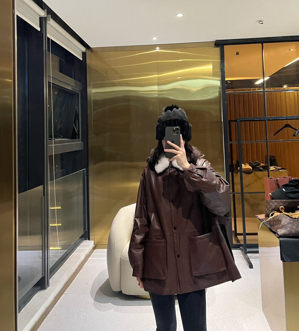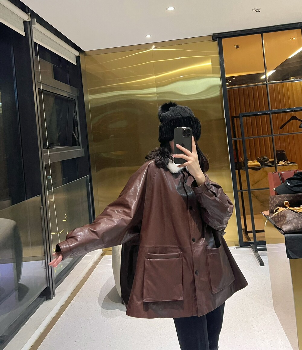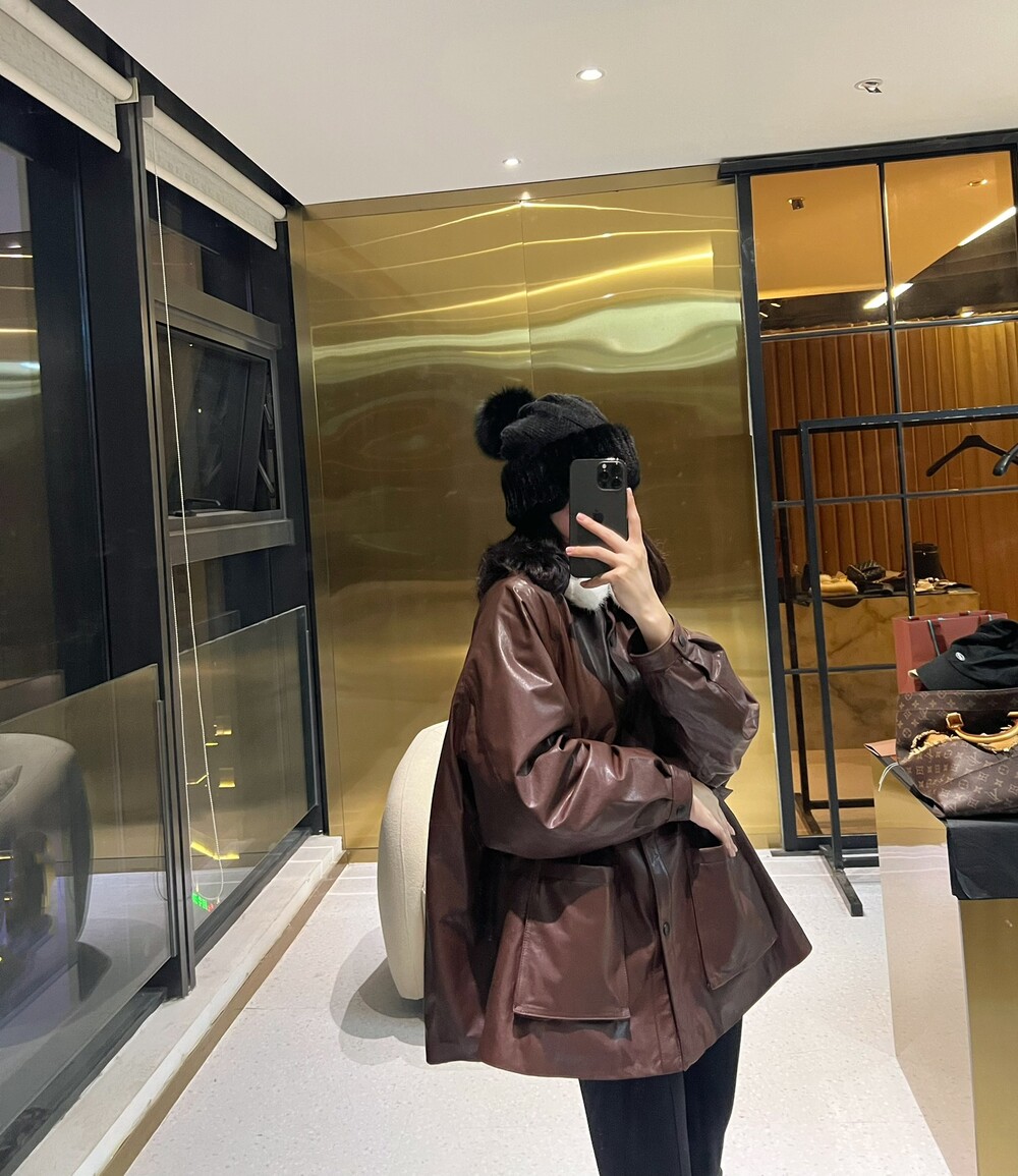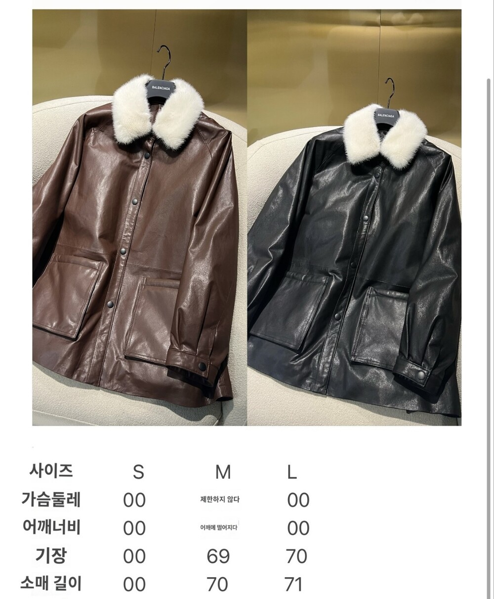 □밍크 넥 가죽 패디드 다운 자켓□