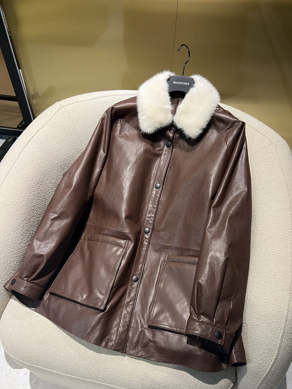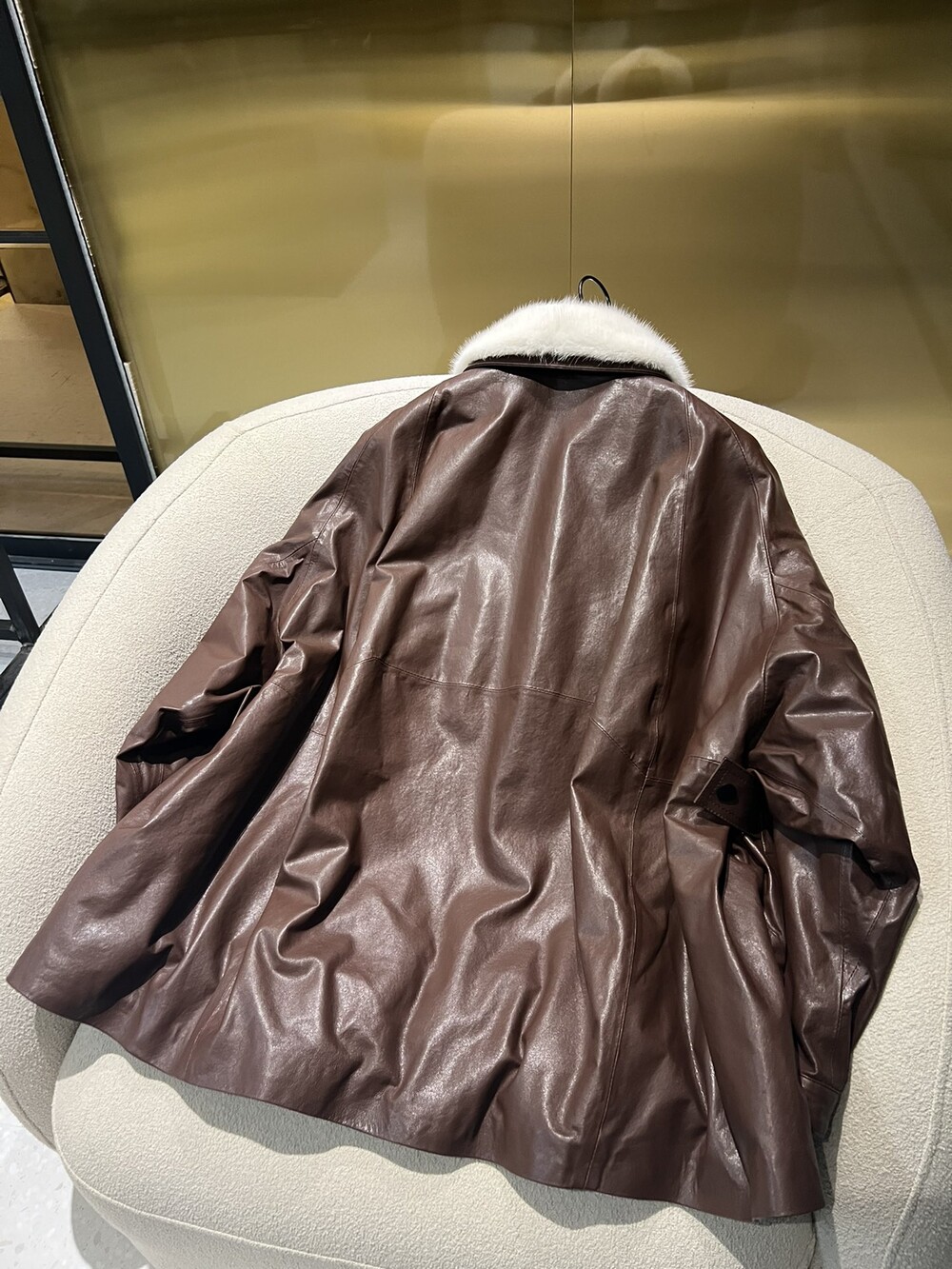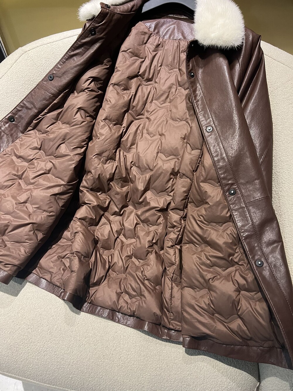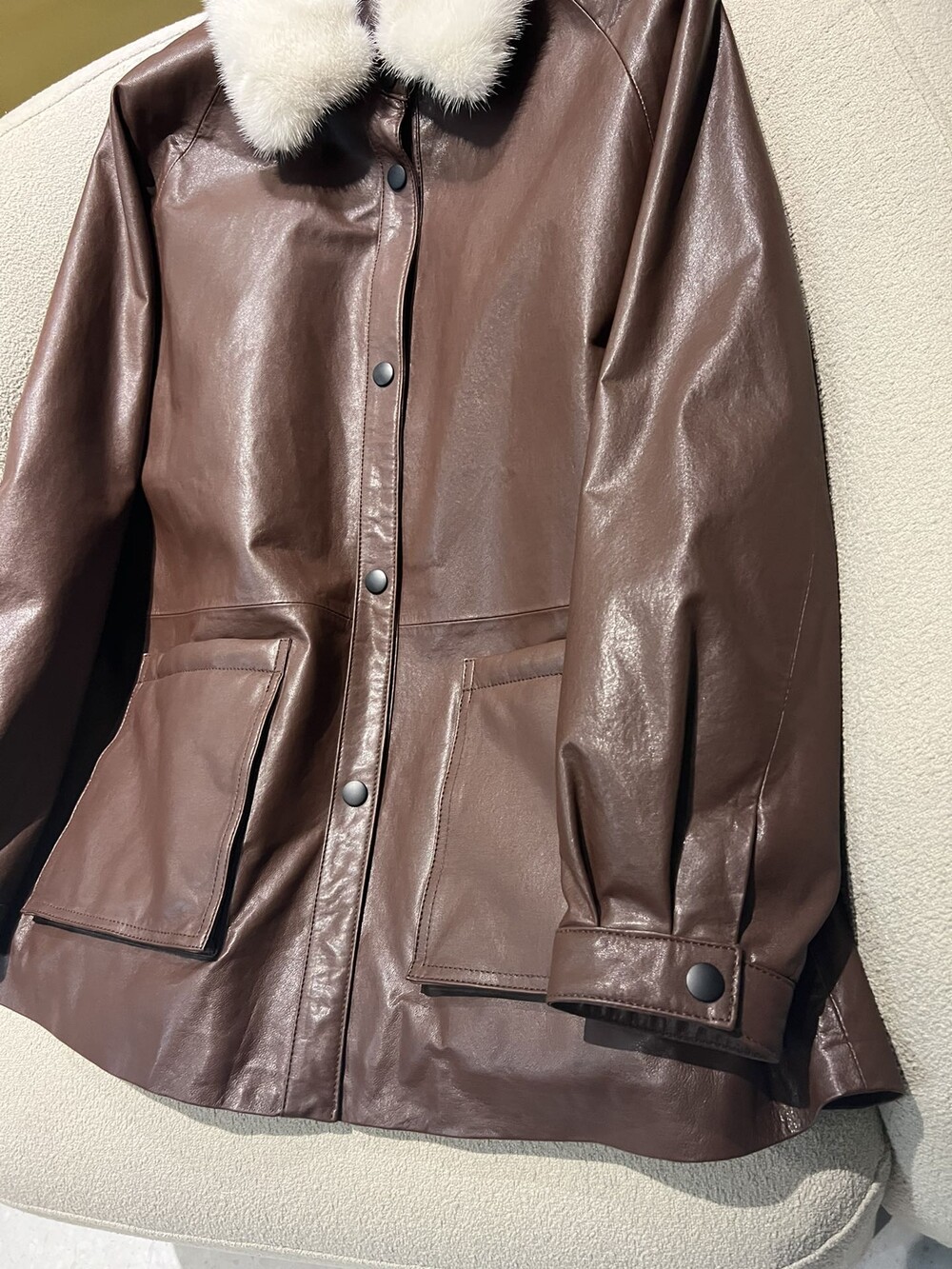 □밍크 넥 가죽 패디드 다운 자켓□