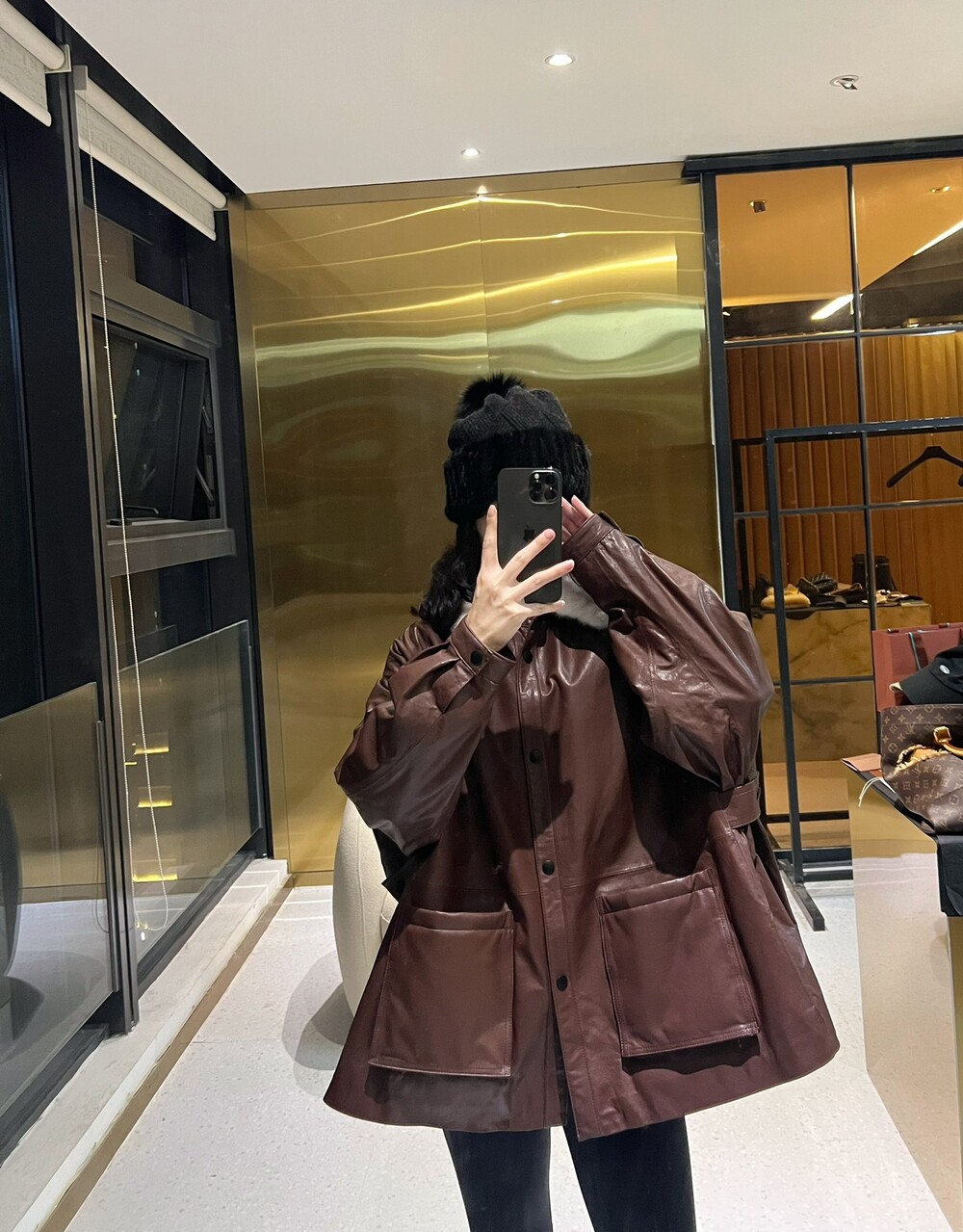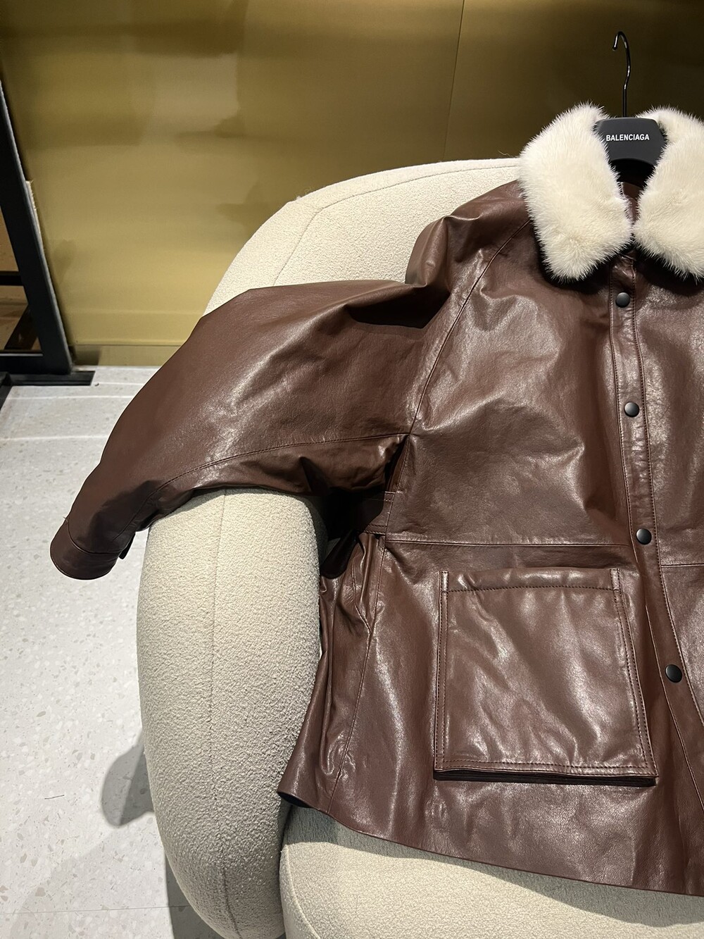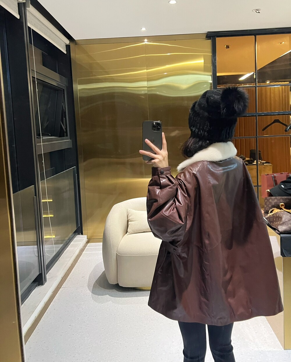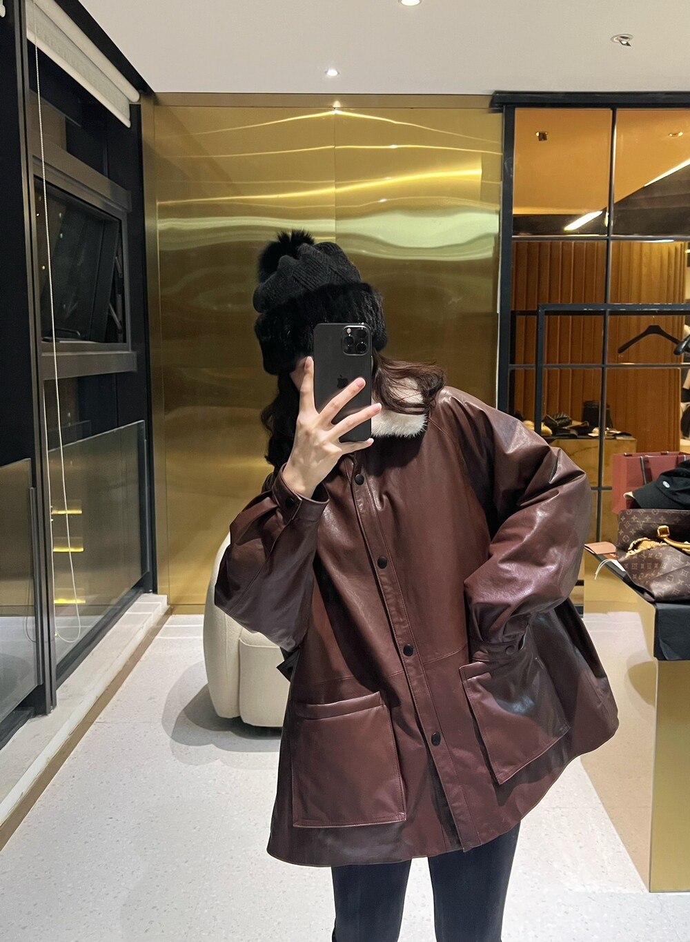 □밍크 넥 가죽 패디드 다운 자켓□