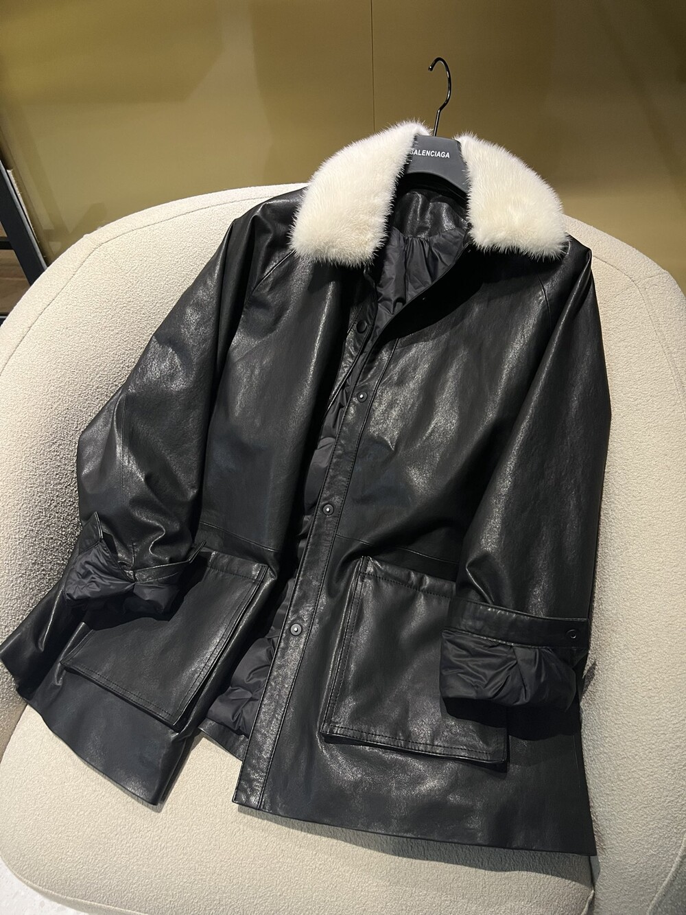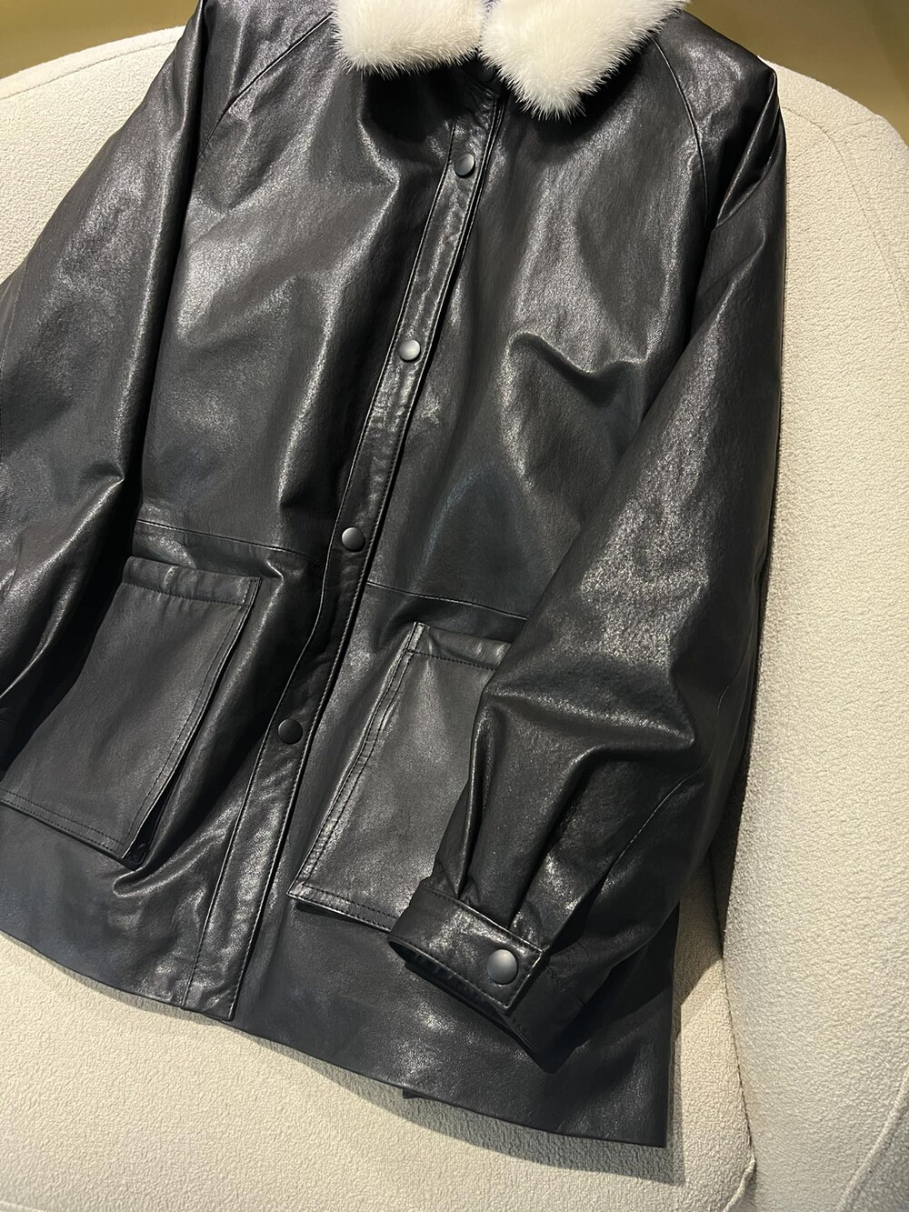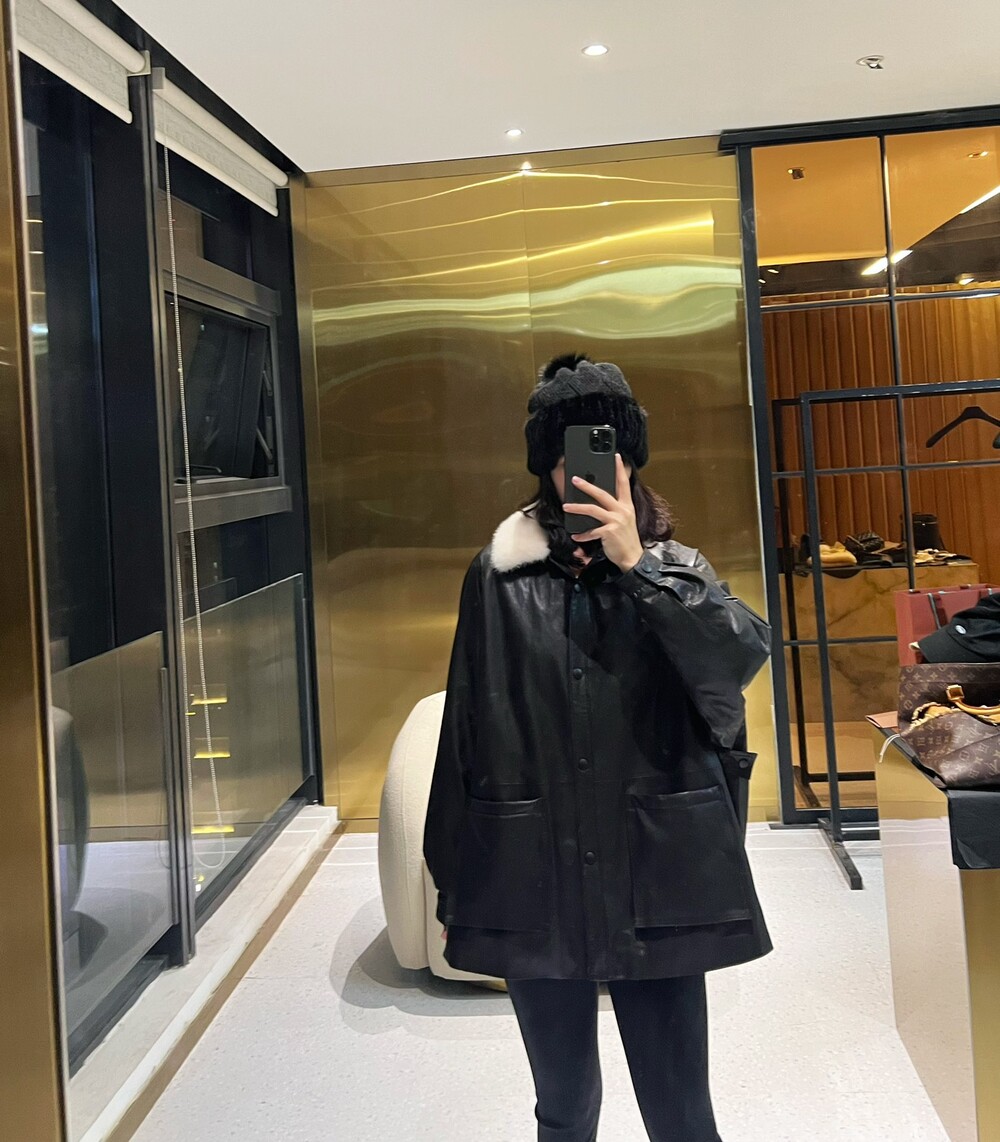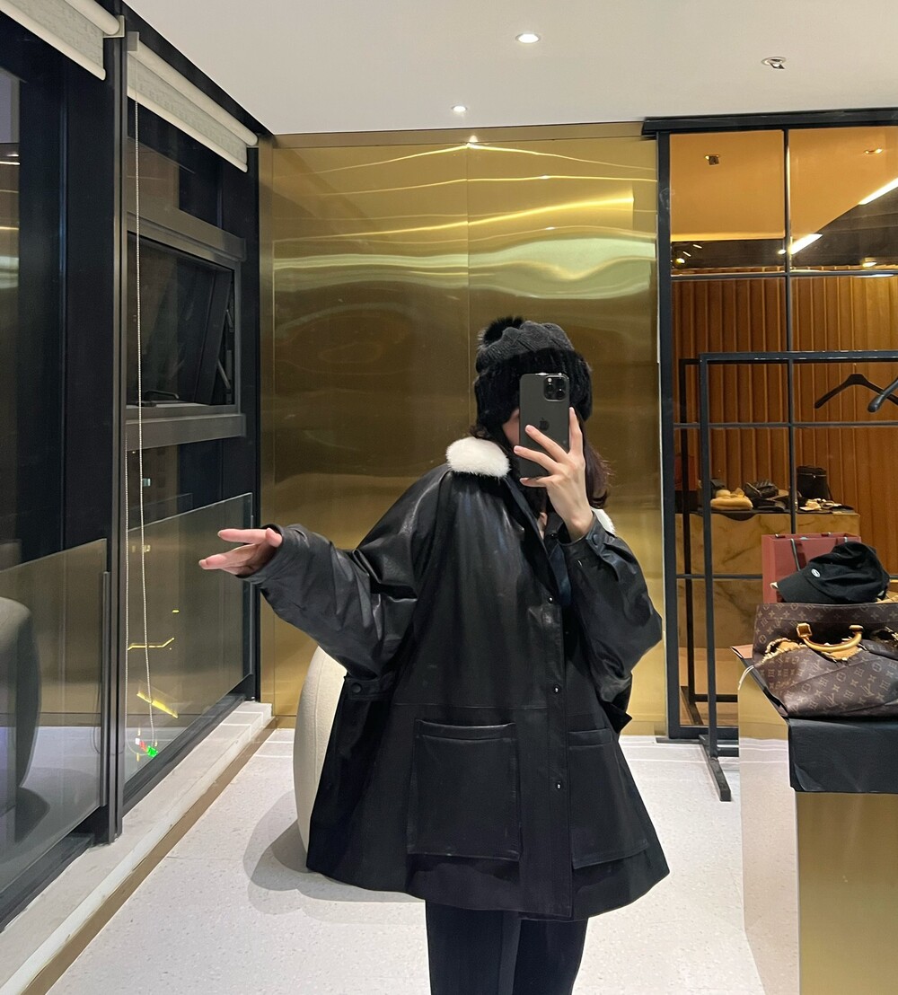 □밍크 넥 가죽 패디드 다운 자켓□