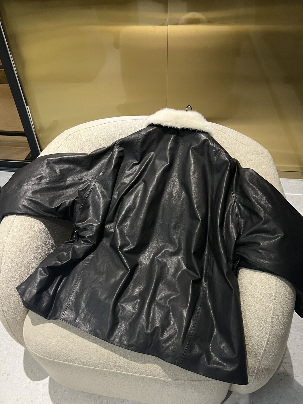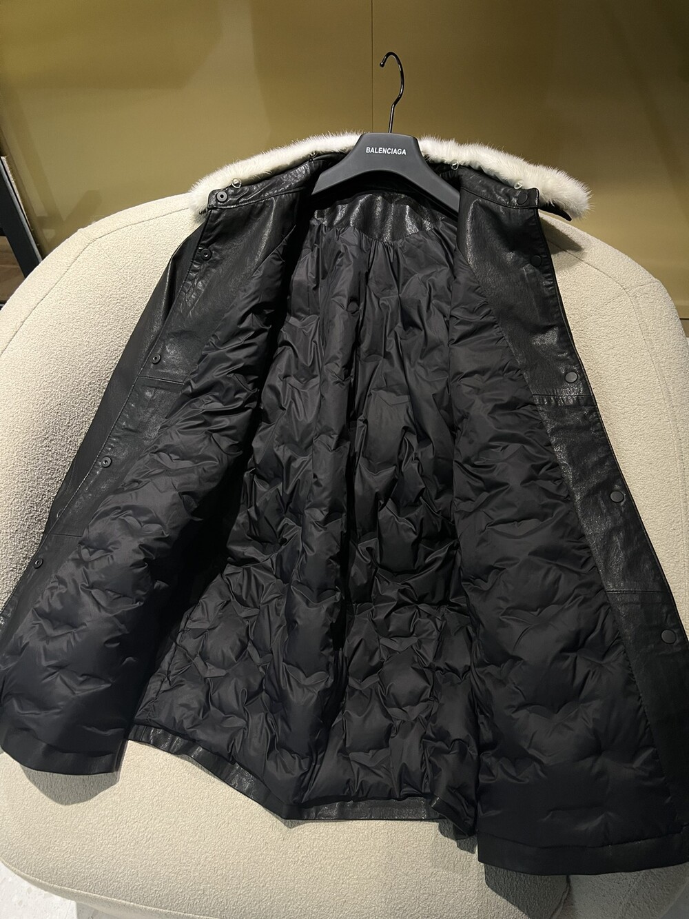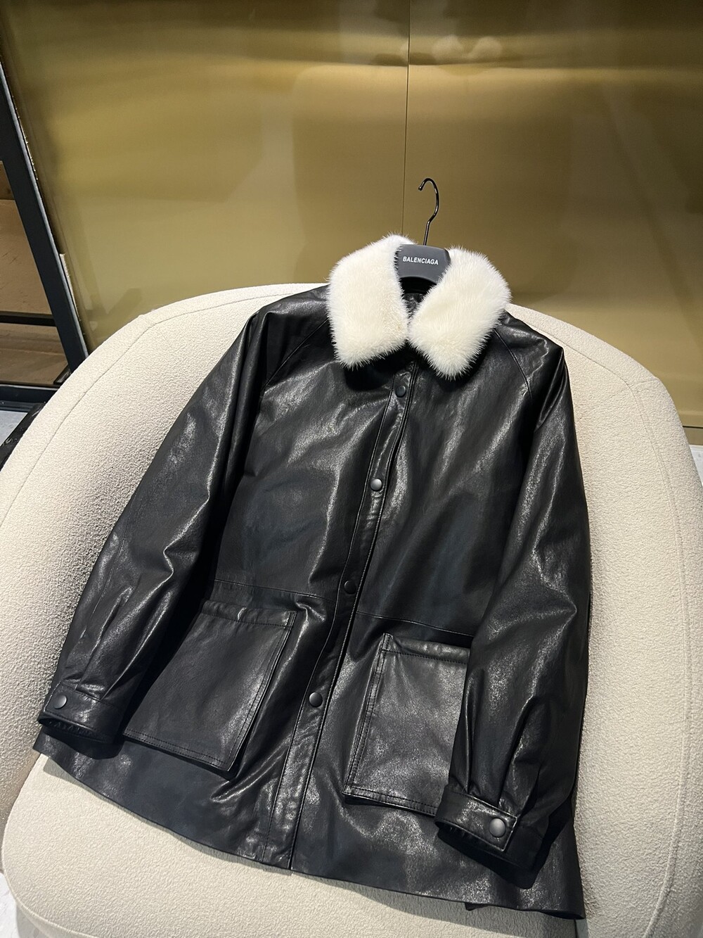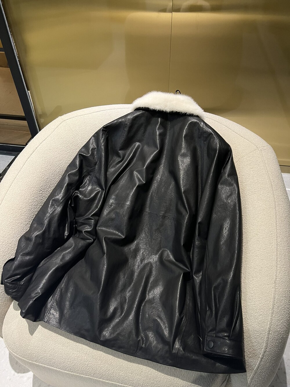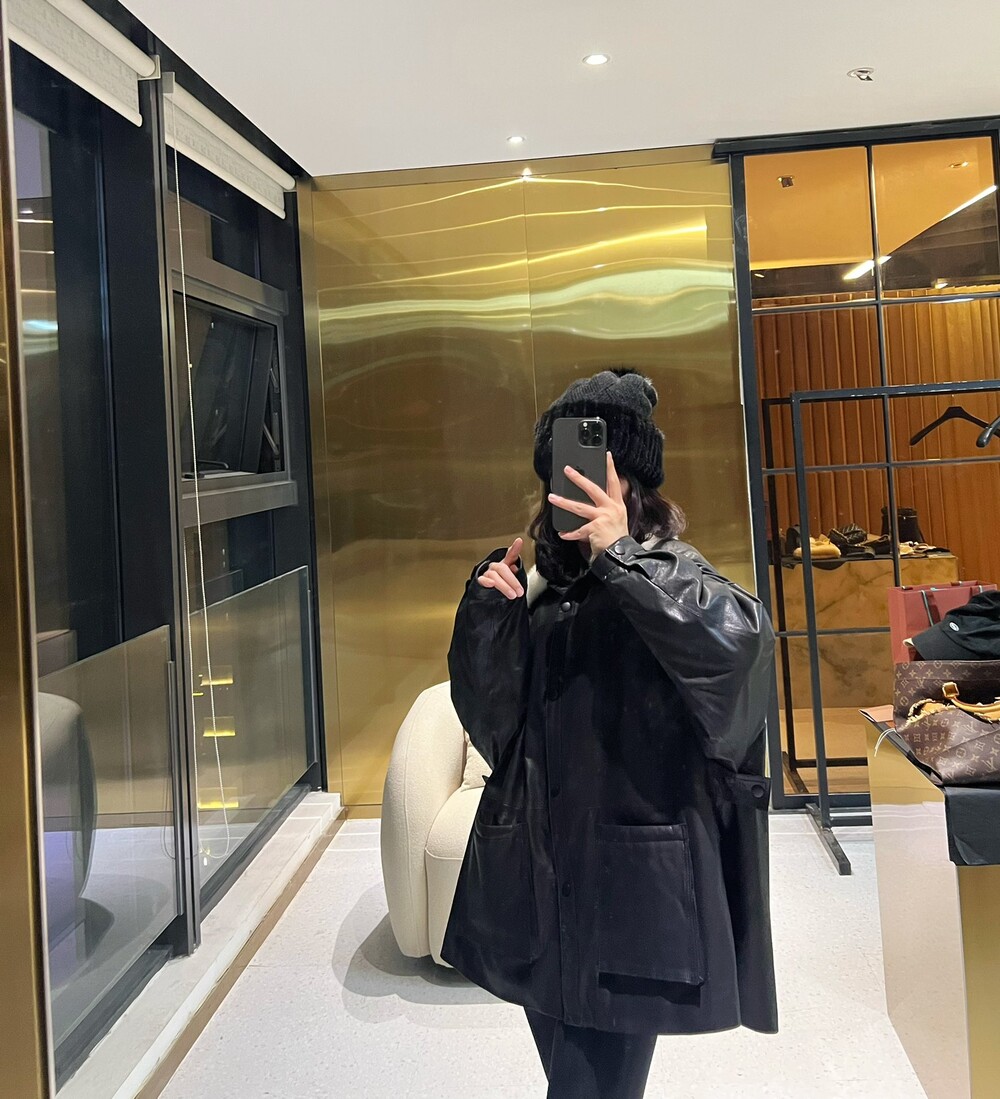 □밍크 넥 가죽 패디드 다운 자켓□