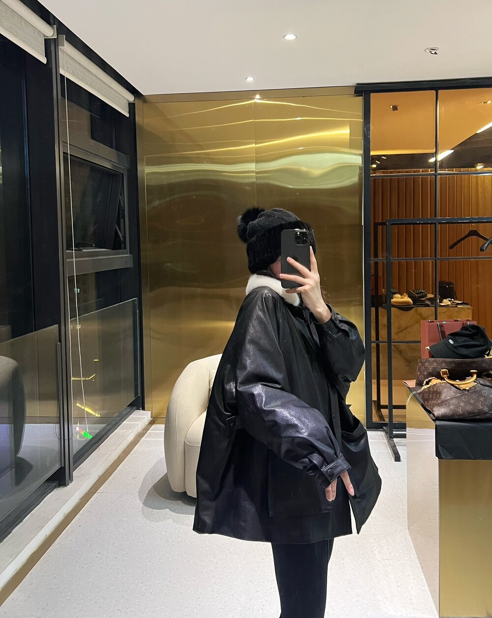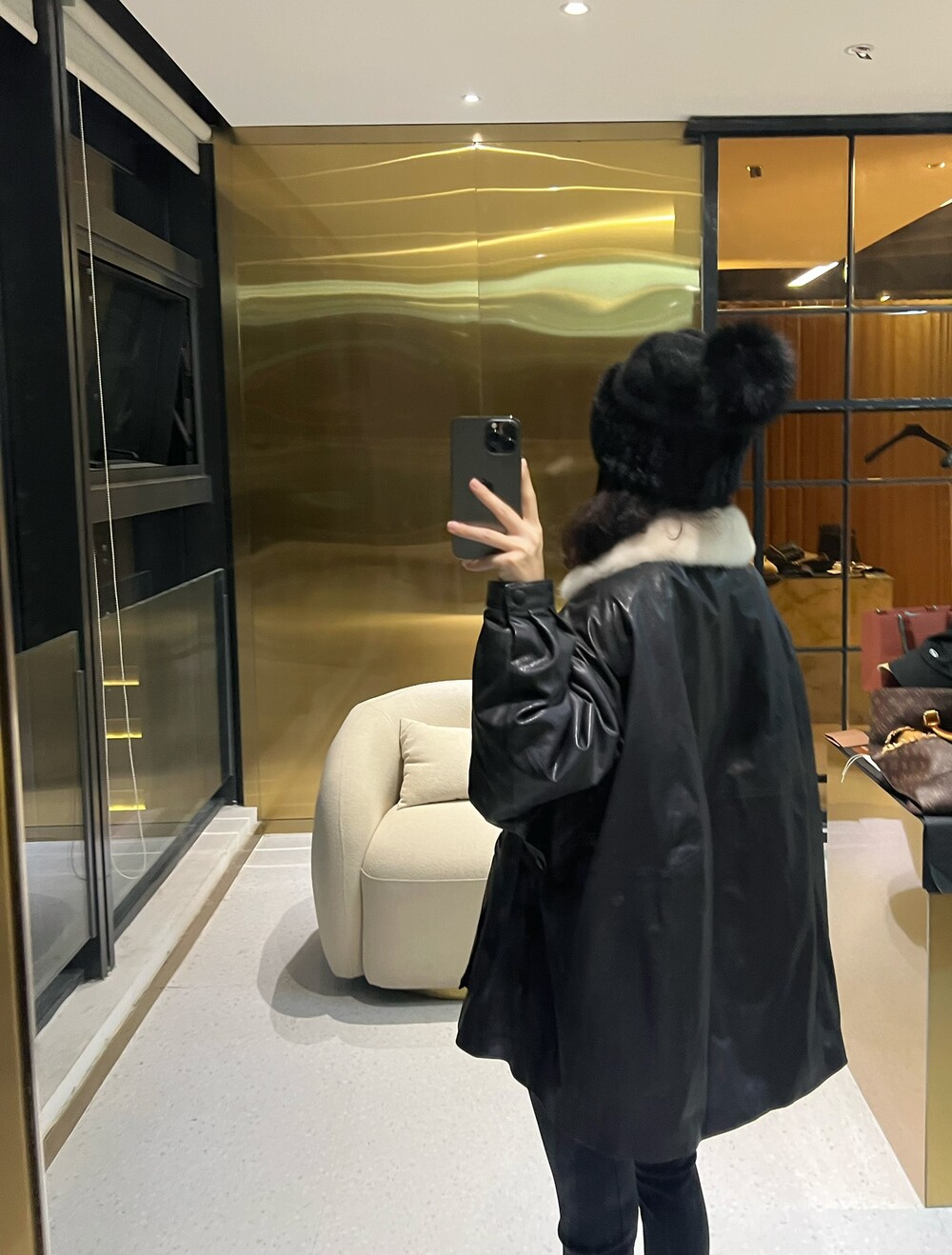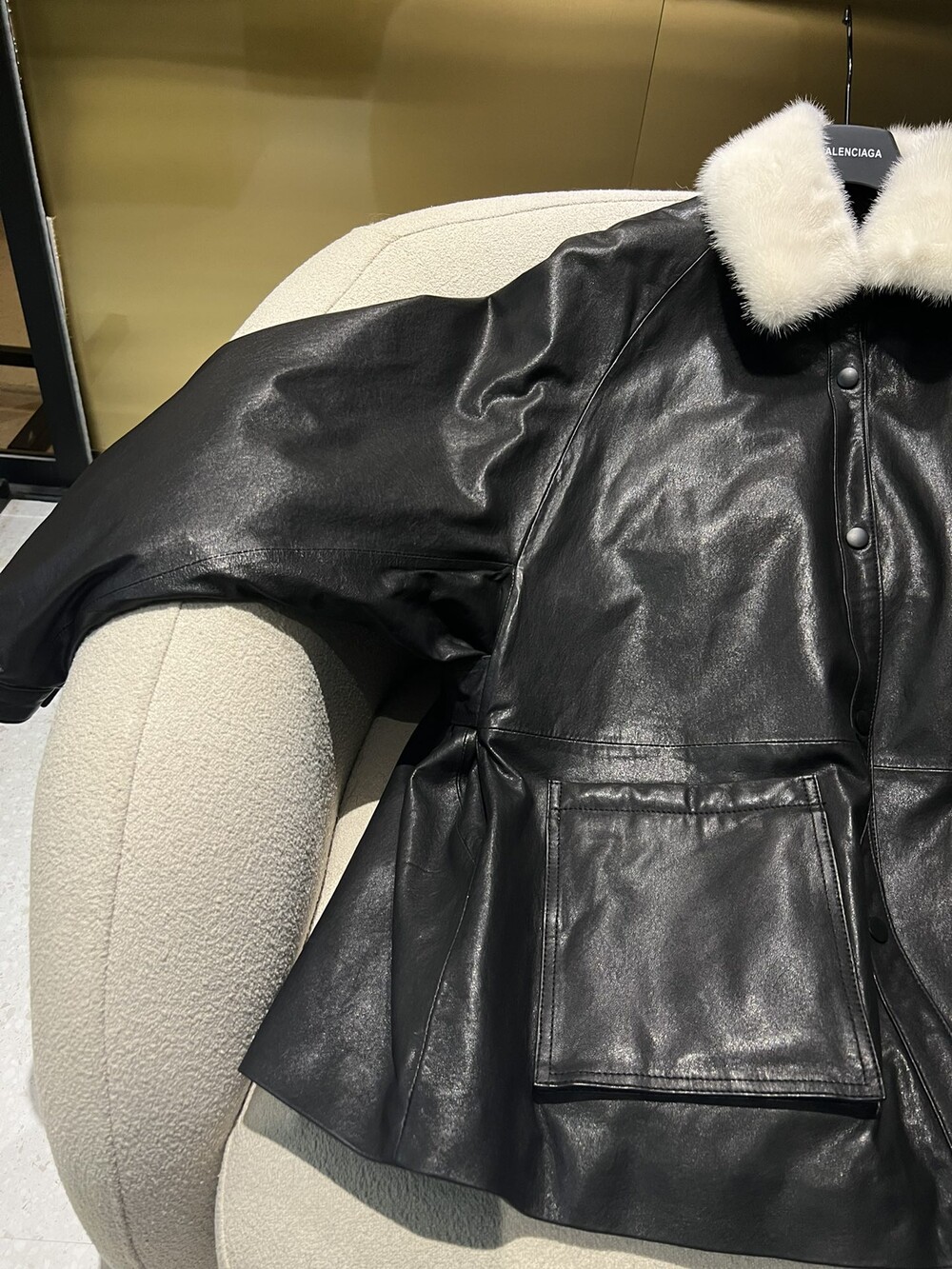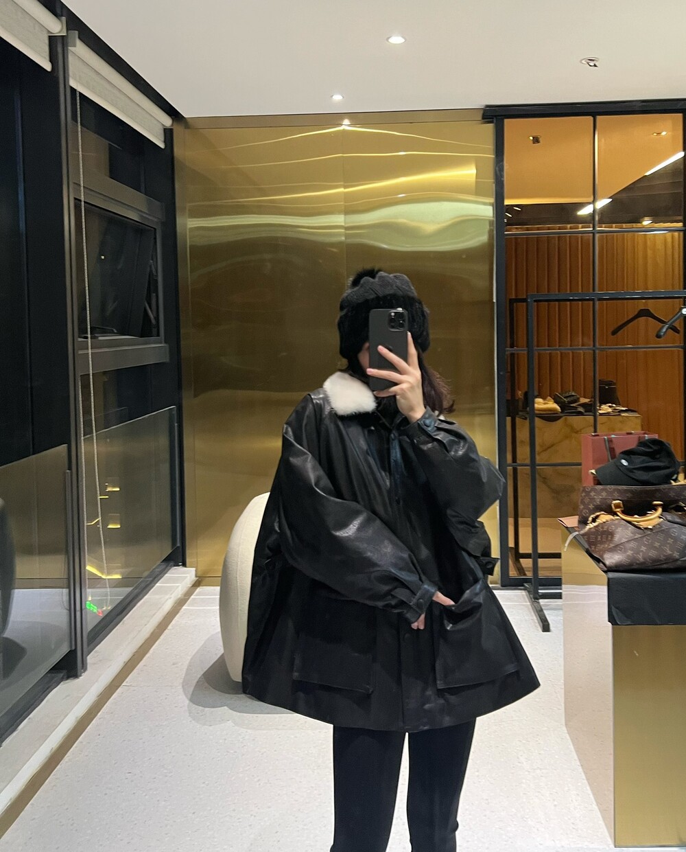 □밍크 넥 가죽 패디드 다운 자켓□