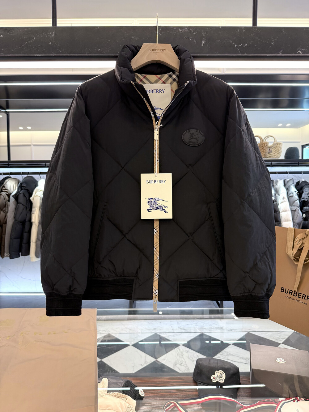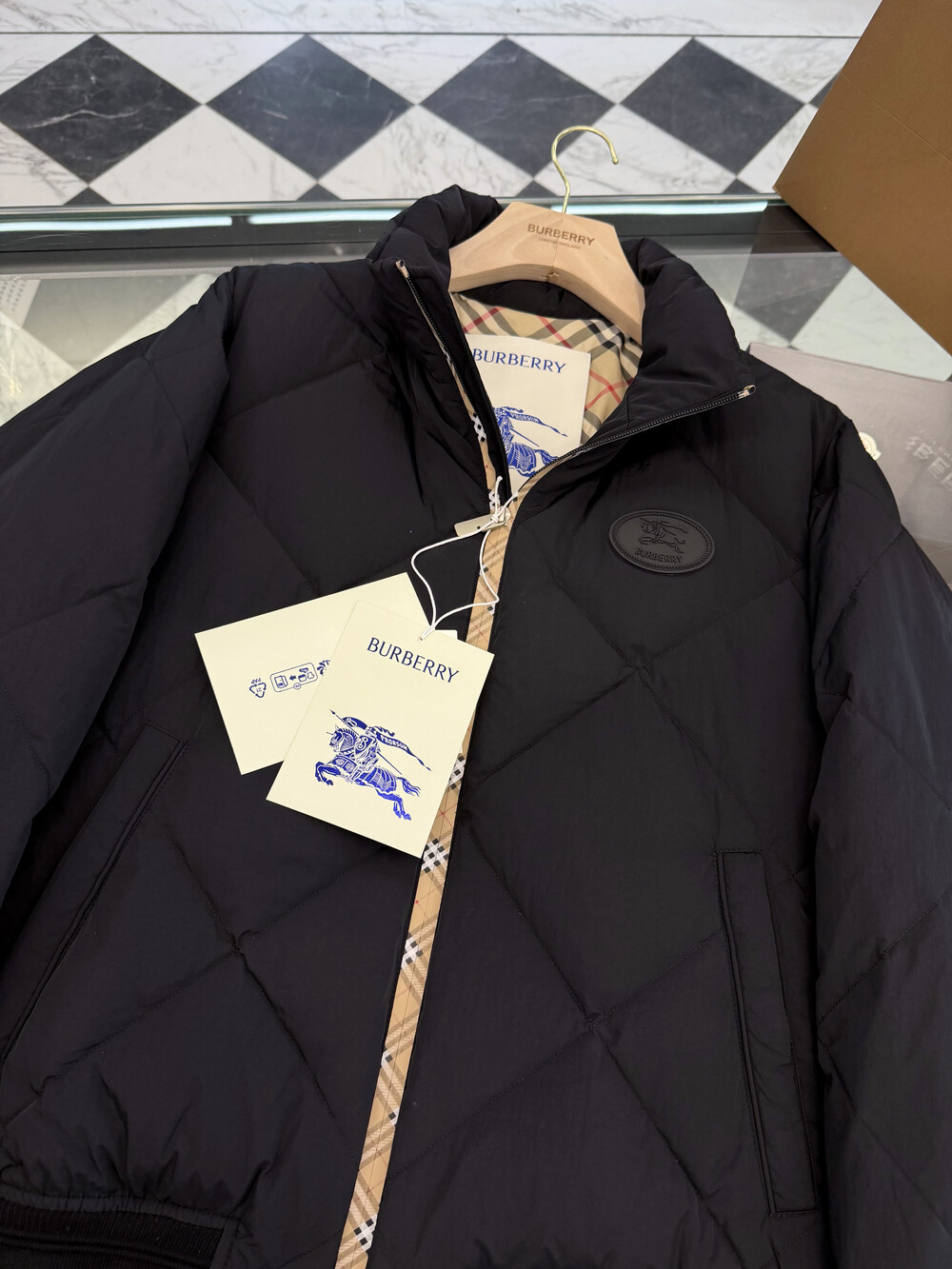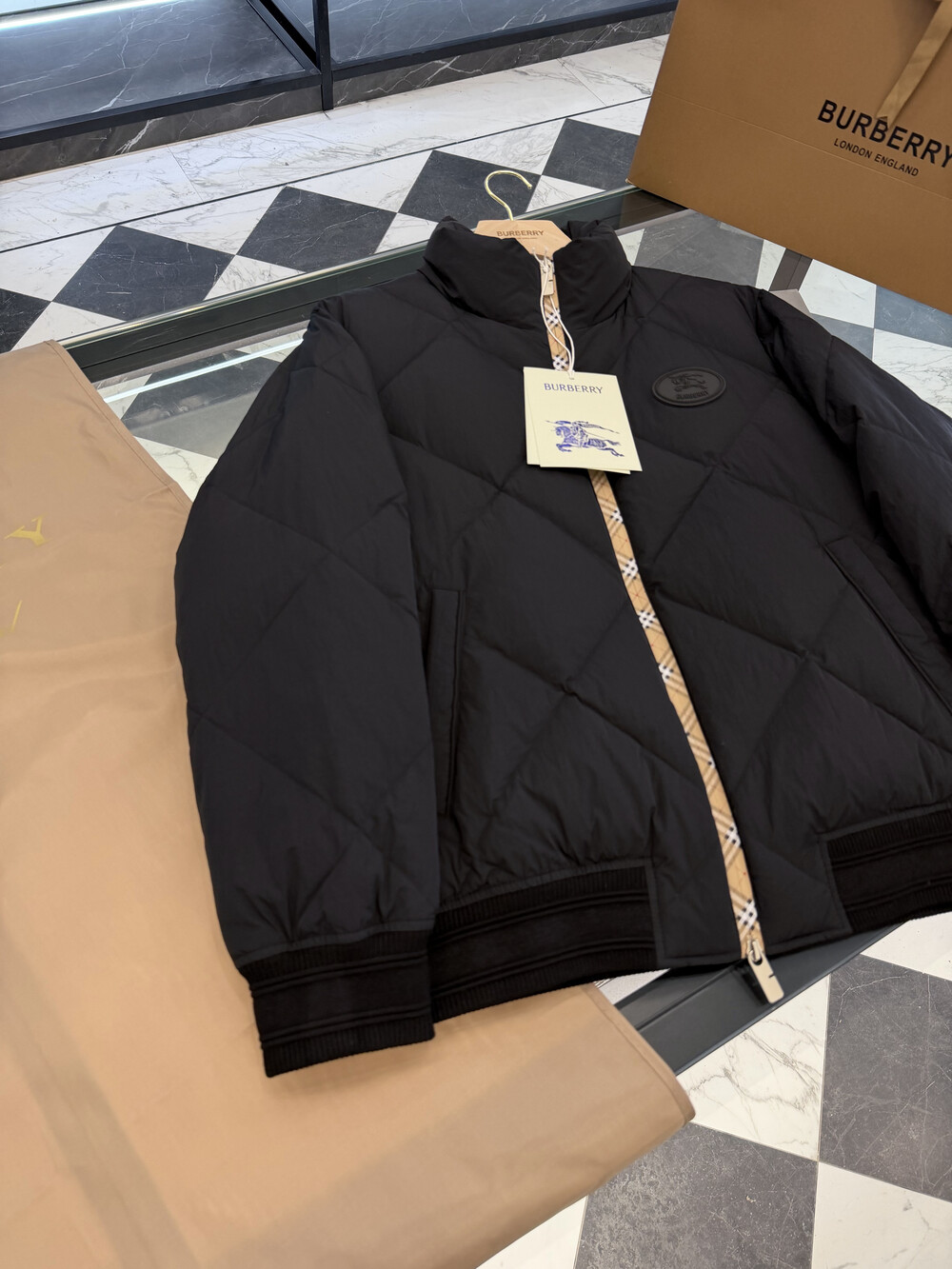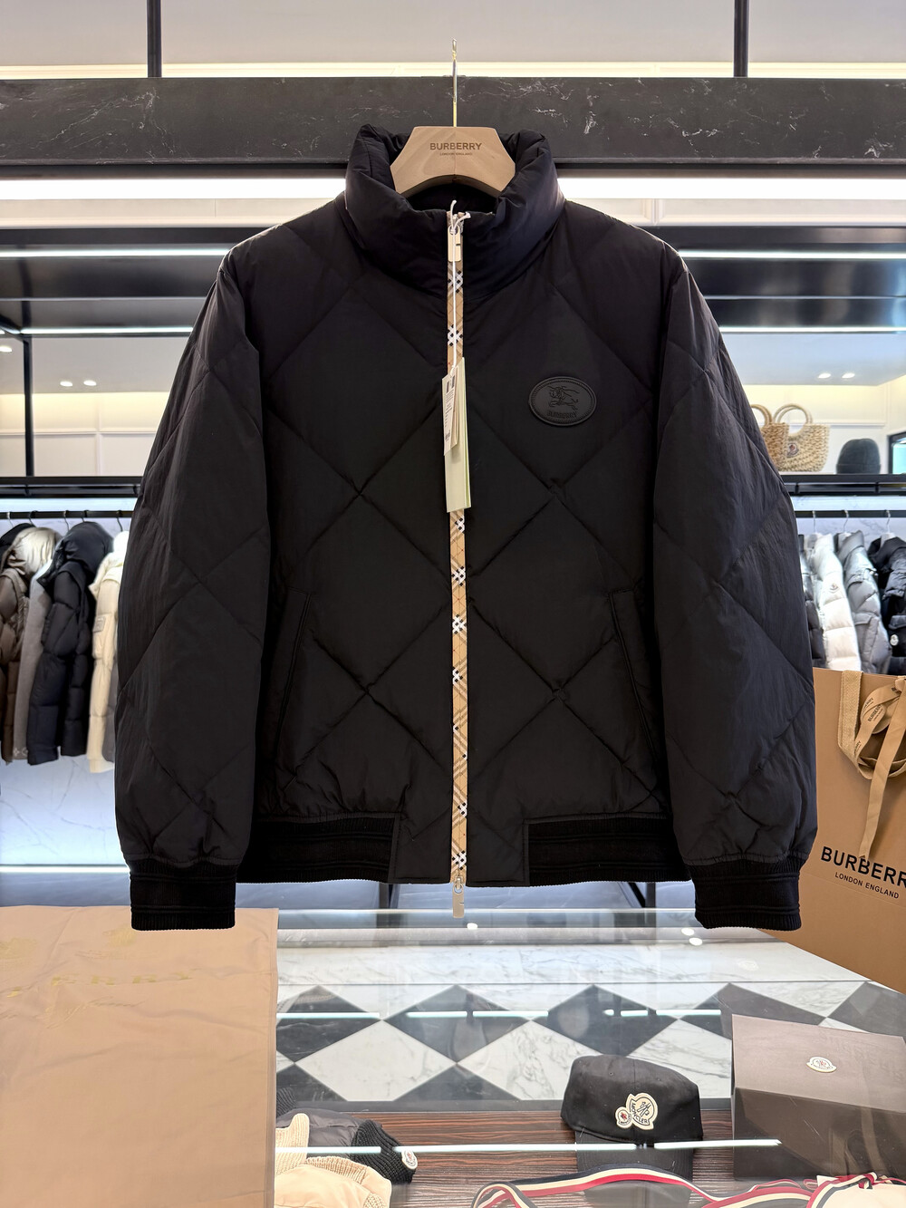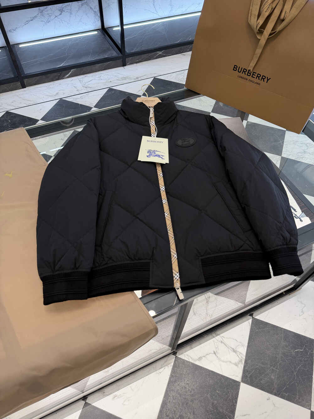 체크 패턴 다운 재킷