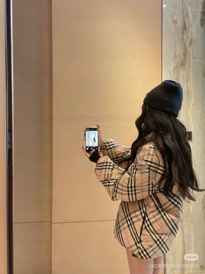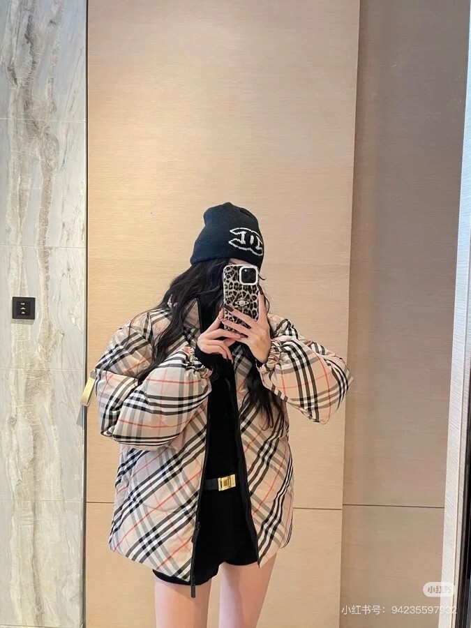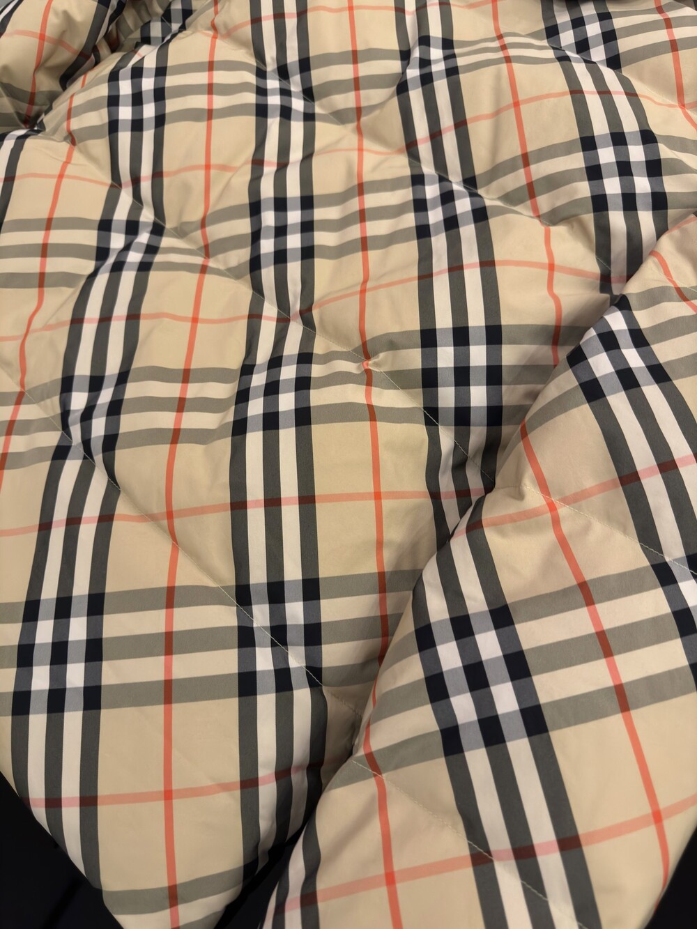 한쪽 면은 𝐁𝐔𝐑𝐁𝐄𝐑𝐑𝐘 체크 패턴,