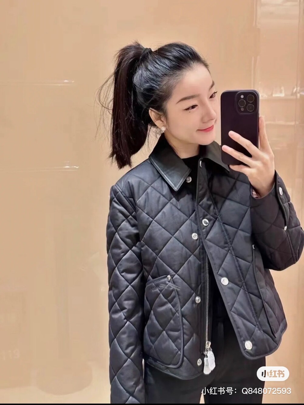다이아몬드 패턴의 코튼 퀼티드 재킷은