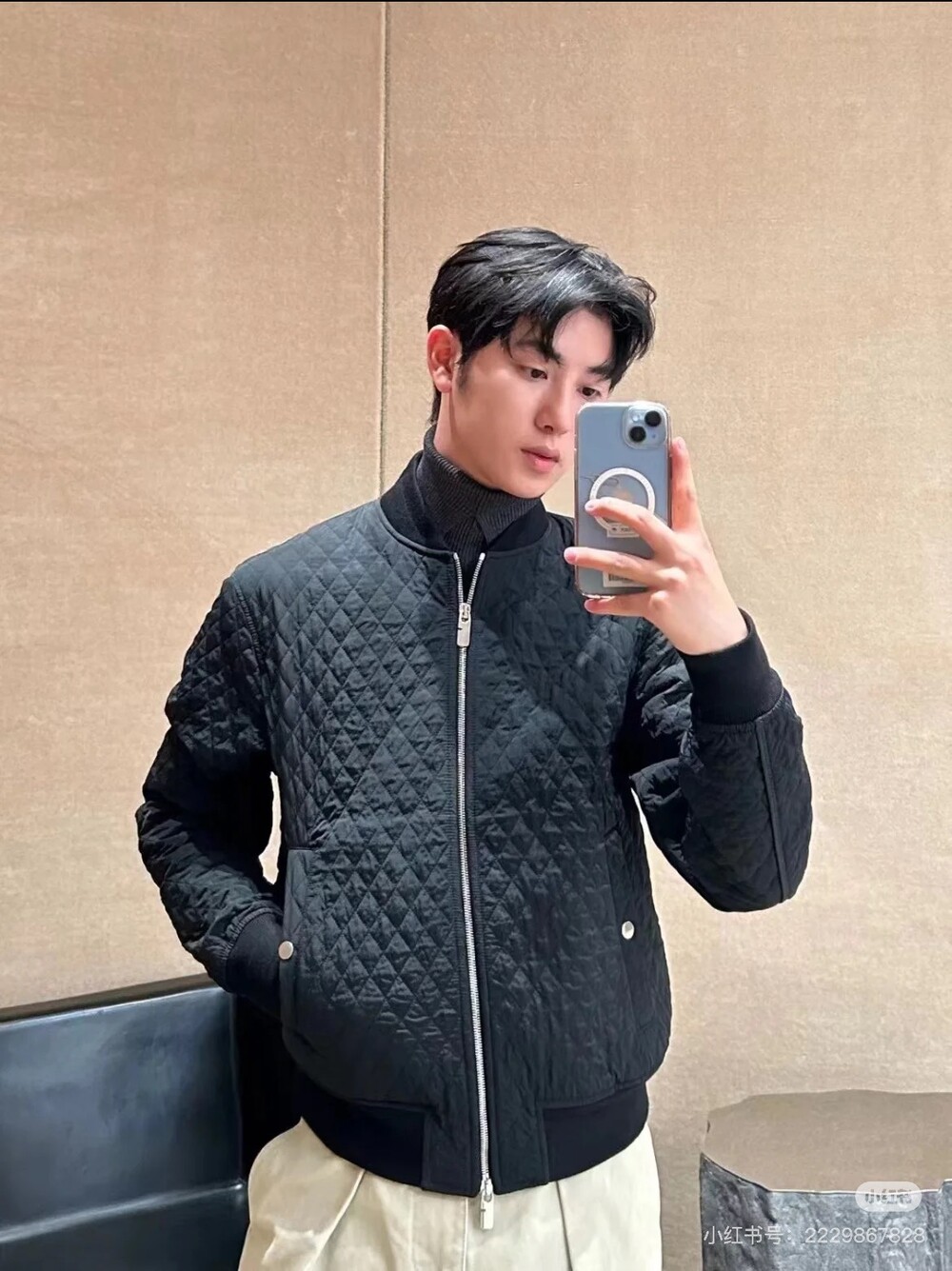 다이아몬드 패턴 퀼팅이 특징이며,