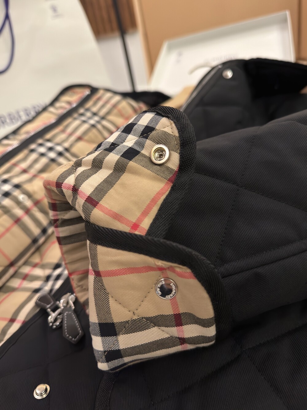 브랜드의 빈티지 체크 패턴이 적용되었습니다