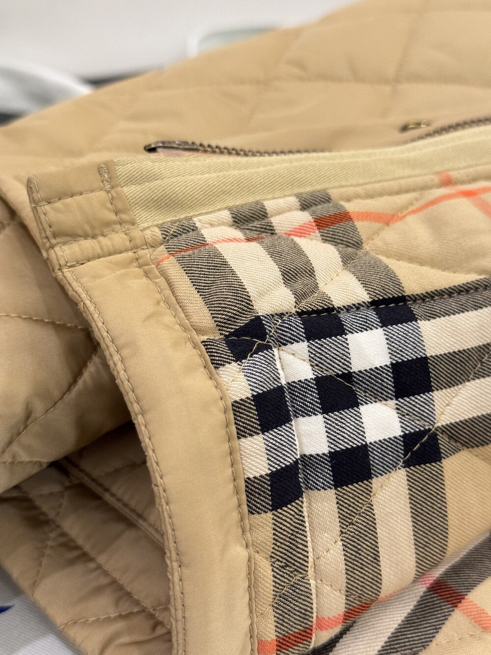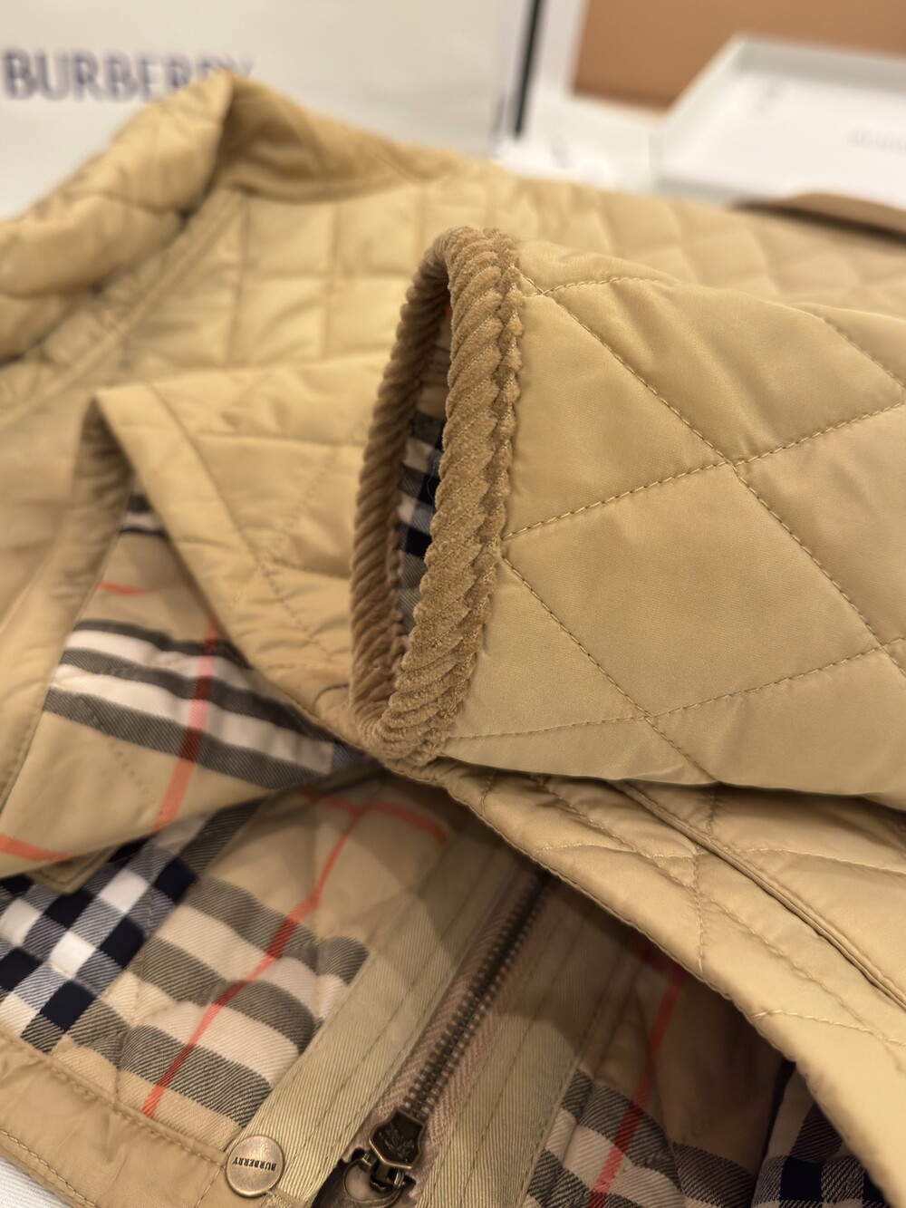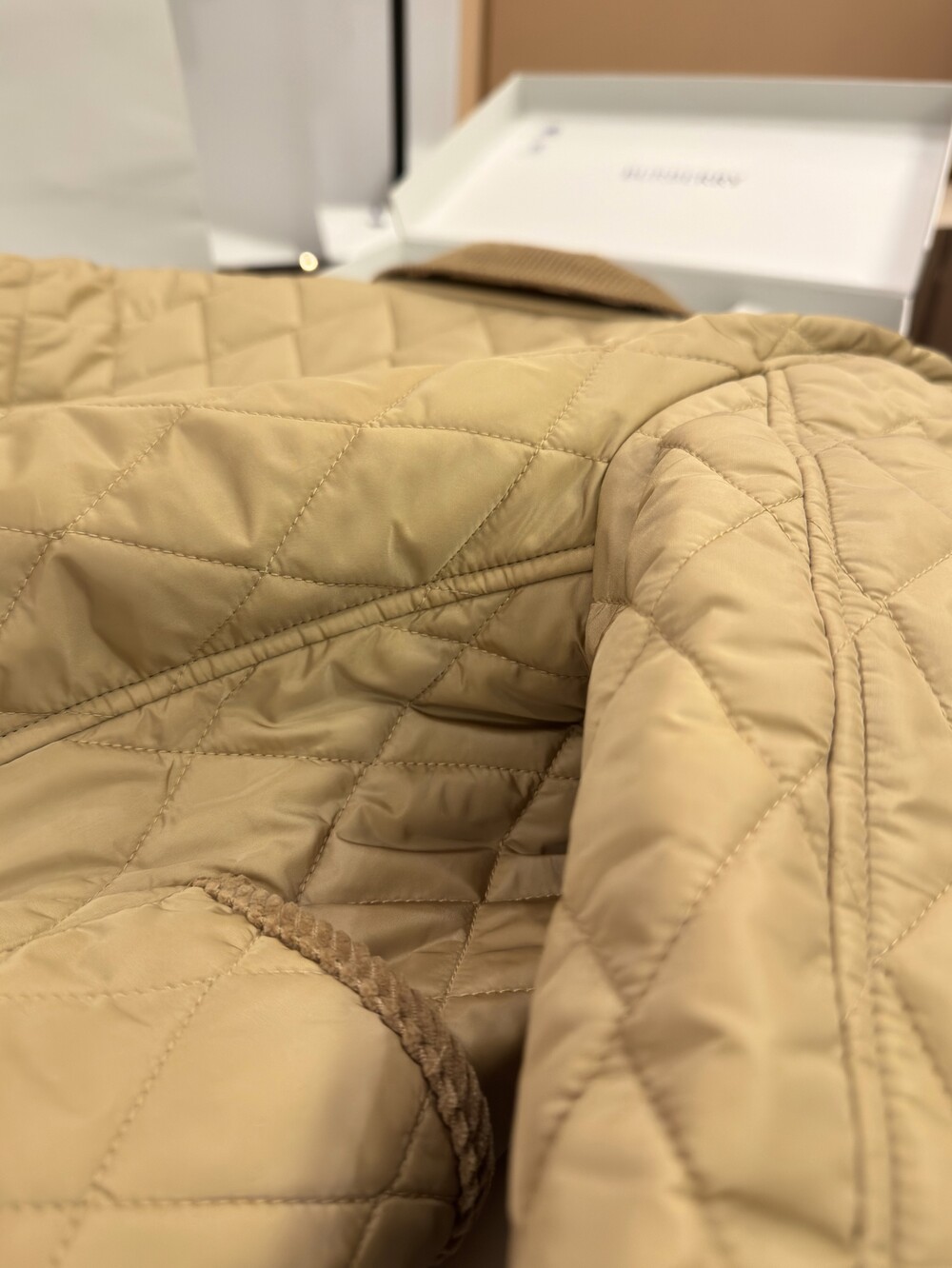 가벼운 나일론 소재의 퀼팅 재킷입니다