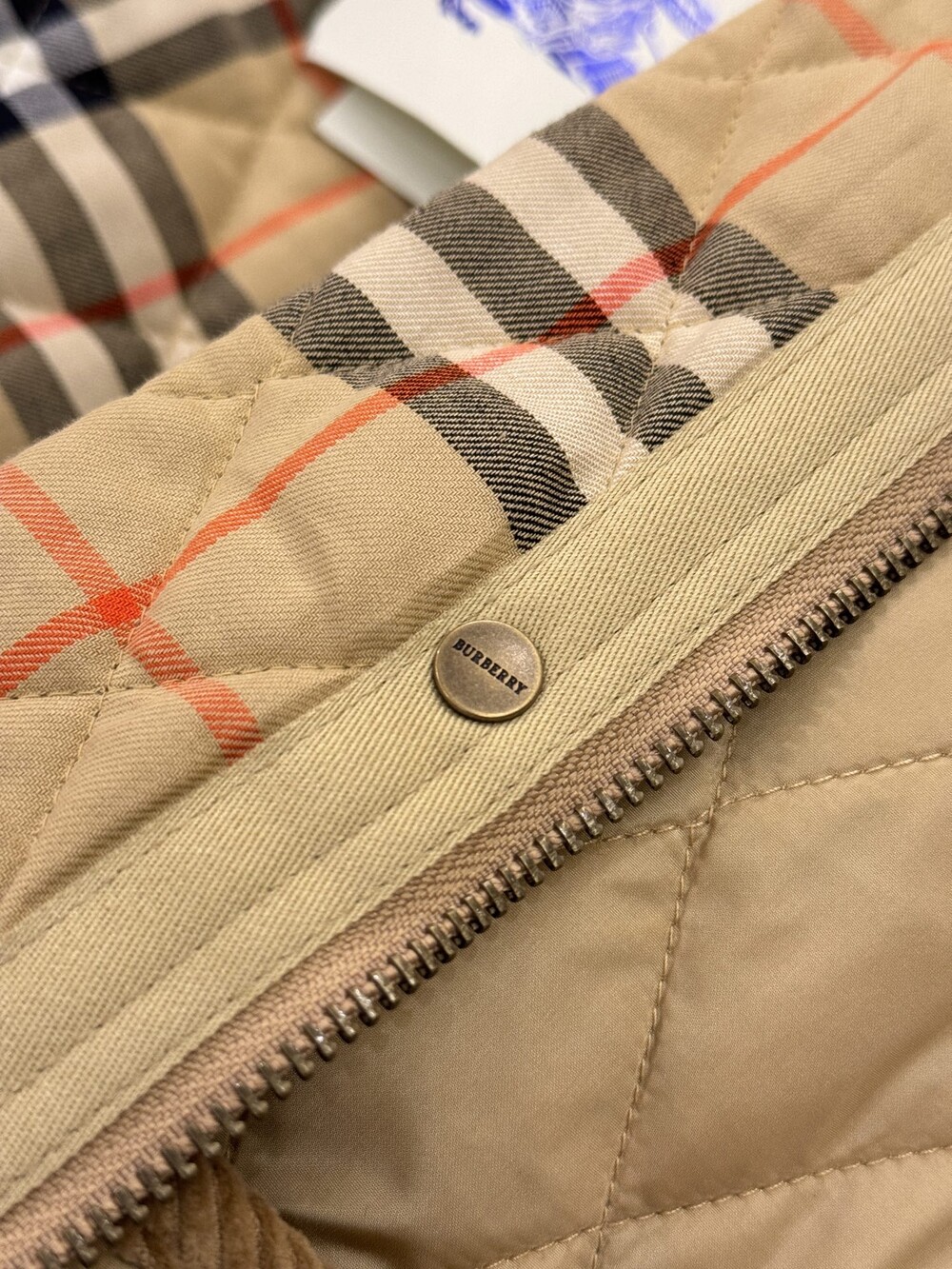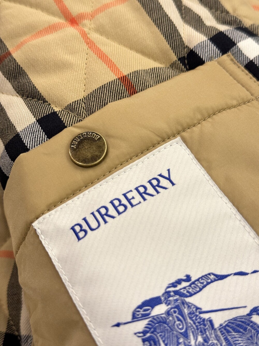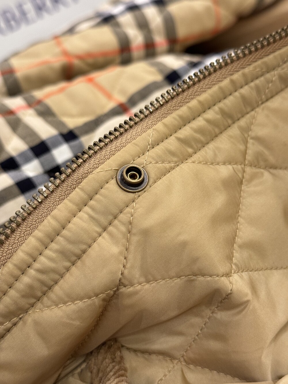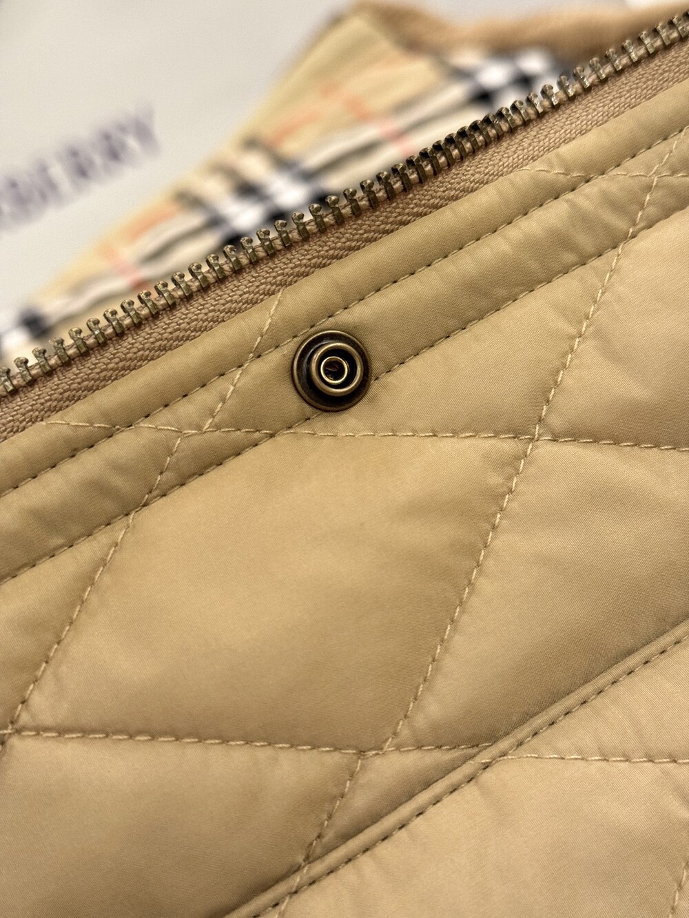 샌드 컬러의 체크 코튼 트윌 안감이